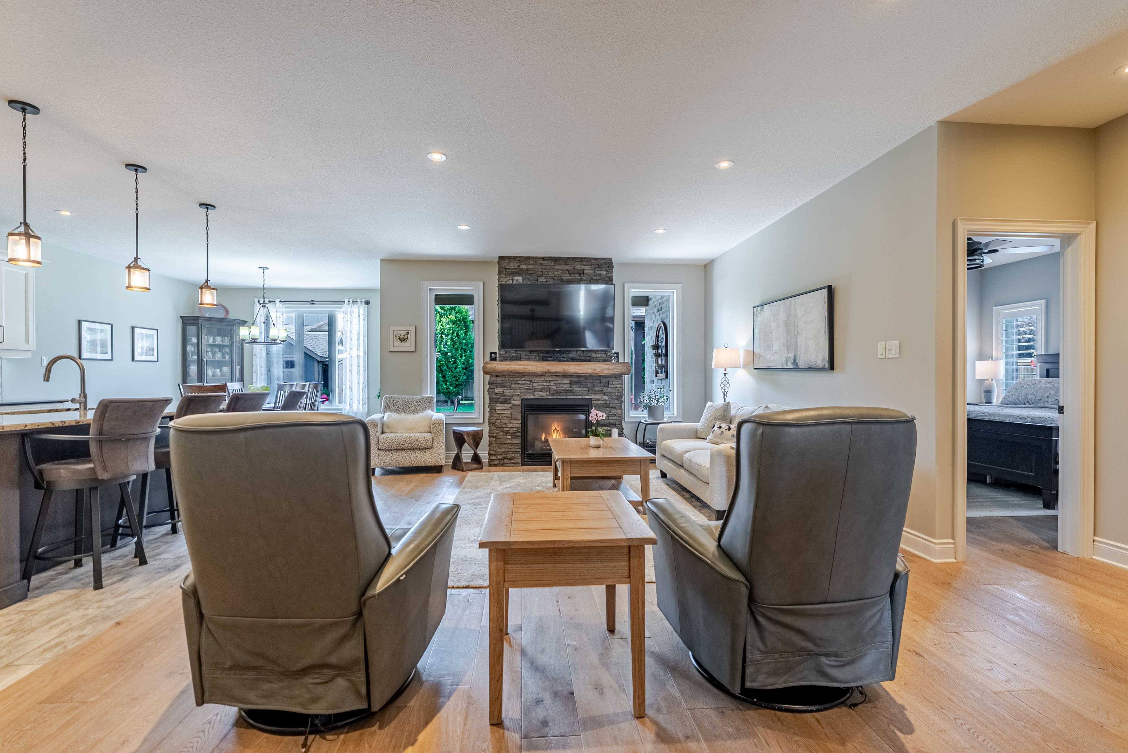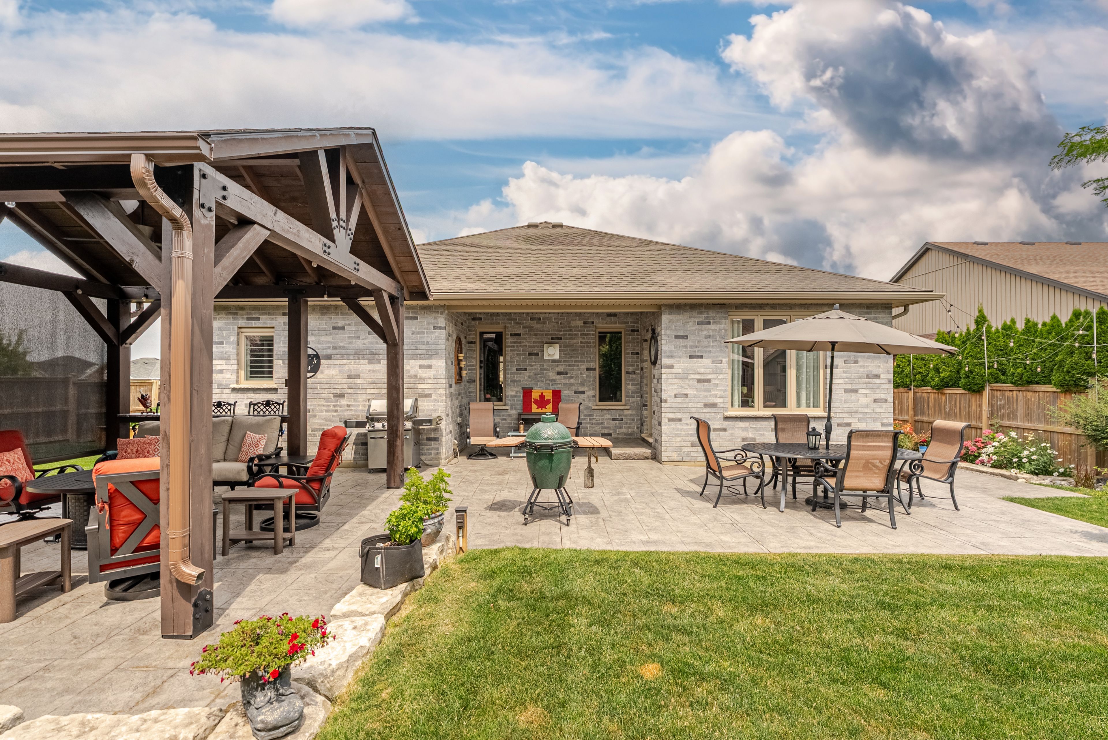 Welcome to 296 dufferin street, belmont - where comfort, space, and backyard paradise come together perfectly. This gorgeous one-floor home offers an impressive 2,752 sq ft of finished living space and is designed for both everyday living and effortless entertaining. From the moment you arrive, the attached 3-car garage - complete with a convenient roll-up door at the rear - sets the tone for functionality and flexibility. Step inside to a large, welcoming foyer that flows seamlessly into the bright living room, highlighted by oversized windows, that flood the space with natural light. California shutters, throughout the home add both style & privacy. The open-concept kitchen is truly the heart of the home, featuring granite countertops, a spacious island, ample cabinetry, and a generous dining area. Patio doors lead directly to your covered porch & outdoor living space, creating the perfect setup for indoor-outdoor entertaining. The main level offers 3 bedrooms & 2 full bathrooms, including a spacious primary suite complete with a walk-in closet and private ensuite. Engineered hardwood flooring runs throughout the main floor, adding warmth and elegance. Convenient access from the garage brings you into a functional mudroom/laundry room. Downstairs, the fully finished lower level expands your living space with a 4th bedroom, full bathroom, recreation room, exercise room, bonus room, & utility room - offering incredible flexibility for guests, hobbies, or growing families. And then there's the backyard -your own private retreat. This paradise setting features stamped concrete, beautifully maintained gardens, a dedicated veggie garden, a 10x12 shed, & a stunning 16x16 cabana with hydro - the perfect place to watch the ballgame, entertain friends, or simply unwind. Located in the welcoming community of belmont & mins to the 401, this home blends space & style. 296 dufferin street isn't just a home - it's where your next chapter begins.
