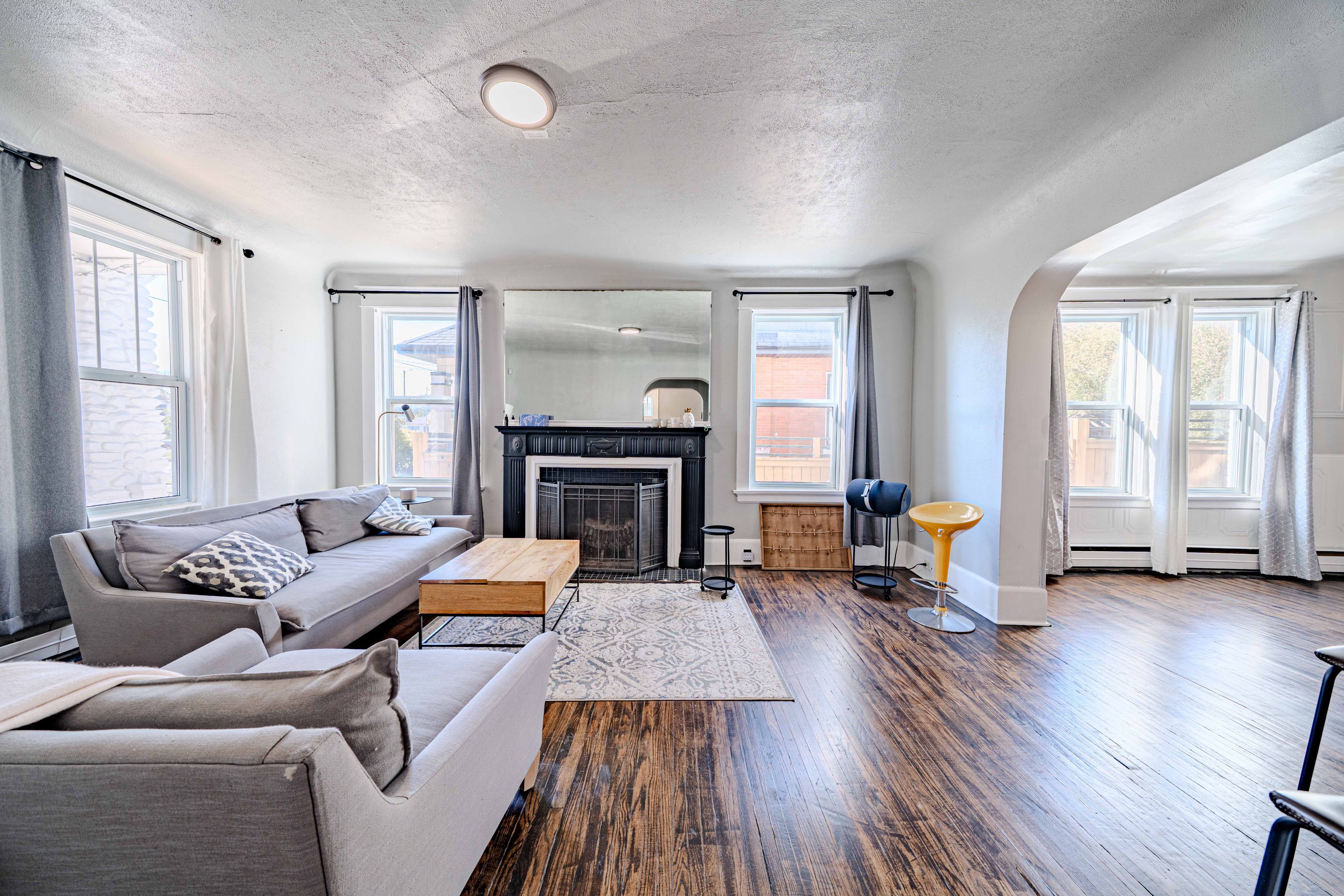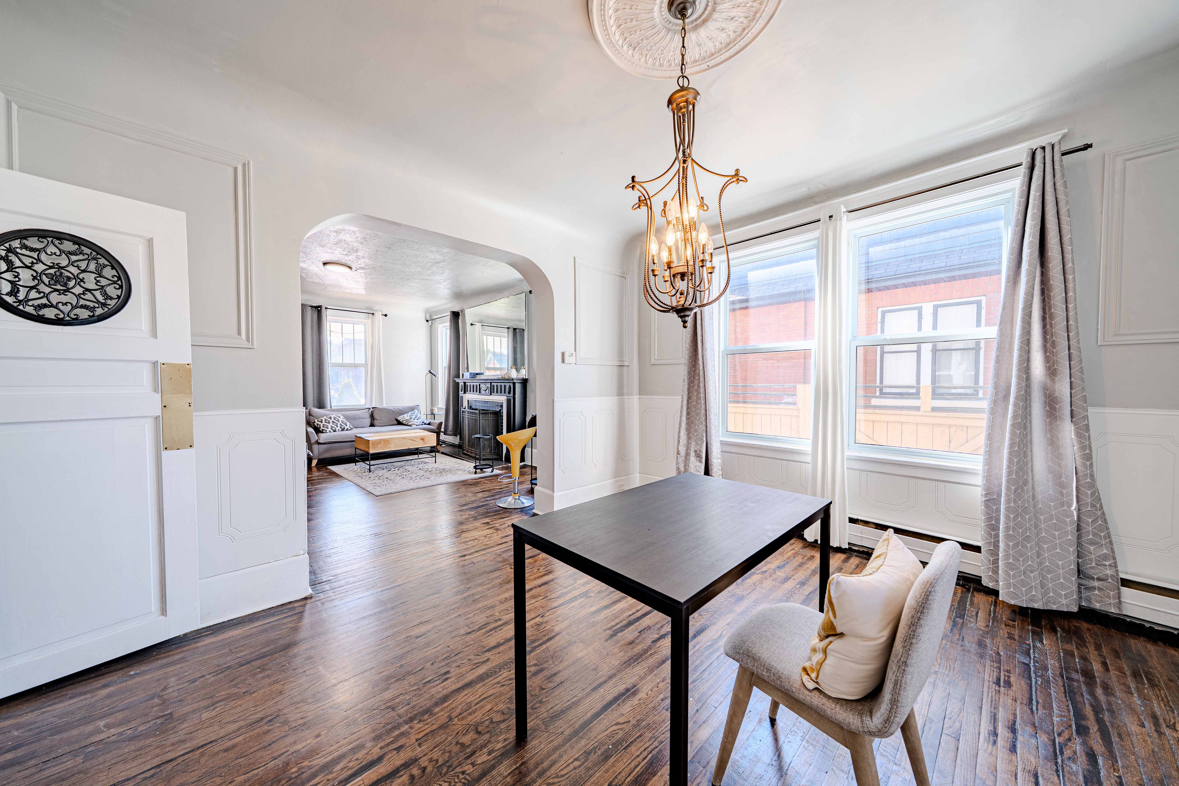 • 9 ft ceilings and hardwood floors enhance the character throughout.