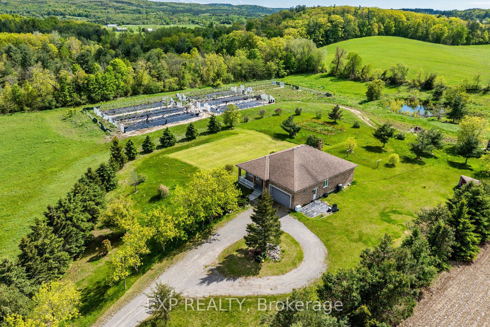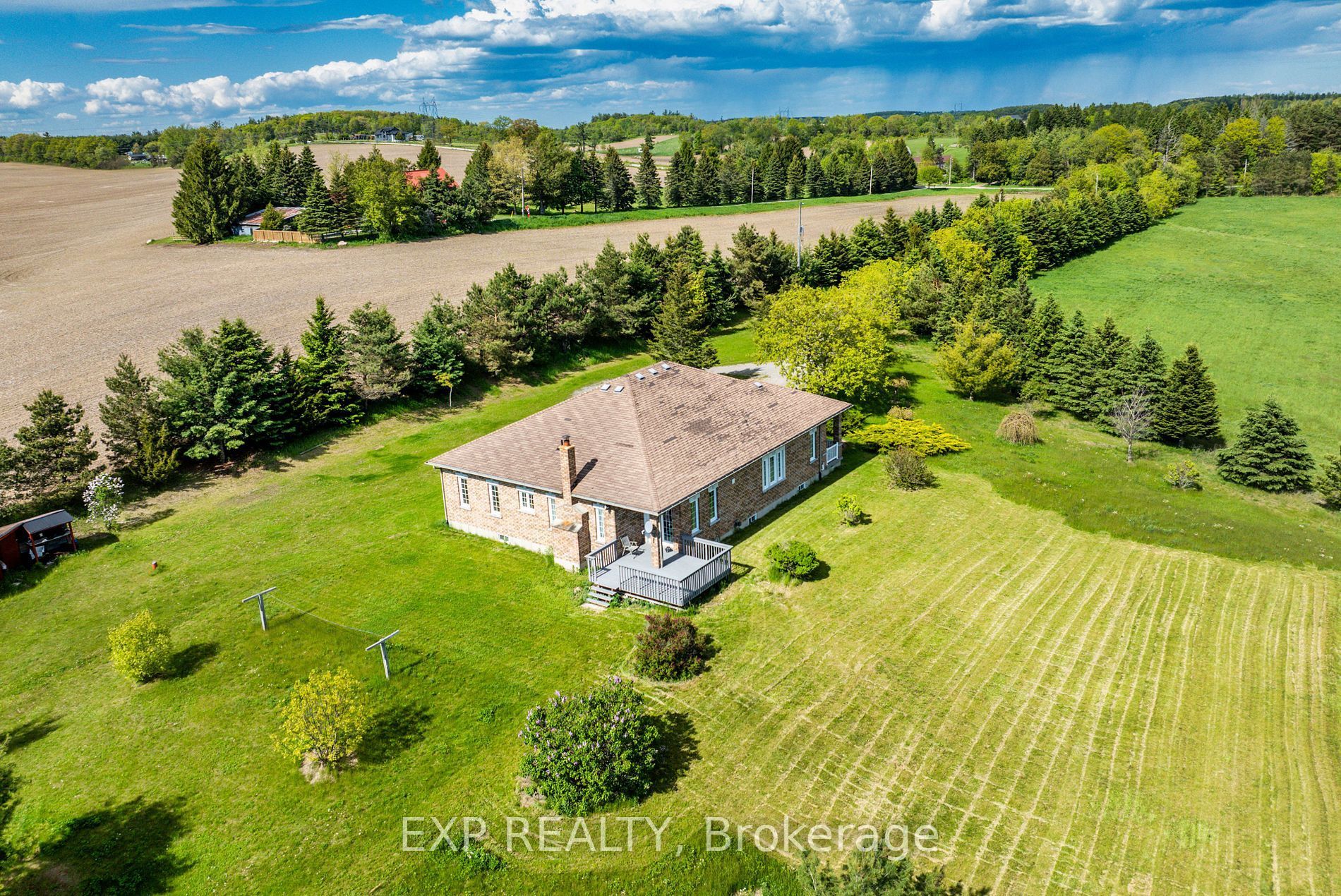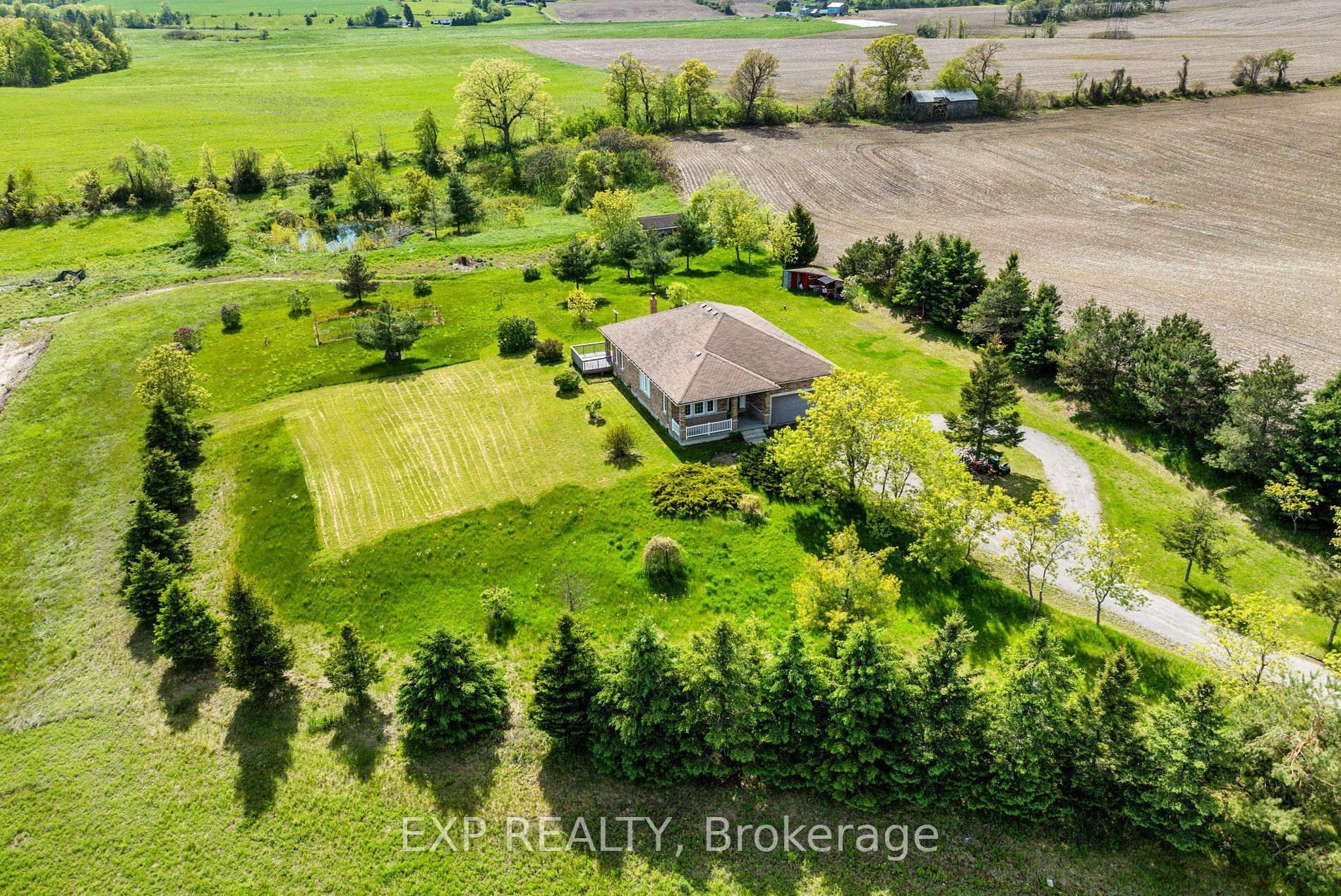 Discover the charm of 296 montgomery road in roseneath, ontario, a stunning all-brick, detached bungalow perched on a hill, offering breathtaking views of clear rolling hills. Nestled on over 14 acres of private land, this newer-built home is set far back from the main road, ensuring tranquility and seclusion. The main floor boasts 9' ceilings and gleaming hardwood floors throughout. Enjoy the spacious double garage with high ceilings and a large single garage door. The property features a serene pond at the rear, perfect for relaxation. The partially finished basement, filled with natural light from numerous windows, awaits your personal touch. Just a short drive to rice lake, this property is an ideal retreat with endless possibilities. Experience country living at its finest! Extras: 9' ceilings & hardwood flooring throughout main floor. 14+ acres land. Double garage with good height and large single door with direct entrance to home. Wood burning stove in family room. Approx. 1,800 sqft. (not including basement).