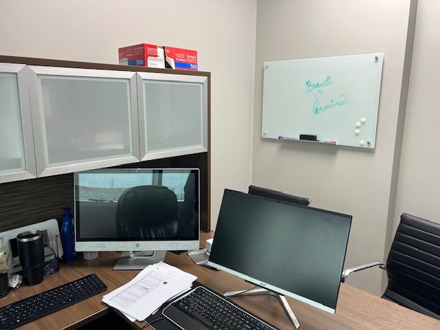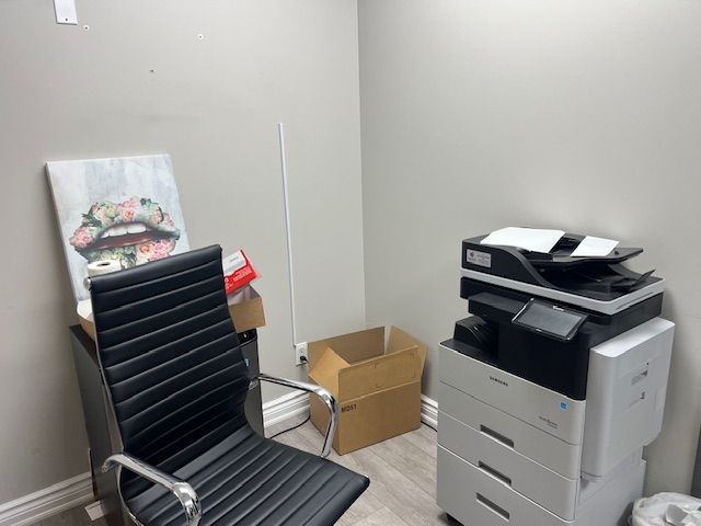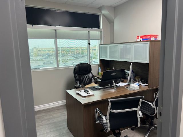 Excellent second-floor space located in very busy high traffic plaza. Fully-equipped with washroom, two offices and one small kitchenette. Many permitted uses: travel agency, law office, real estate, employment agency, clothing boutique, etc. Very busy plaza with ample parking.