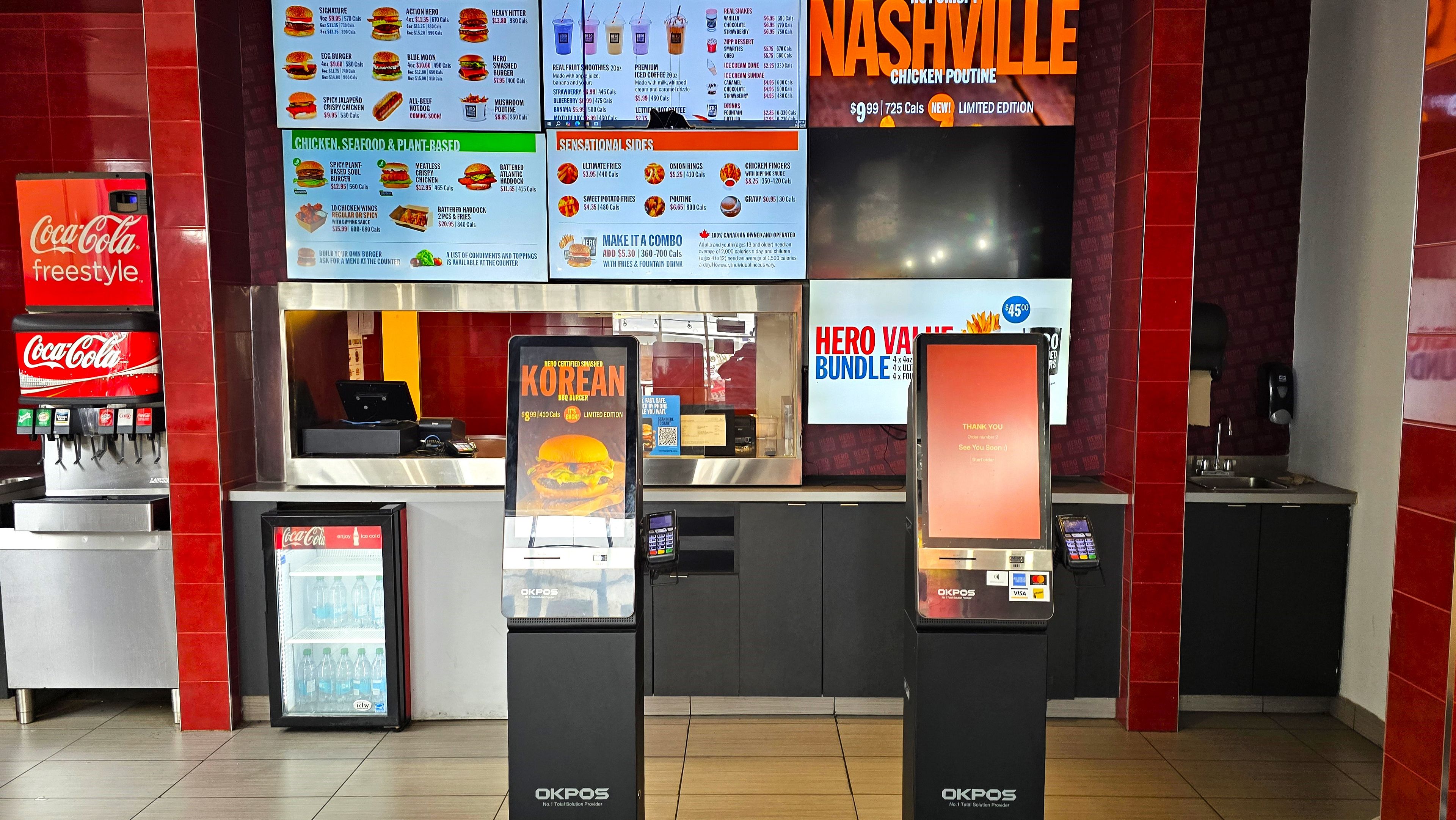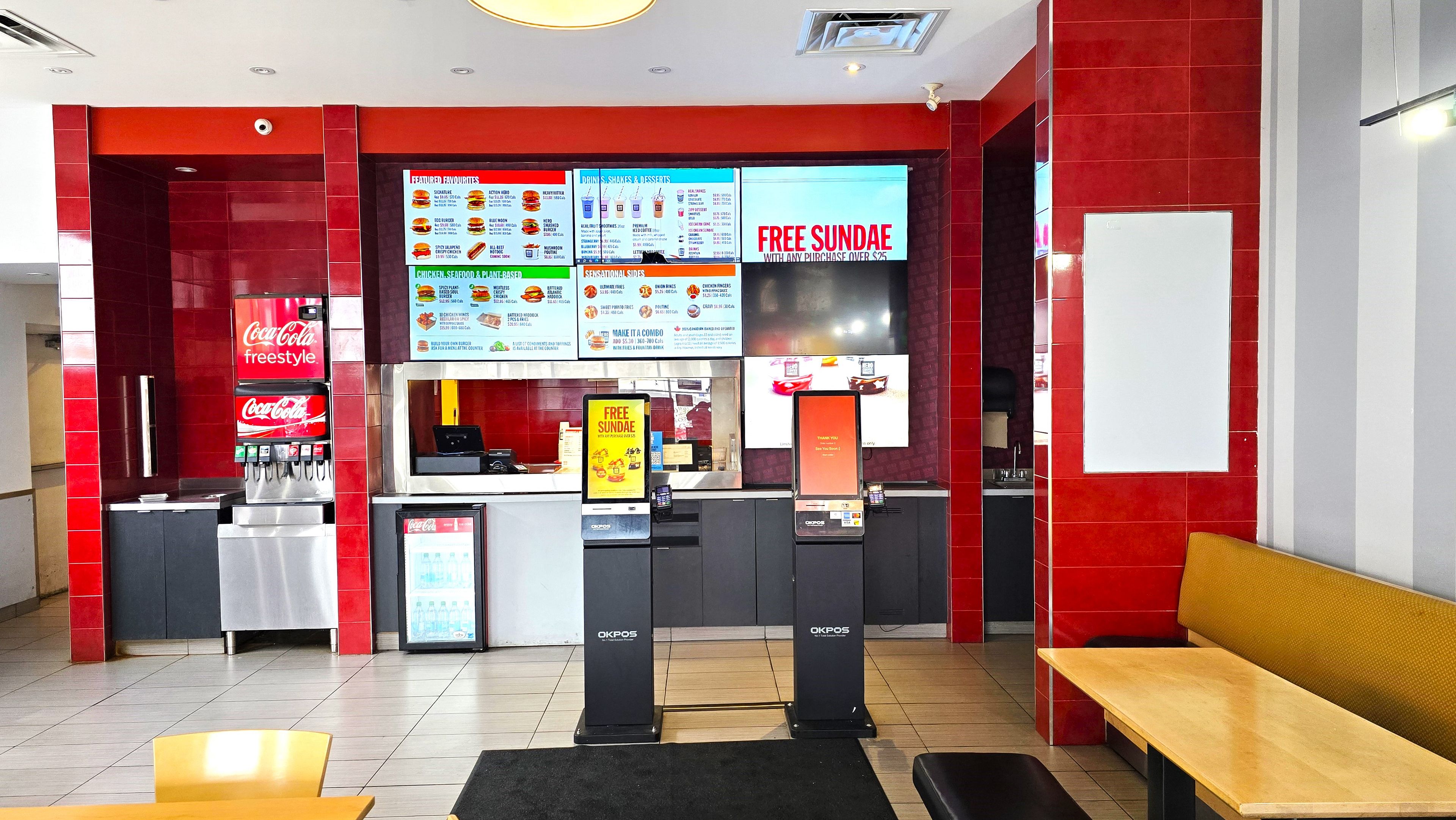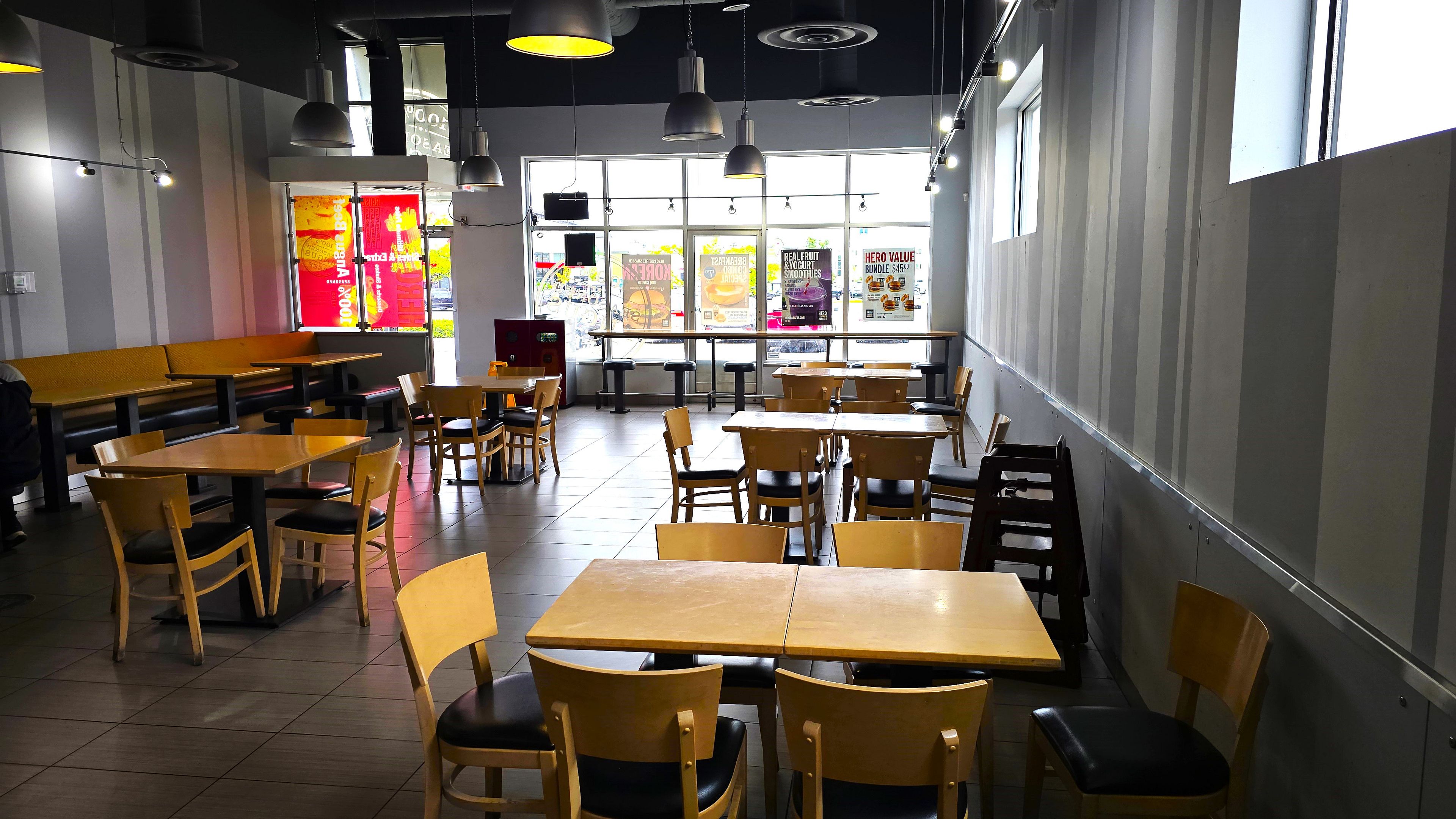 Indian restaurant, burger, pizza, thai, chinese and many other non competing uses allowed.. ... Goldent oppurtunity... Can be rebranded to any kind of non-competing restaurant or any other use in a busy plaza with longos, bst buy, chuck e cheese and many big stores. Lots of traffic in the plaza.... Location location location. Currently, operating as hero burger. Very large kitchen, 11 foot hood , 3+1 washrooms, walk-in freezer and fridge. Landlord will consider brand name indian restaurants also. 3 + 5 years lease remaining turnkey operation, great exposure, high traffic area and visibility fabulous set up of app 2000 sqft ambience galore, large kitchen with 13ft hood. Busy location low rent. Subdivision of the unit also possible, it will be a separate unit with around 1000sqft. Many options available, you can take the hero certified burger franchise too or open your own burger joint. Lease for 2026 is app $10,000(tmi included) + hst