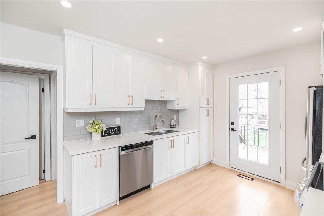 Renovated house at an excellent location, over 1300 sf of finished living area. Open concept main floor. Upgrades include a brand new custom kitchen, stainless steel appliances & fresh neutral paint throughout the house. New laminate flooring, new doors/trims/baseboard, lots of pot lights & modern lights fixtures. Renovated 4 pcs full bathroom. Partially finished full basement, with large rec-room. All new windows with transferable warranty. House is located close to school, public transit, shopping and other amenities. Show with pride, a must see. Room sizes and square feet are approximate. Room size measurements are taken at widest points.