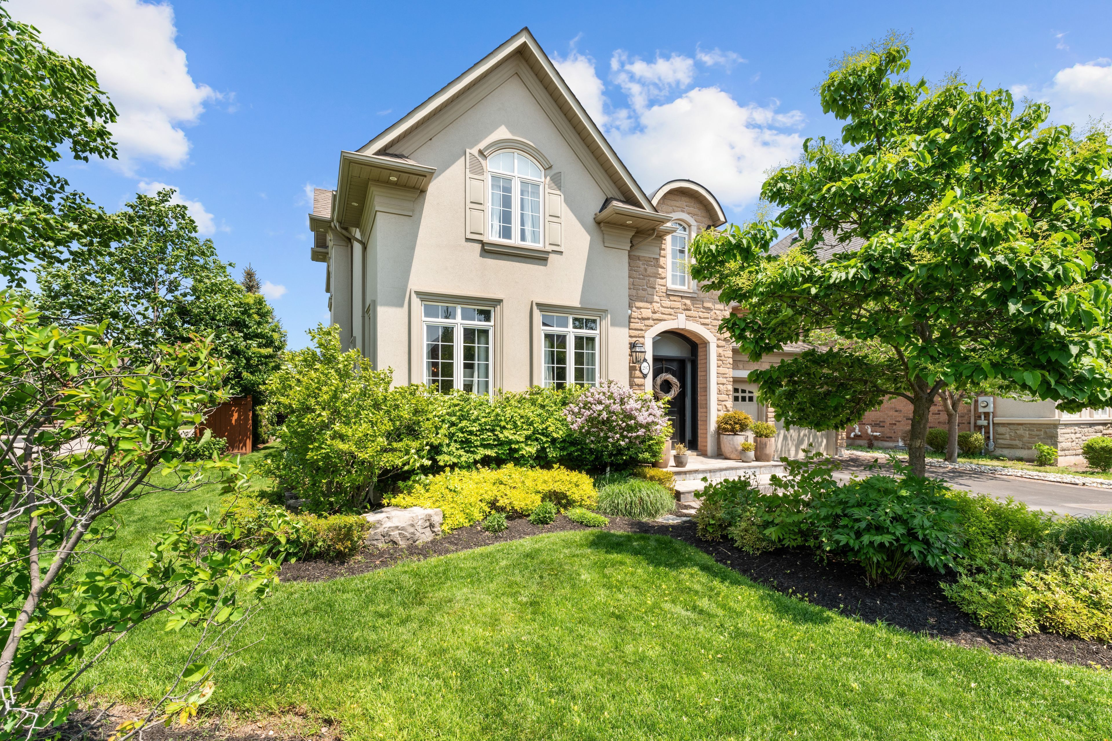 Introducing the rosehaven cantley model, an exceptional four-bedroom, three-bathroom residence that exemplifies luxurious living, set on a premium corner lot in the prestigious lakeshore woods community of southwest oakville. With an elegant stone and brick exterior, enhanced by additional side windows that flood the interior with natural light, this home offers unmatched curb appeal and sophistication. Inside, this meticulously designed home blends elegance and comfort. The chef's kitchen is a true centerpiece, featuring premium commercial-grade appliances, an oversized center island, crown molding, pot lights, and rich hardwood flooring. The adjoining family room and kitchen offer views of the professionally landscaped backyard complete with custom iron gates, clay street pavers, an in-ground sprinkler system, and integrated outdoor speakers perfect for entertaining or relaxing in your private oasis. Thoughtful upgrades are found throughout, including crown molding, custom wainscoting, a fully integrated security system with cameras, and custom california closets built-ins. Designer window coverings from hunter douglas and housewarmings add refined style and functionality. The main floor mudroom is both practical and elegant, with custom cabinetry, drying racks, and convenient garage access. Nestled in one of oakville's most coveted lakeside neighborhoods, this family-friendly enclave is just steps from the lake, scenic parks, wooded trails, a dog park, tennis and pickleball courts, splash pads, and sports fields. Enjoy endless outdoor adventures, with miles of walking and biking trails connecting to nautical and shell parks, local beaches, and the vibrant waterfront charm of bronte village, with its yacht club, boutique shops, cafes, and fine dining. A rare opportunity to own an exquisite home that seamlessly blends luxury, lifestyle, and location in one of oakville's most desirable communities.