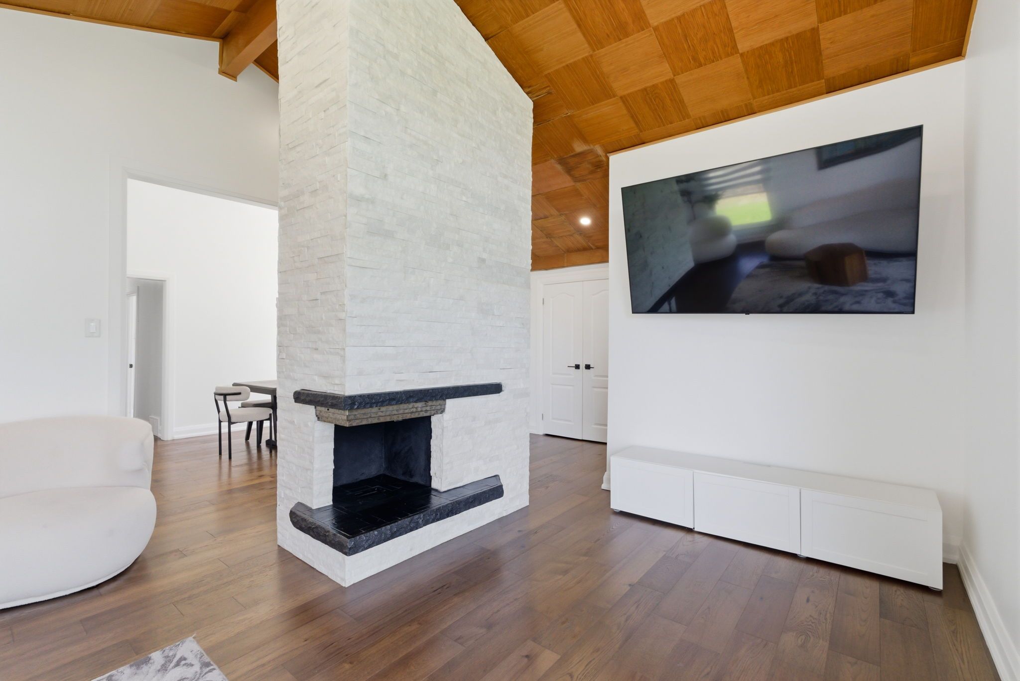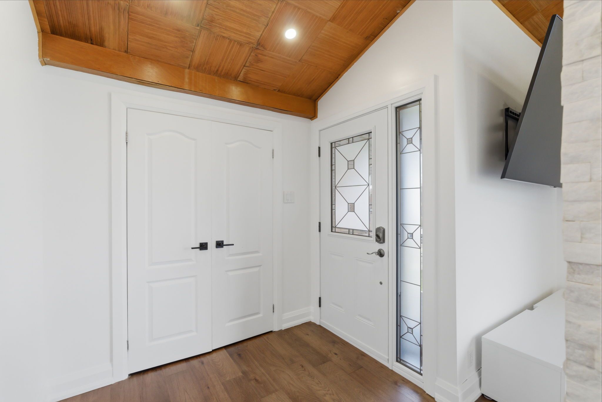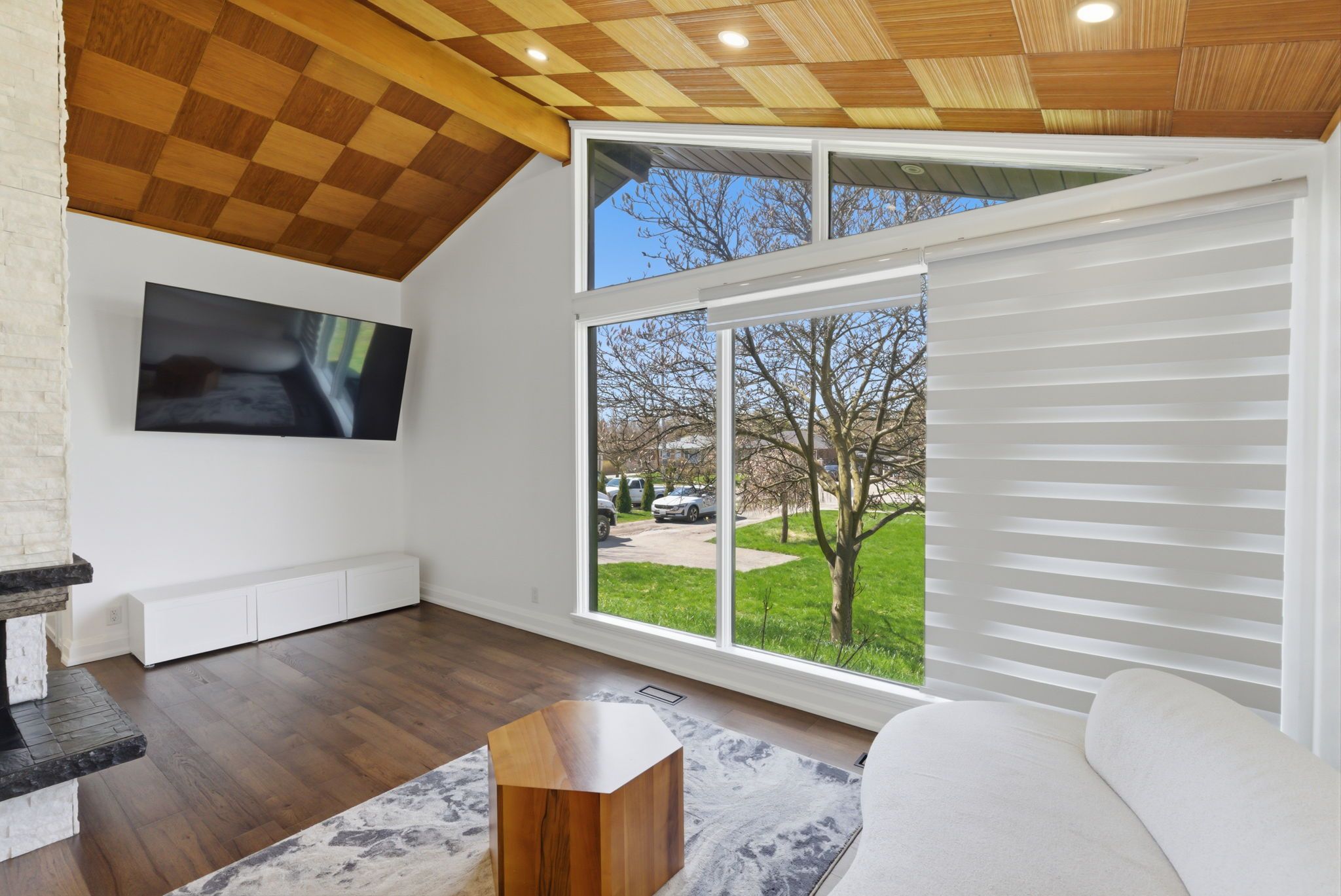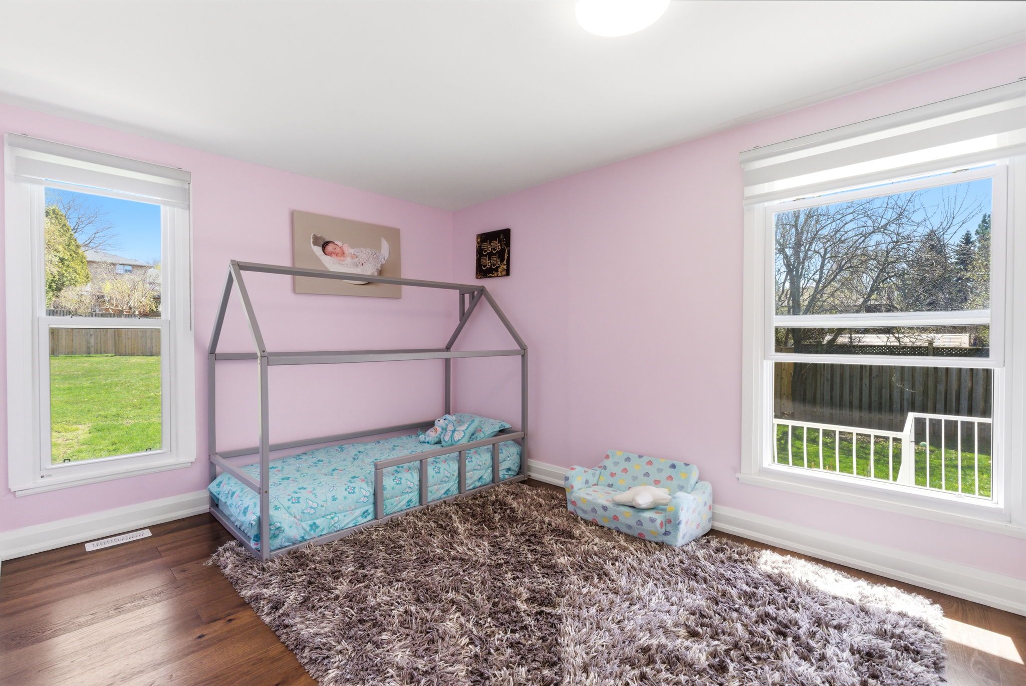 Spacious, fully renovated contemporary bungalow featuring soaring vaulted ceilings, set on an impressive 100 x 230 ft. Lot. Beautifully renovated kitchen features all the bells and whistles with 2 walk-outs to the yard. The primary bedroom offers a beautifully updated 4-piece ensuite and wall-to-wall built-in cabinetry. Two additional bedrooms and a stylish 3-piece bathroom complete the main level. Double car detached garage. Extensive updates include shingles (2025) and doors, fence, windows, the kitchen, flooring, all bathrooms, and air conditioning (2023) and window coverings are included. The renovated basement adds valuable living space, featuring a bedroom with lookout windows, a recreation room with a walk-up to the yard, a 2-piece bathroom, and ample storage. Ideal setup for a potential in-law suite.