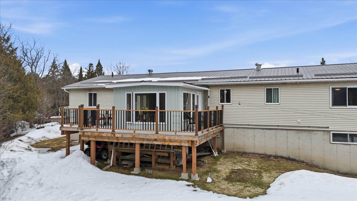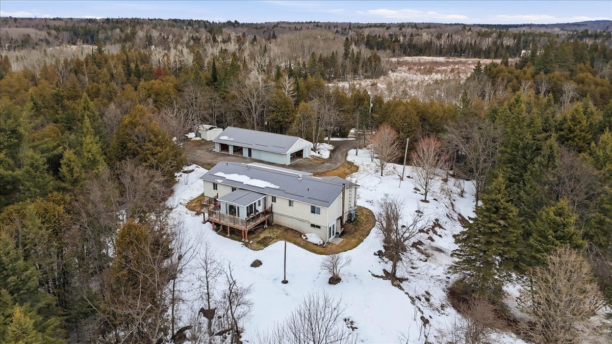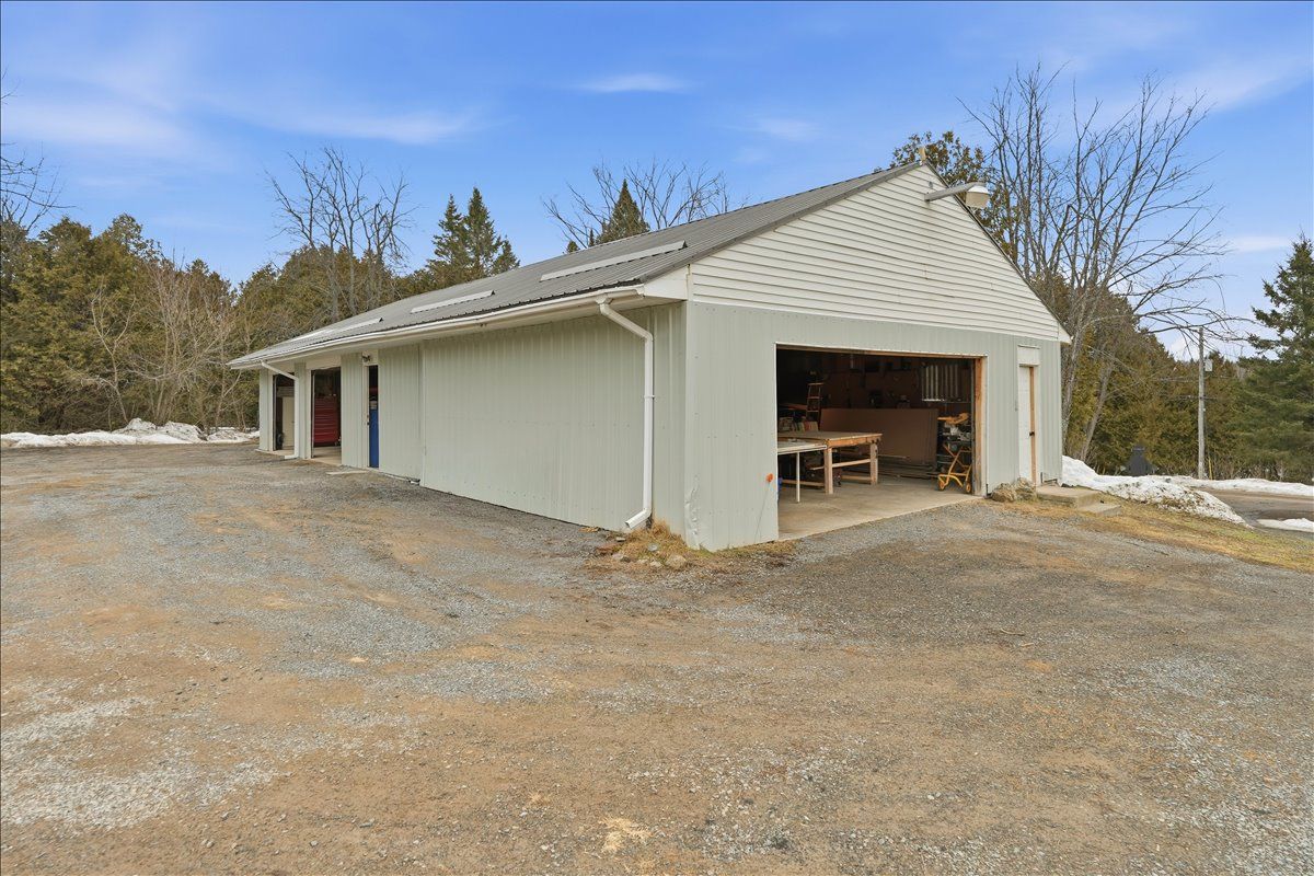 Amazing investment opportunity! This side-by-side duplex sits on a beautiful 7. 9-acre country property and offers incredible versatility for homeowners, investors, or multi-generational living. Live in one unit and rent the other, separate hydro meters with 200-amp service for each unit, separate heat pumps, separate laundry and separate entrances all under one ownership and zoned semi-detached. Bonus high speed bell fibe internet! Unit #1 features a bright main level with 3 bedrooms, a full bathroom, and an open-concept living, dining and kitchen area with sliding doors leading to a four-season sunroom. From here, step out to the deck and enjoy peaceful views of the surrounding property, with a convenient side door providing access to the yard. The walk-out lower level offers additional living space including a large rec room with wood-burning stove, a spacious den, a fourth bedroom, and a 3-piece bathroom. This unit has main floor laundry and central air conditioning. Unit #2 includes a main-level kitchen, living area, and bedroom, while the lower level offers a second bedroom, a large rec room and 2 pc. Washroom providing a comfortable layout for tenants or extended family. This unit has air conditioning via the heat pump and lower level laundry. The property is well-equipped with a drilled well approximately 80 ft deep (never run out of water) and features exceptional outbuildings, including a 30' x 40' detached workshop and a 25' x 30' garage, both with 100-amp service-perfect for hobbies, storage, or business use. The workshop, garage, and house have steel roofs. Enjoy spectacular views from the sunroom and decks, along with mature fruit trees including plum, apple, and pear. A large circular driveway with parking for up to 20 vehicles adds further convenience. Ideally located just 4 minutes to town, this property offers the perfect balance of peaceful country living with close-to-town convenience. A rare opportunity with endless potential!