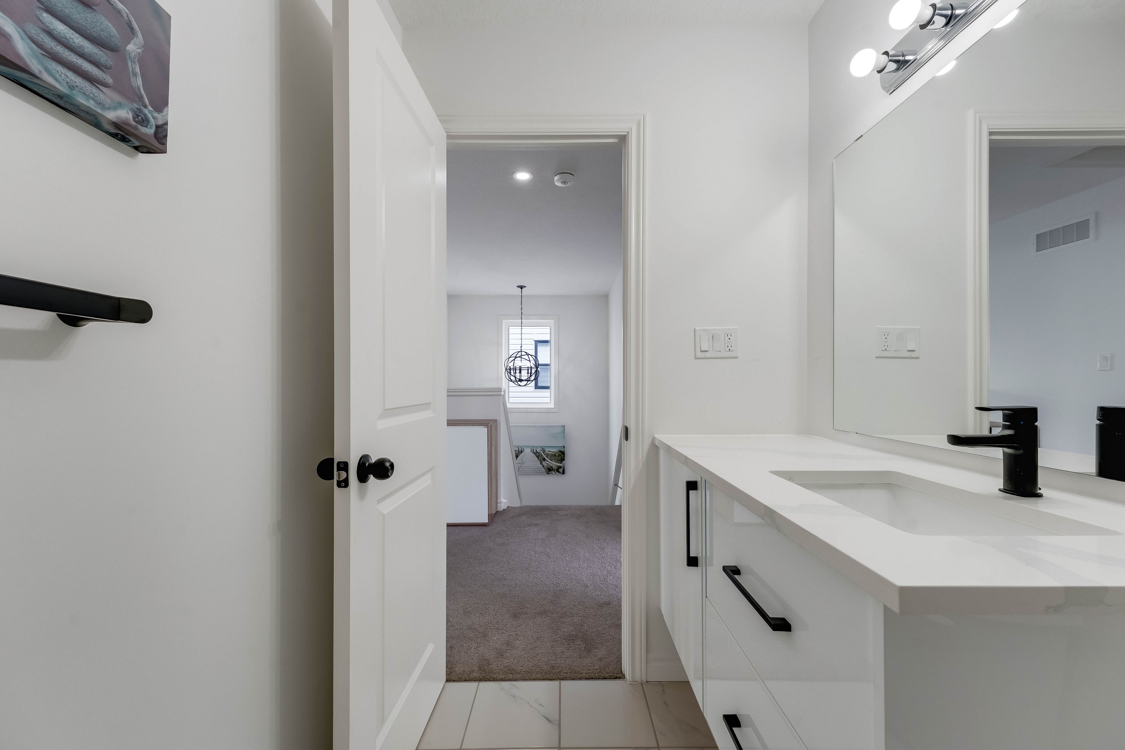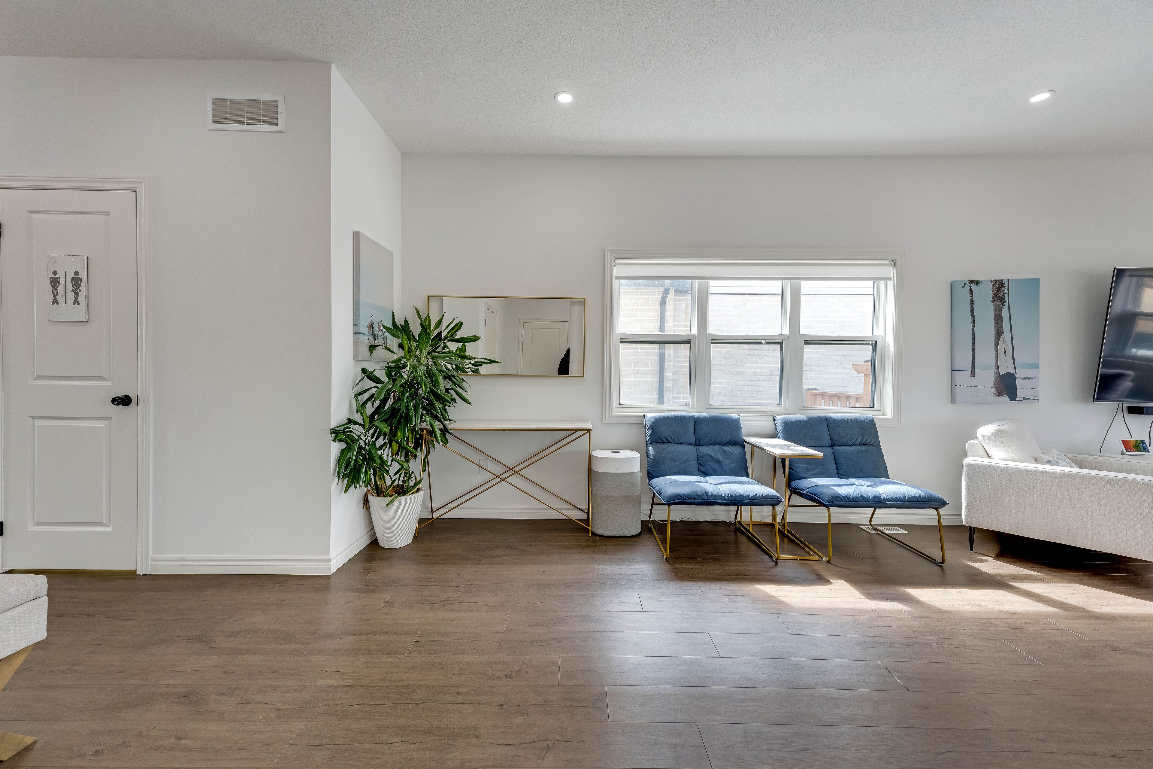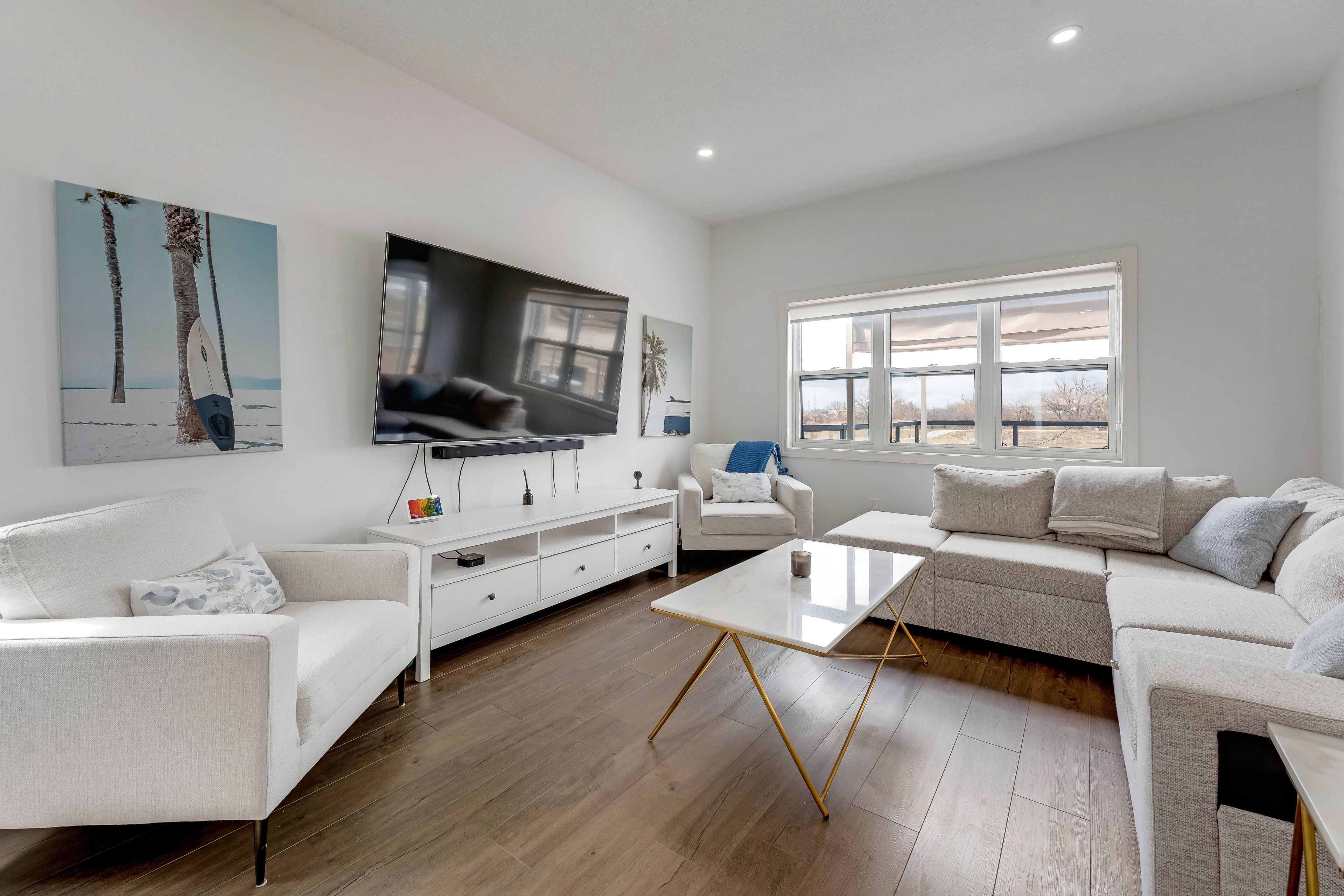 • Open-concept main floor with high ceilings and hardwood flooring.