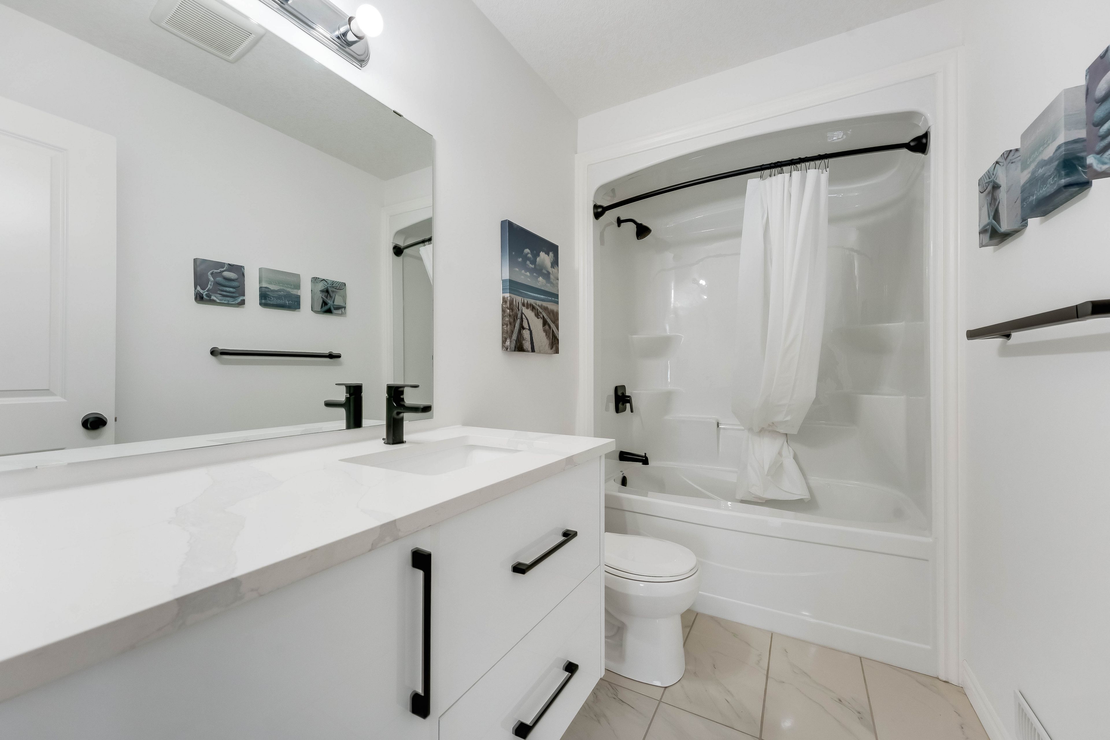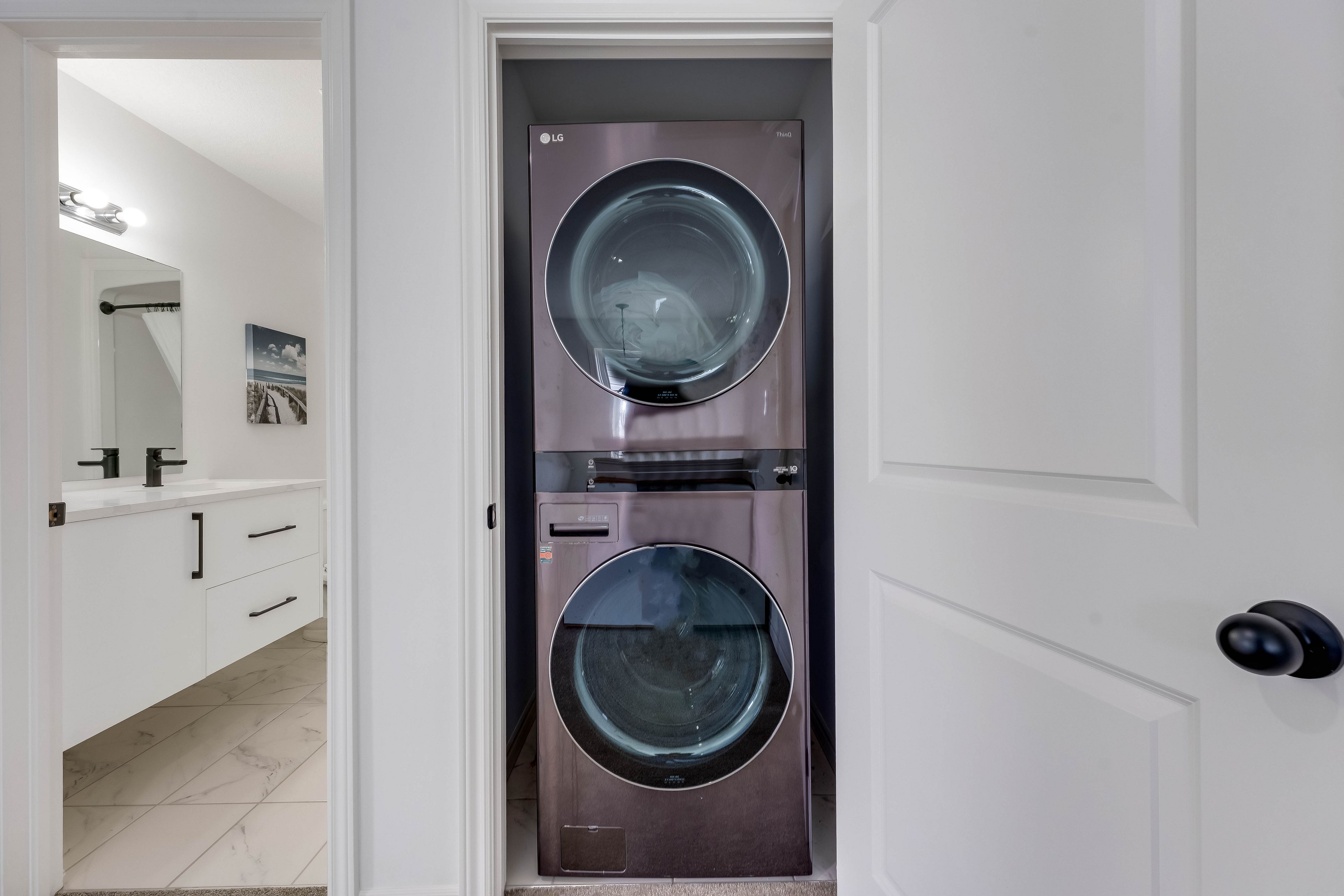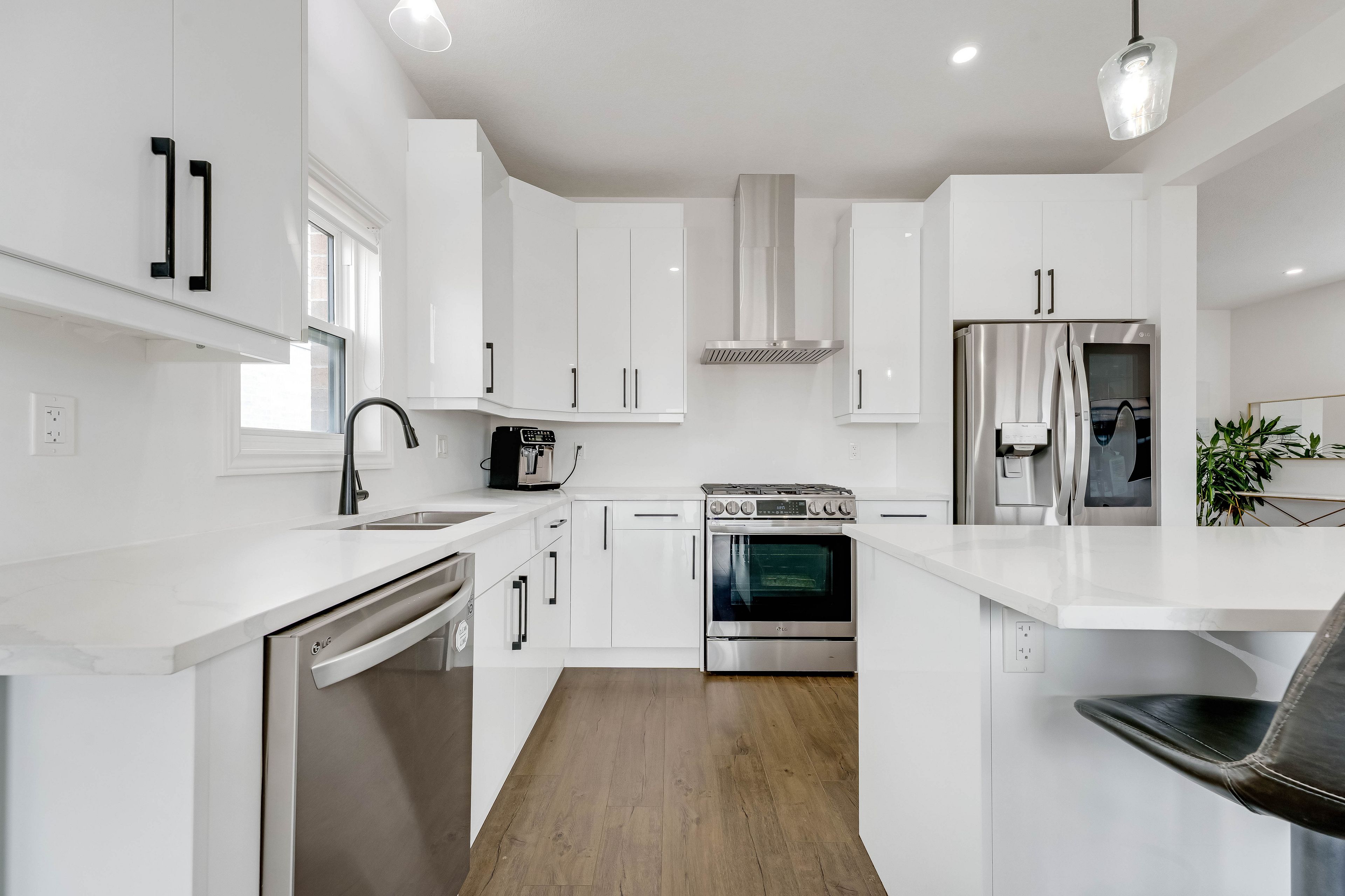 • Stylish kitchen with stainless steel appliances and ample cabinet space.