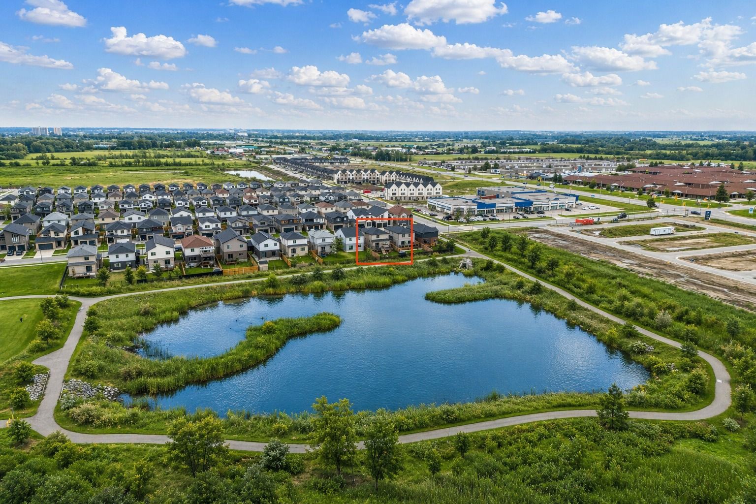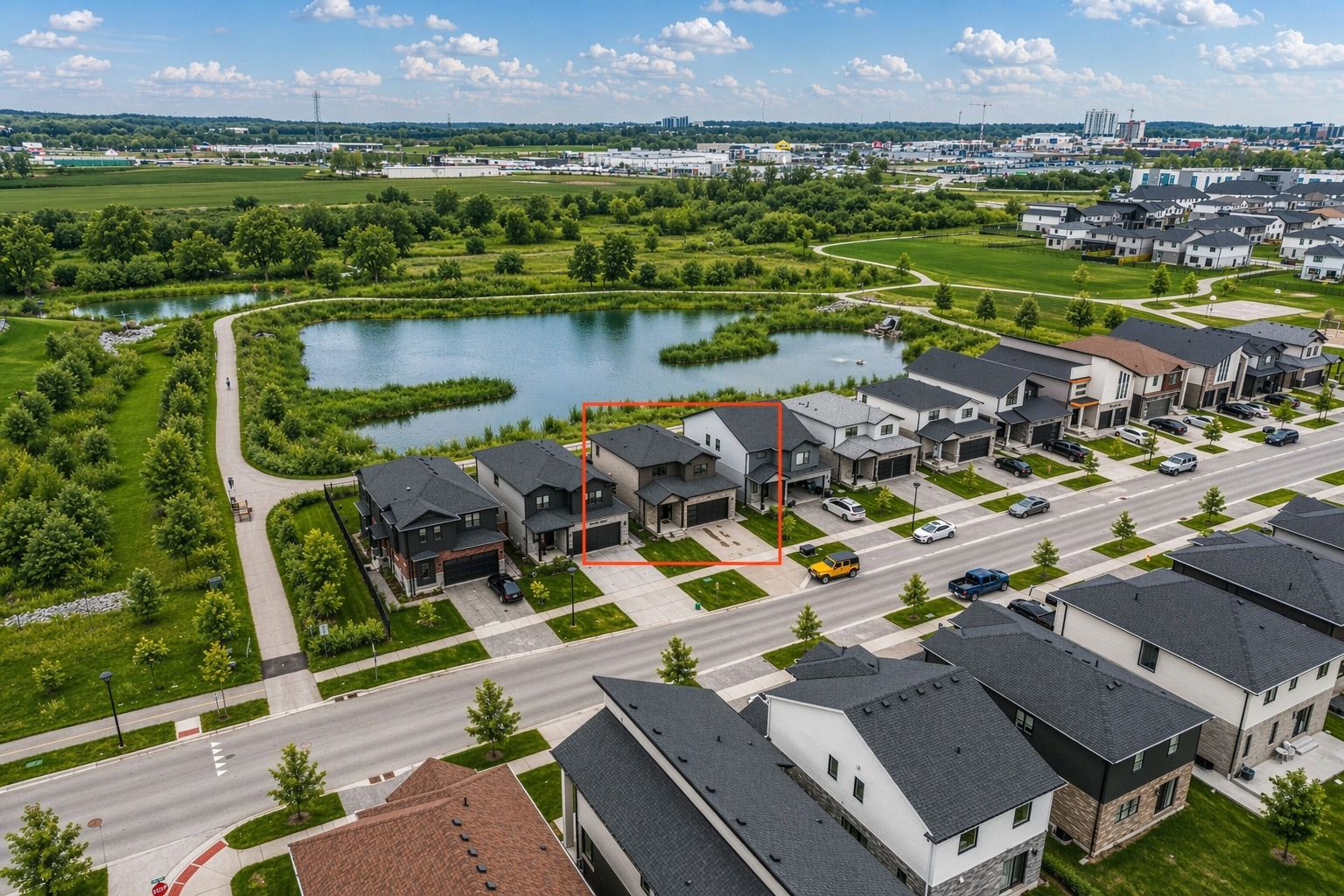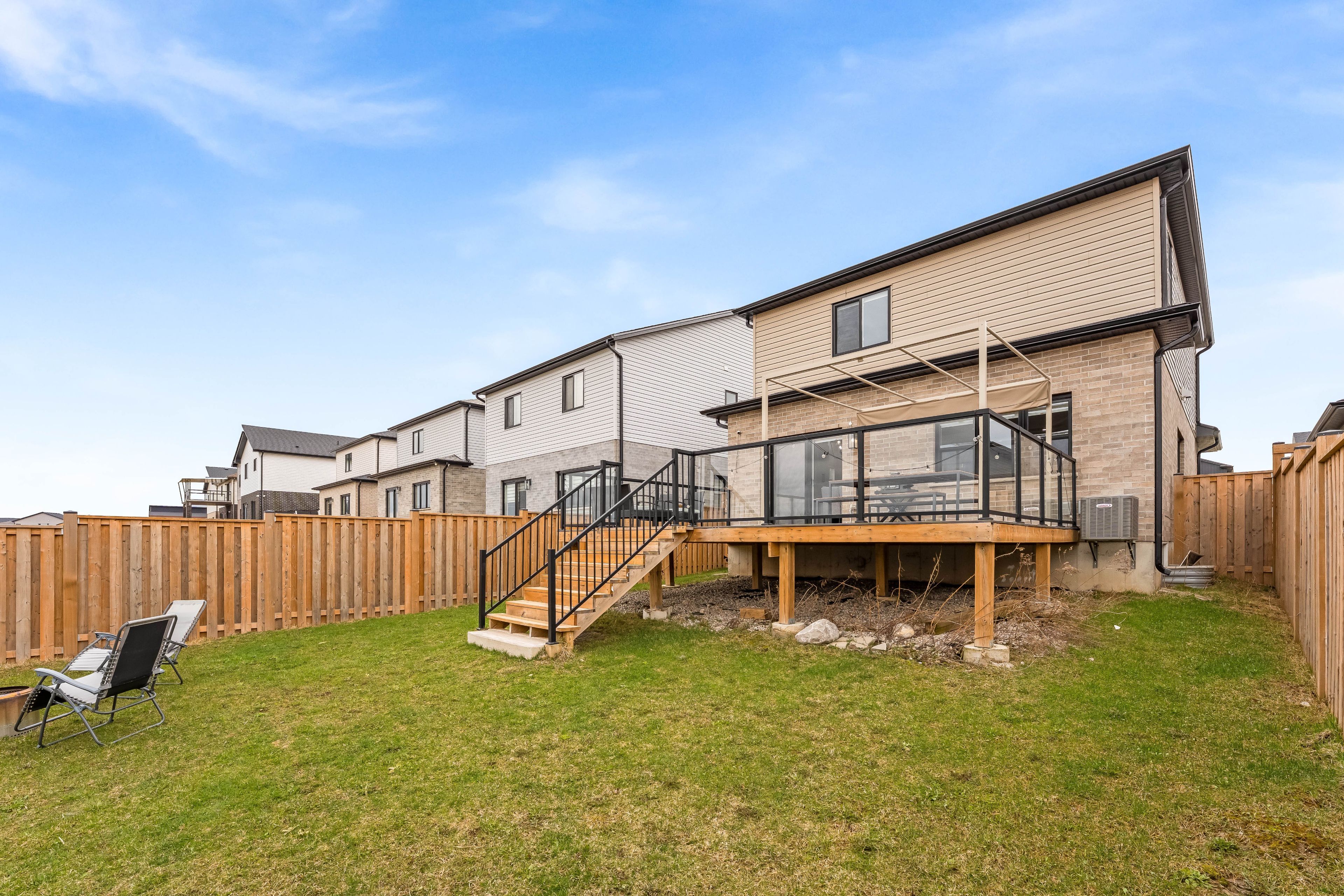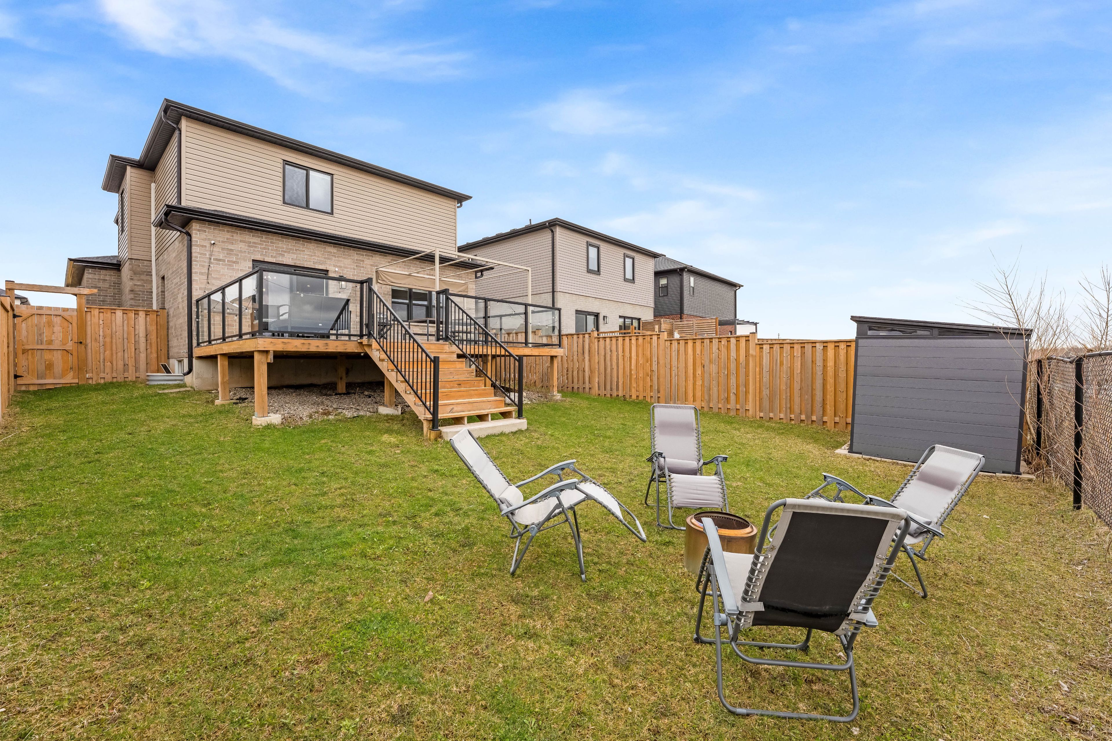 Your wait is over! Welcome to this stunning home offering 1887 sq ft of beautifully upgraded living space, featuring 3 bedrooms and 2. 5 bathrooms, perfectly designed for modern living. Step into a bright and open-concept main floor featuring 9 ft ceilings, hardwood flooring, and elegant modern light fixtures and faucets throughout. The heart of the home is the stylish white kitchen, complete with built-in stainless steel appliances, a gas stove, and oversized 42" cabinets, offering both function and sophistication. The layout flows seamlessly into the living and dining areas-perfect for entertaining or everyday living. Upstairs, you'll find the convenience of laundry on the second floor, along with three spacious bedrooms. The primary bedroom is generously sized and offers serene views as it backs directly onto the pond. The bathrooms are tastefully finished with modern vanities, and the ensuite includes a heated towel rack for an added touch of luxury. The unfinished basement features oversized windows, allowing for an abundance of natural light and providing the perfect blank canvas for future customization, whether you envision additional living space, a home gym, or an in-law suite. Step outside to your composite deck, where you can unwind while enjoying breathtaking sunset views over the pond. This premium lot backs onto green space and water, offering privacy and a peaceful setting that's hard to find. Additional highlights include a tankless water heater, smart home features (lighting, thermostat, and doorbell), am interlocking stone driveway, 2-car garage with ranch-style windows, plus a fence and shed. Located just minutes from the 401, close to amenities (adonis london, costco, white oaks mall) parks & trails, and steps away from a future school, this home offers the perfect blend of comfort, style, and convenience.