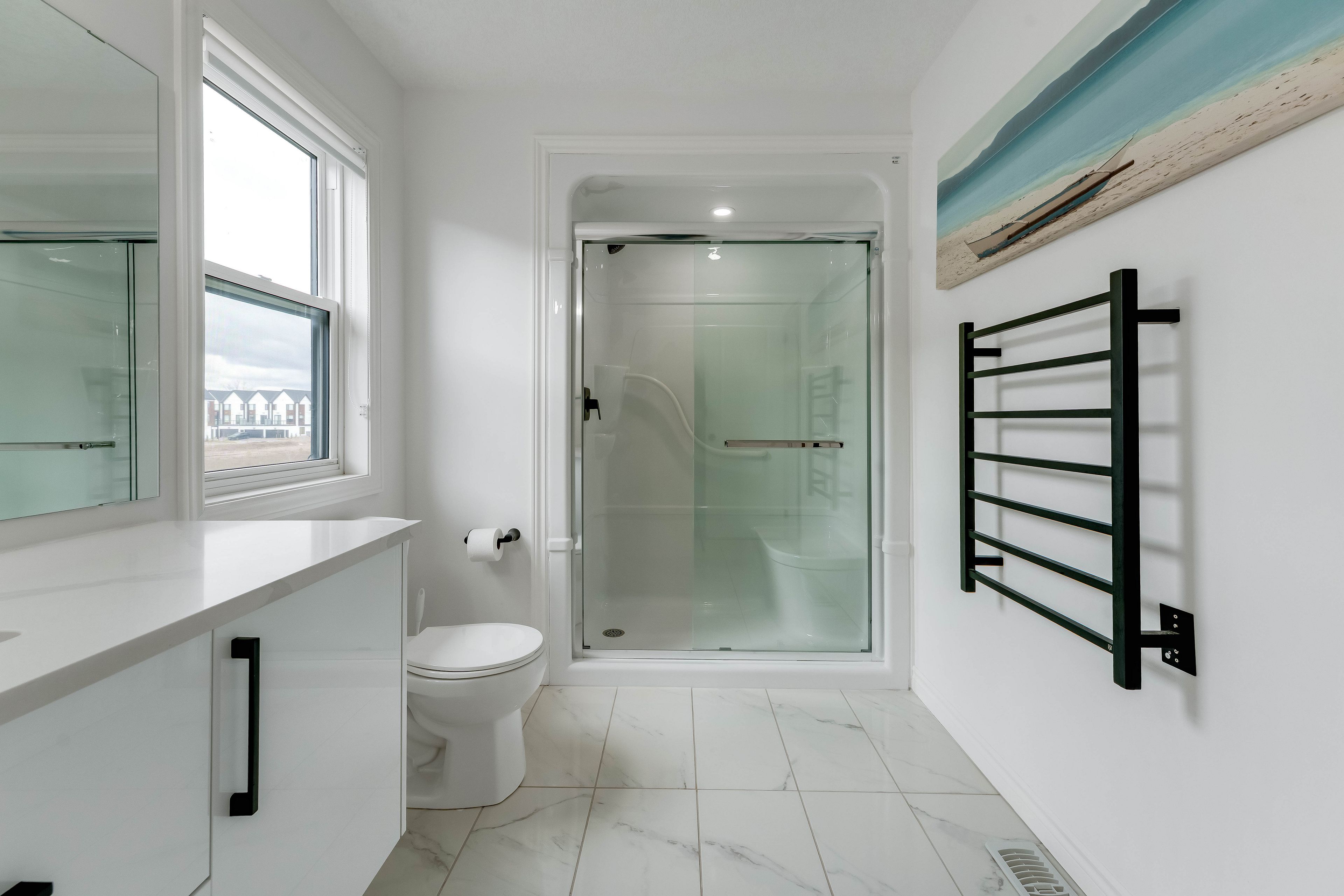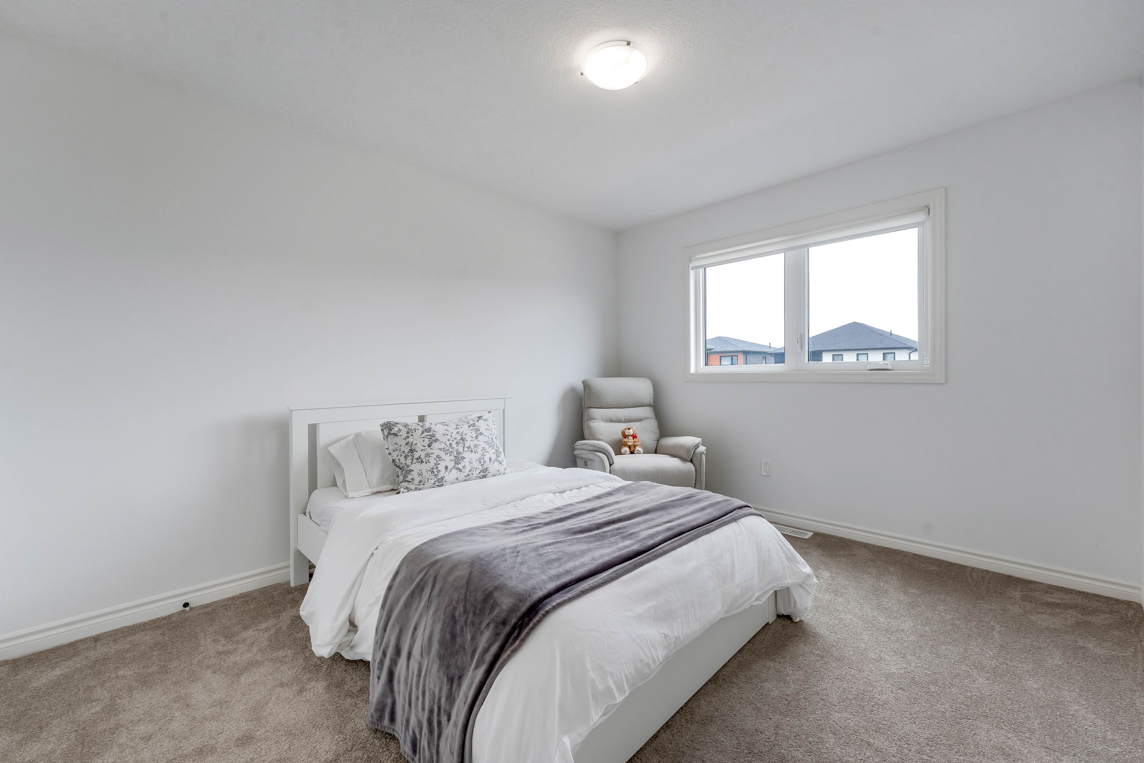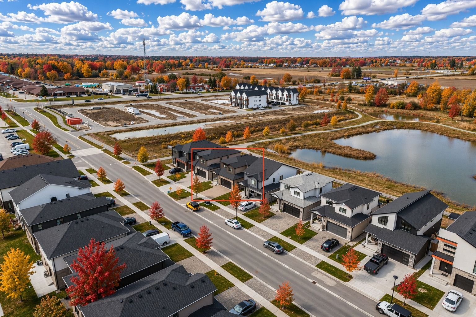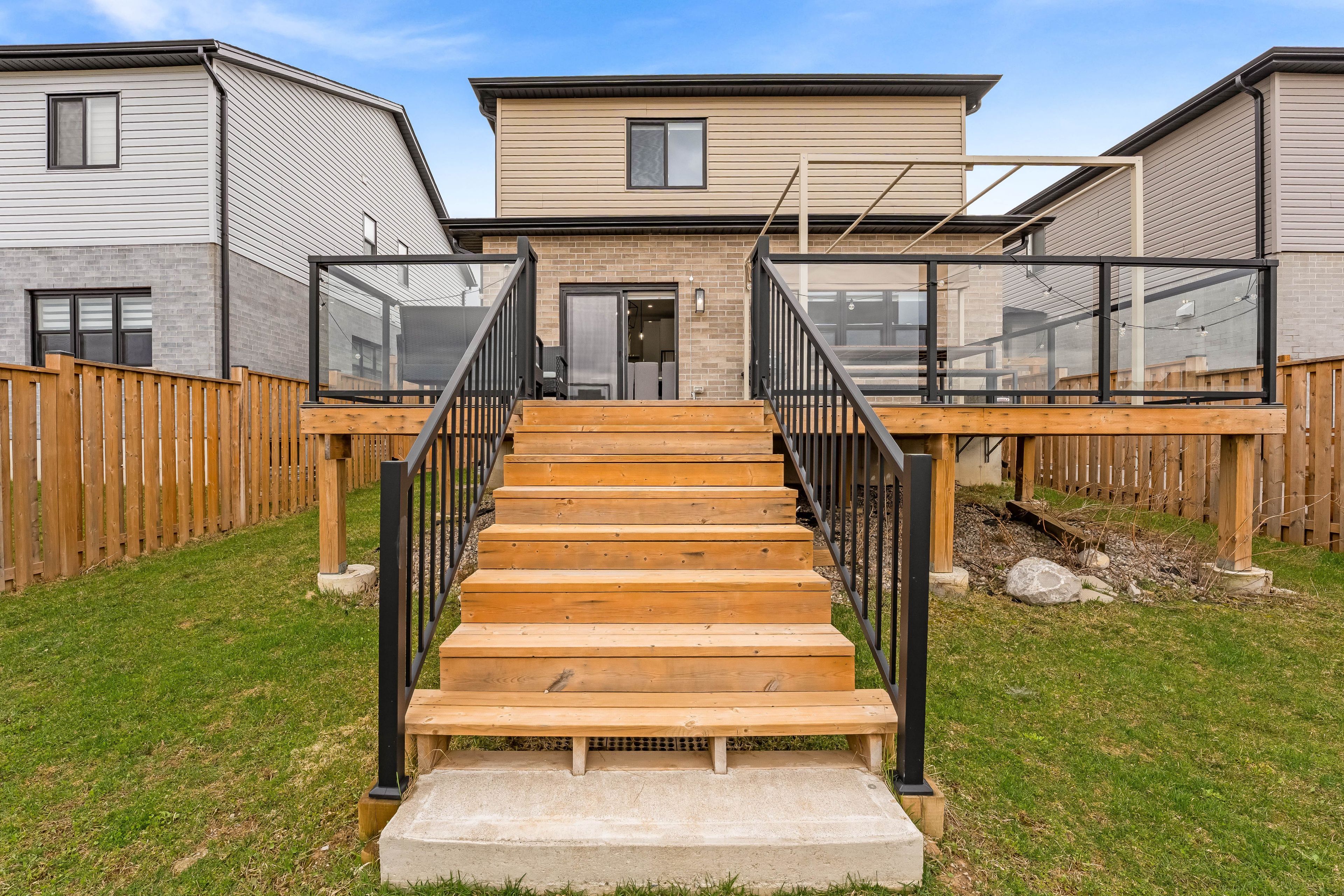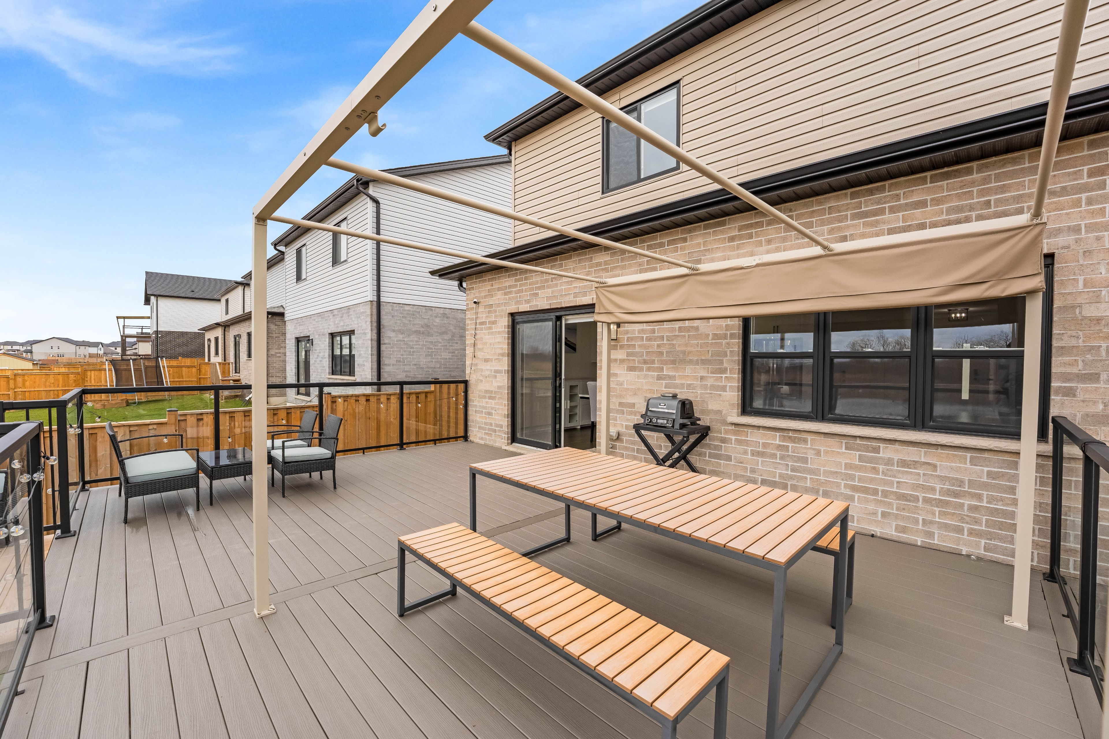 Your wait is over! Welcome to this stunning home offering 1887 sq ft of beautifully upgraded living space, featuring 3 bedrooms and 2. 5 bathrooms, perfectly designed for modern living. Step into a bright and open-concept main floor featuring 9 ft ceilings, hardwood flooring, and elegant modern light fixtures and faucets throughout. The heart of the home is the stylish white kitchen, complete with built-in stainless steel appliances, a gas stove, and oversized 42" cabinets, offering both function and sophistication. The layout flows seamlessly into the living and dining areas-perfect for entertaining or everyday living. Upstairs, you'll find the convenience of laundry on the second floor, along with three spacious bedrooms. The primary bedroom is generously sized and offers serene views as it backs directly onto the pond. The bathrooms are tastefully finished with modern vanities, and the ensuite includes a heated towel rack for an added touch of luxury. The unfinished basement features oversized windows, allowing for an abundance of natural light and providing the perfect blank canvas for future customization, whether you envision additional living space, a home gym, or an in-law suite. Step outside to your composite deck, where you can unwind while enjoying breathtaking sunset views over the pond. This premium lot backs onto green space and water, offering privacy and a peaceful setting that's hard to find. Additional highlights include a tankless water heater, smart home features (lighting, thermostat, and doorbell), am interlocking stone driveway, 2-car garage with ranch-style windows, plus a fence and shed. Located just minutes from the 401, close to amenities (adonis london, costco, white oaks mall) parks & trails, and steps away from a future school, this home offers the perfect blend of comfort, style, and convenience.