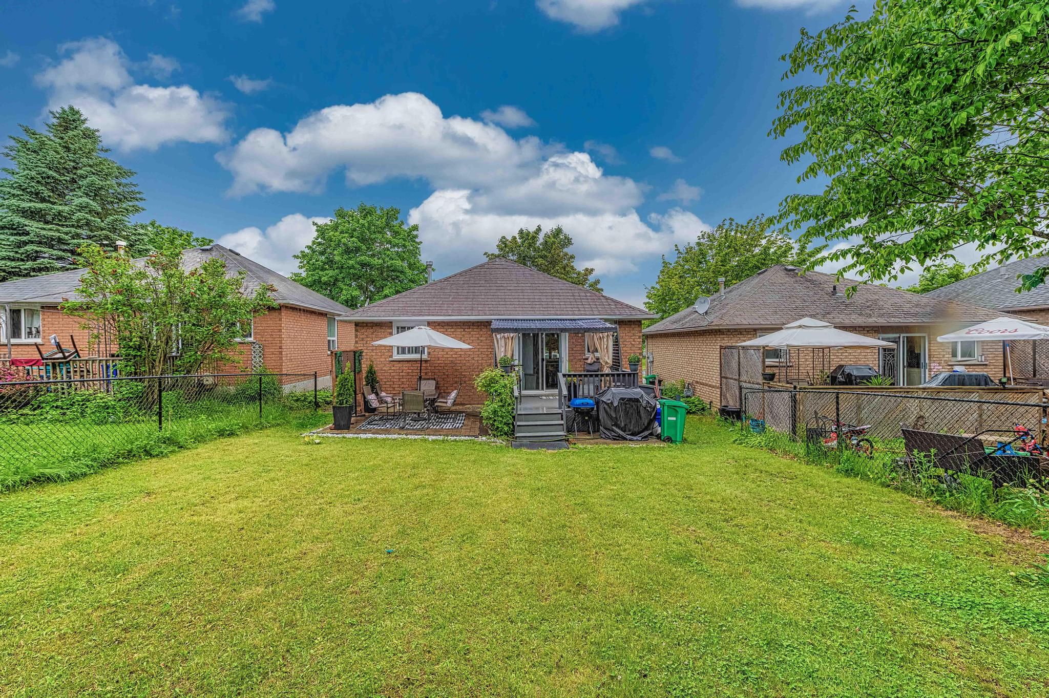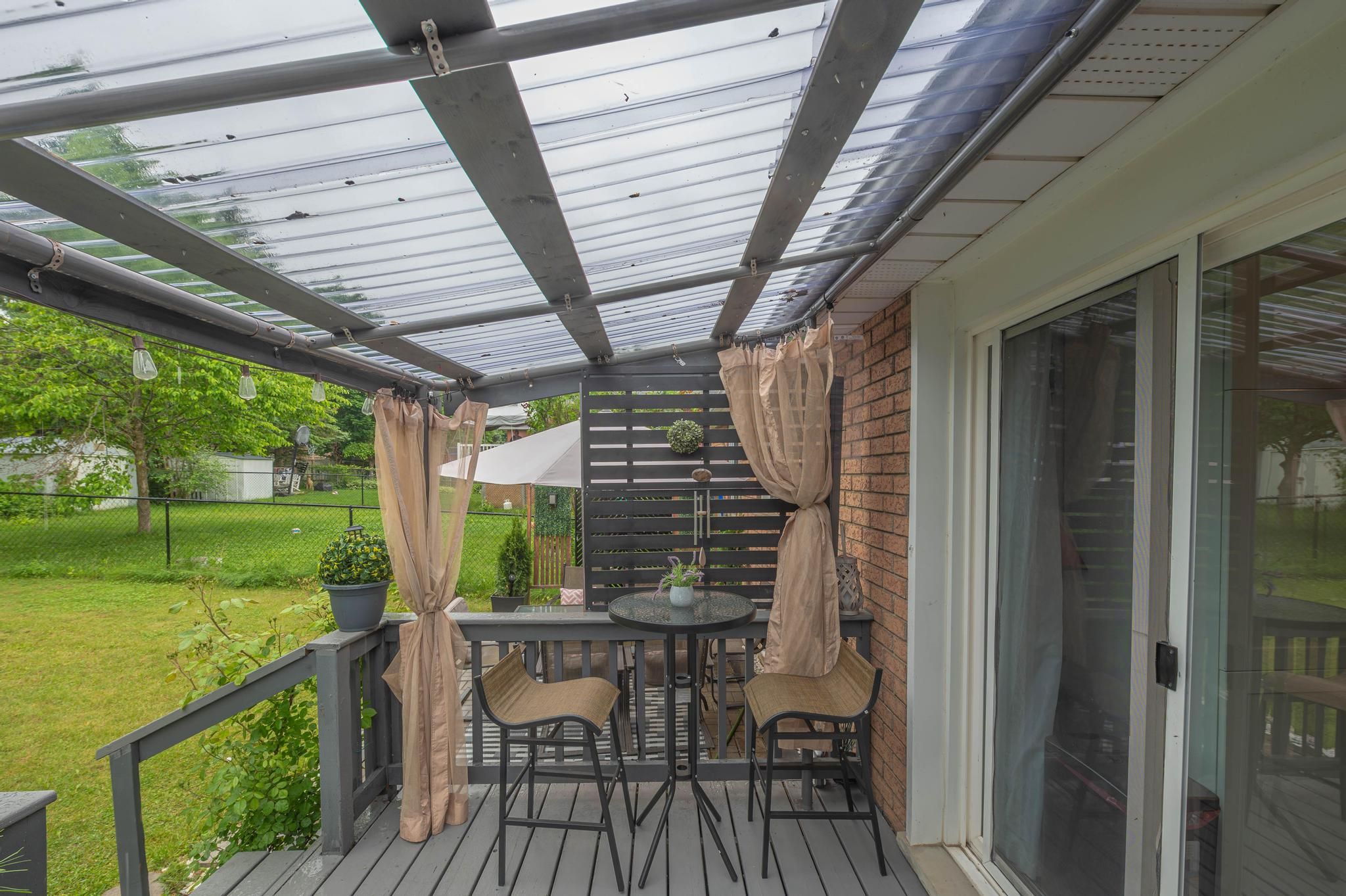 • Private backyard with covered deck and separate patio for entertaining.