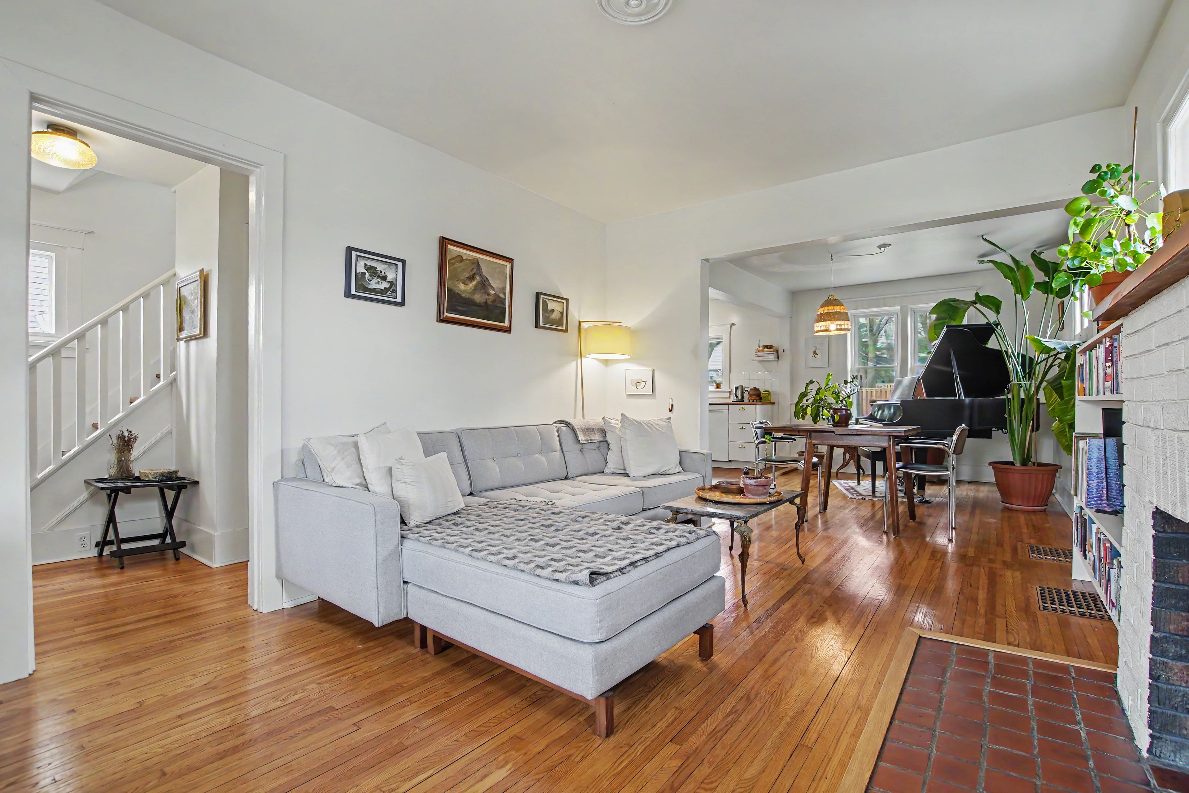• Bright, open living and dining space with refinished oak floors.