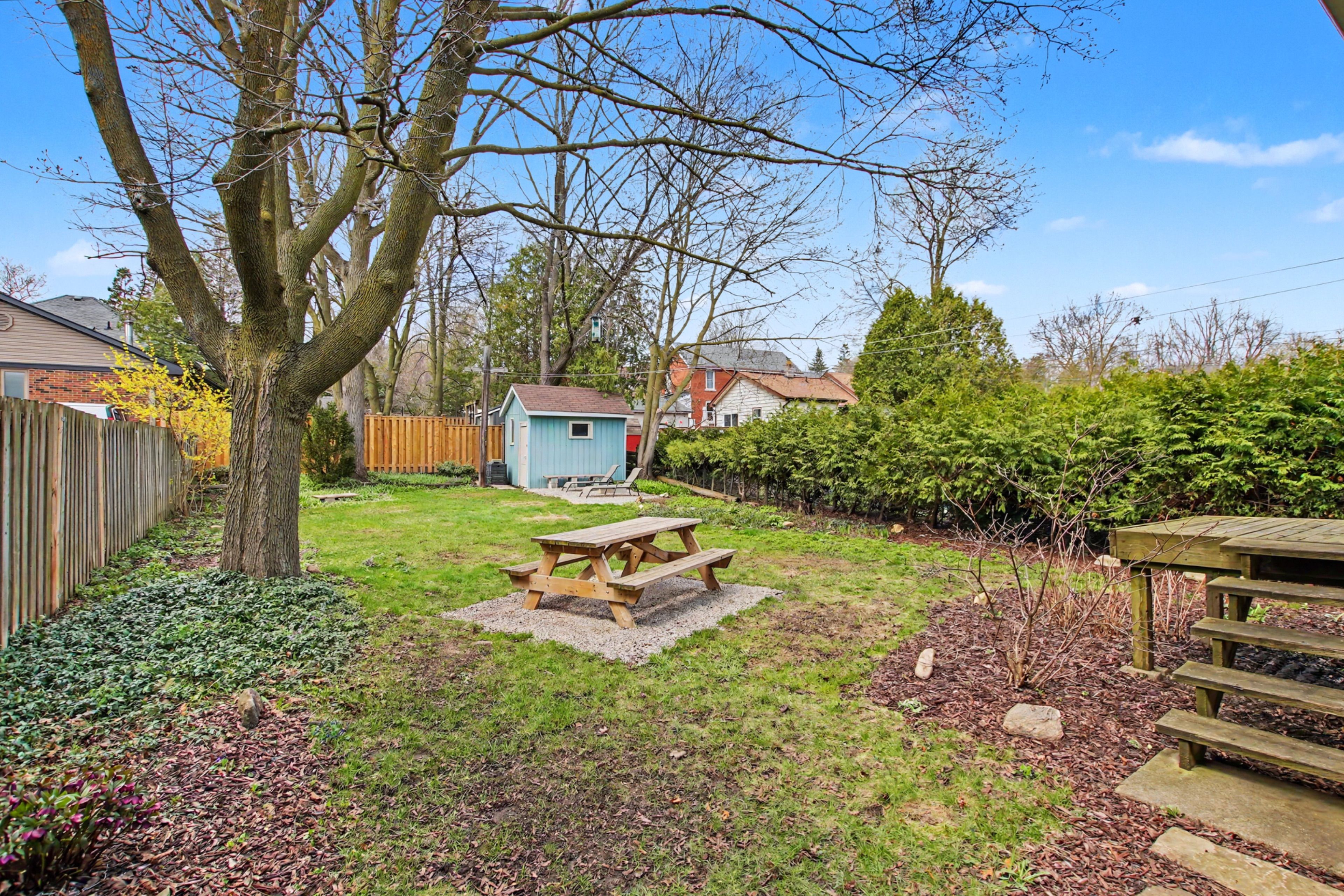• Fully fenced backyard with a perennial garden for relaxation and entertaining.