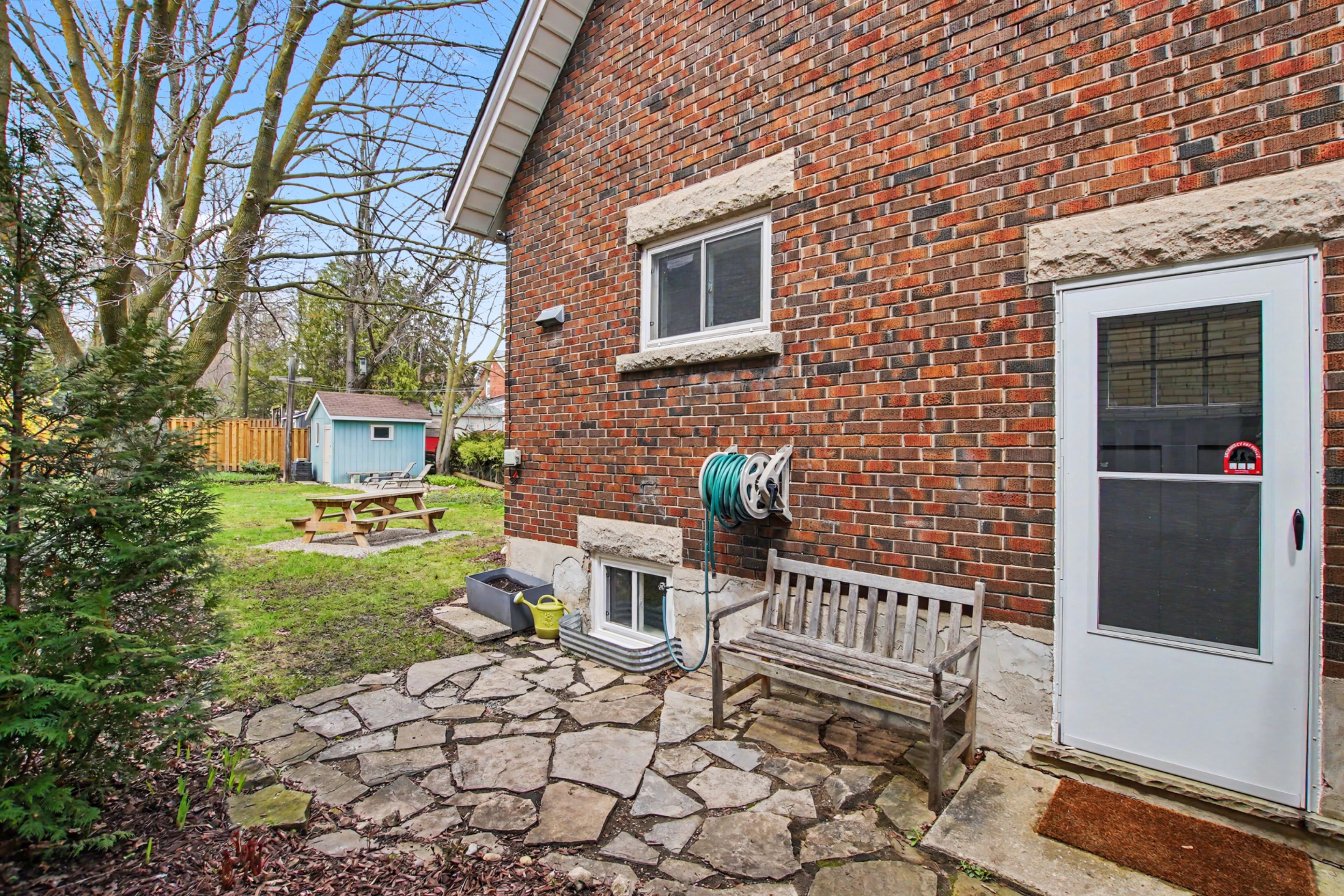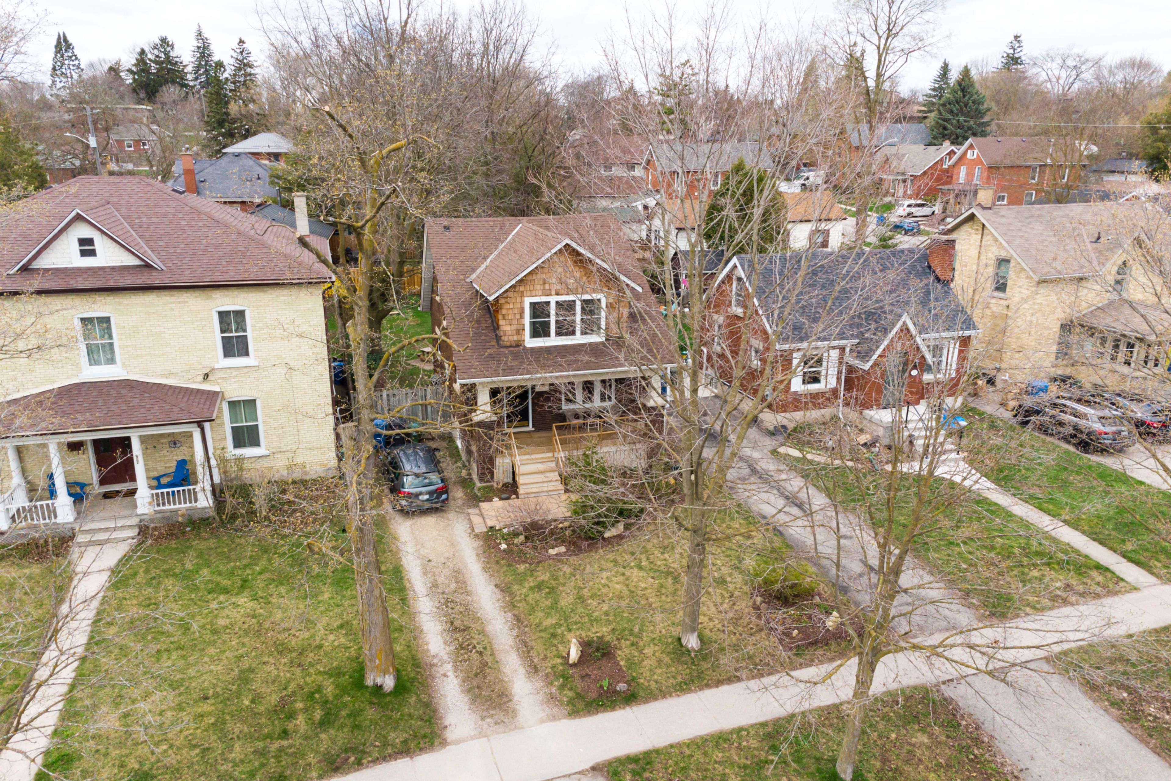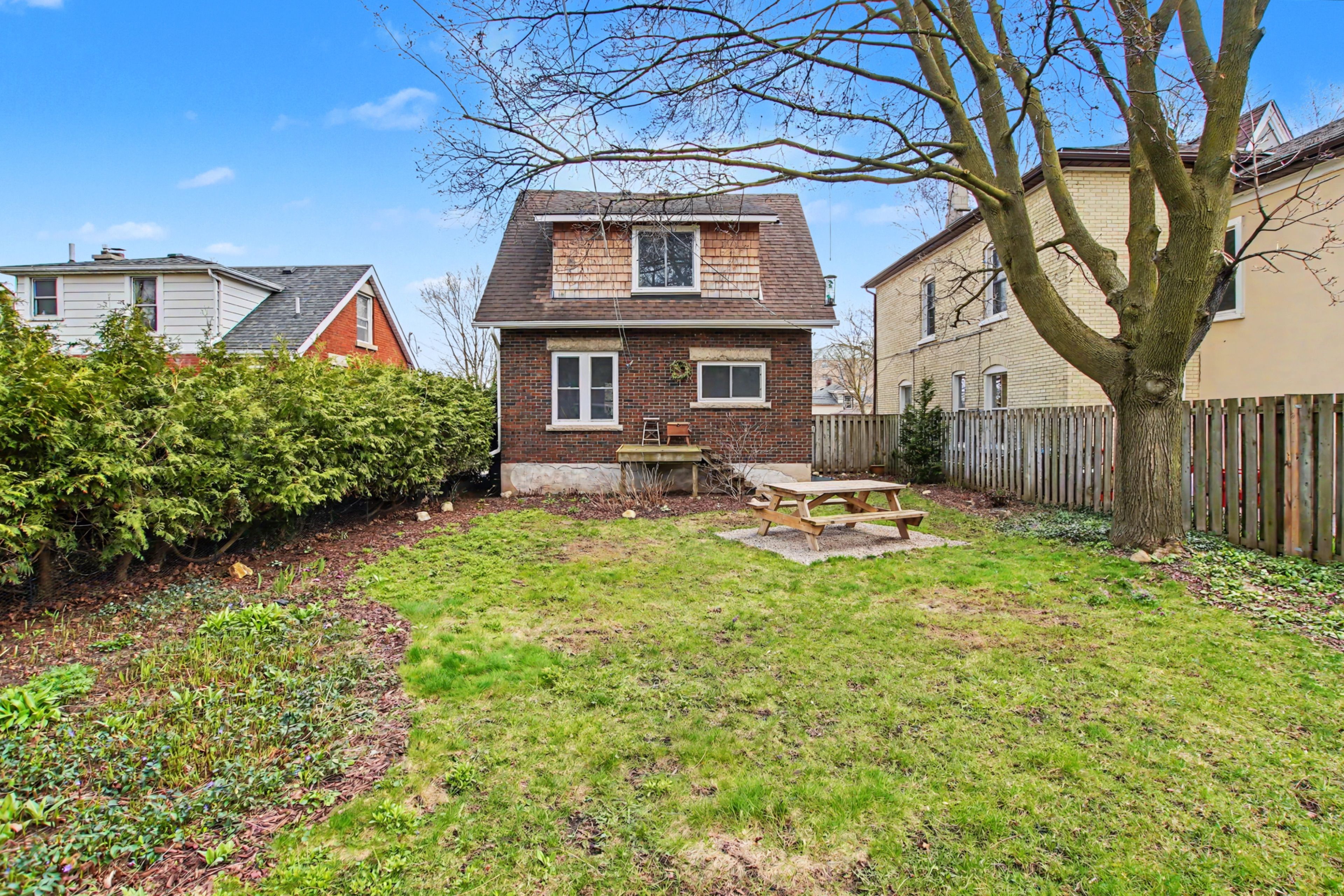 Built around 1924, this charming two-storey detached home offers a great mix of original character and modern updates. Located on historic waterloo avenue-one of guelph's original main streets-it's a home with both style and a story. The exterior features eye-catching tri-colour brick, original limestone details, cedar-shingled dormers, and a large, welcoming front porch. Inside, the home is filled with natural light thanks to its southern exposure. The main floor offers a bright, open living and dining space with refinished oak floors, leading into a spacious u-shaped kitchen with unique tile flooring. A second entrance near the kitchen provides easy access to the fully fenced backyard with a perennial garden-perfect for relaxing or entertaining. The clean, dry basement adds extra space for storage or future use, with updated windows (2021) bringing in additional light. Upstairs, you'll find three bright bedrooms with refinished pine floors and an updated bathroom, all connected by a beautiful original wood staircase. A wonderful opportunity to own a character home in a desirable, established neighbourhood.