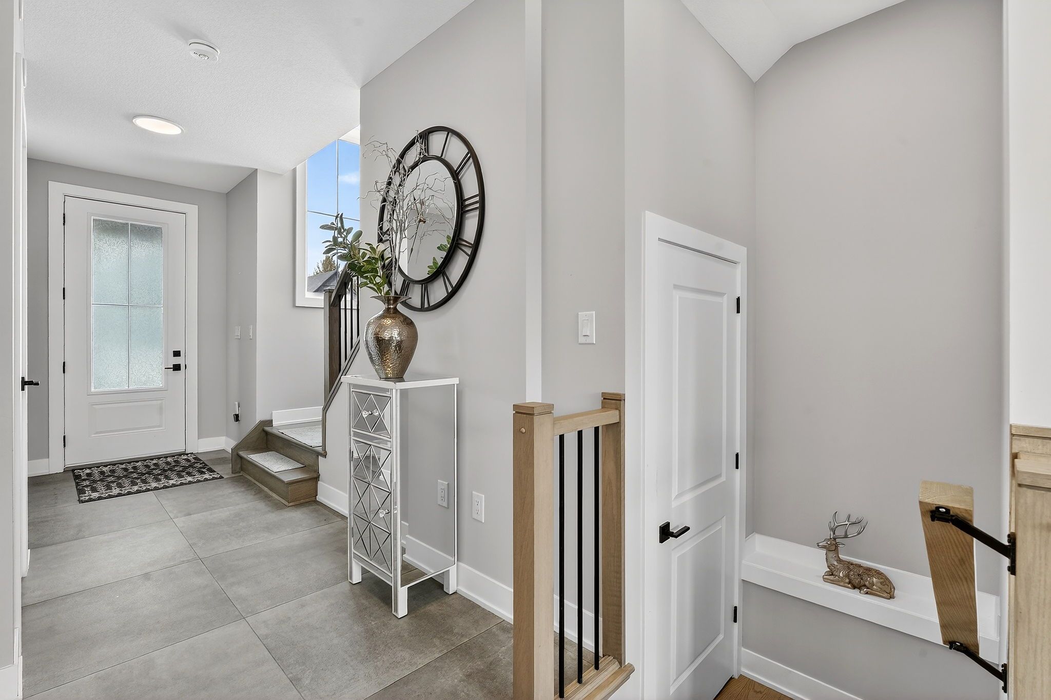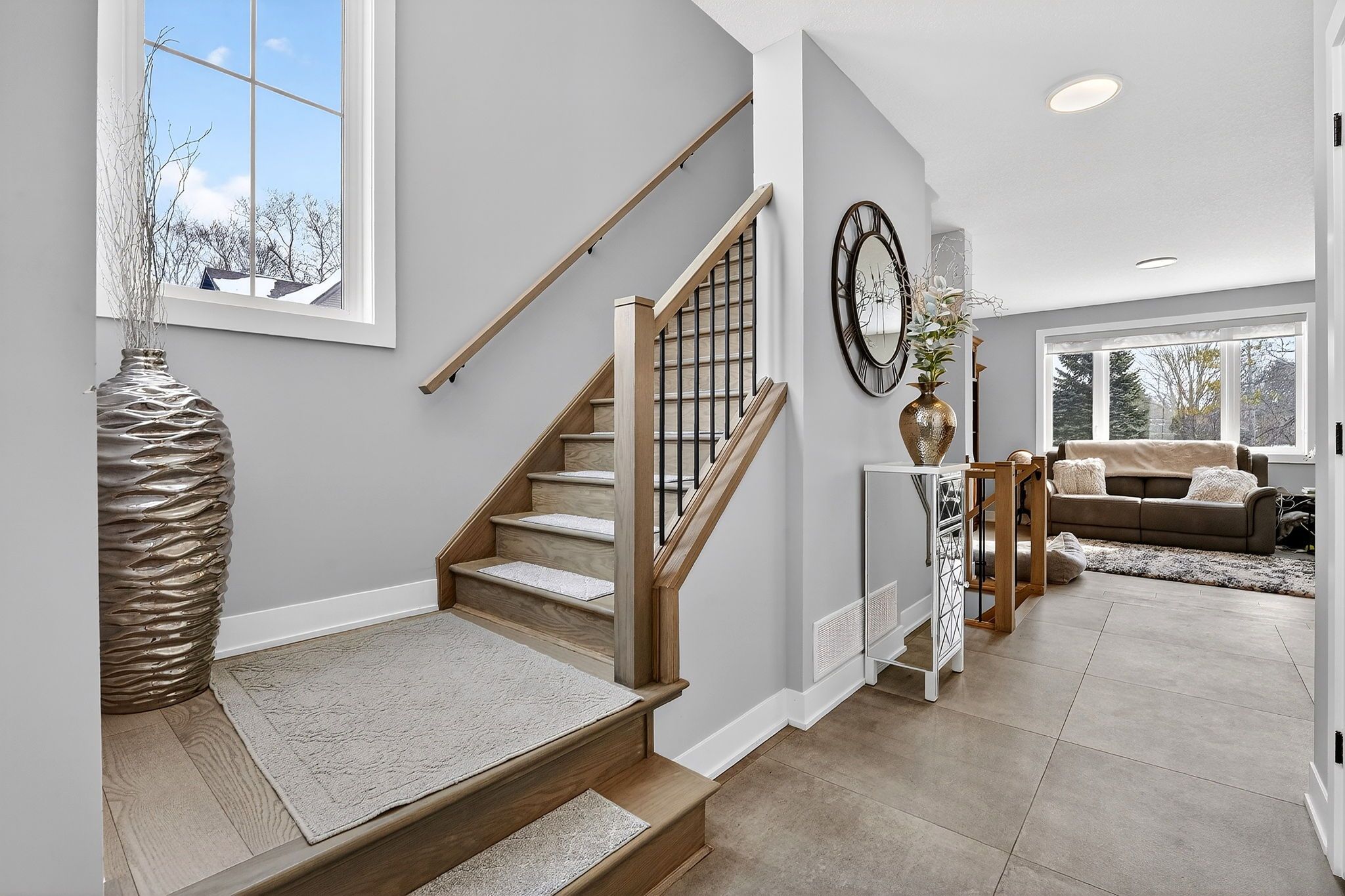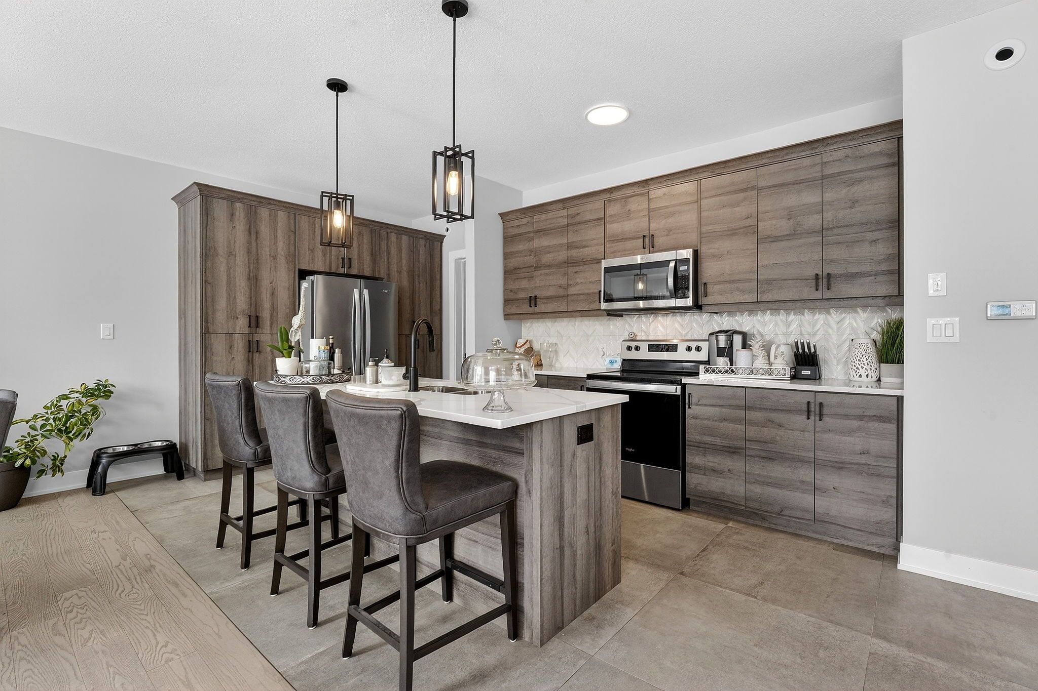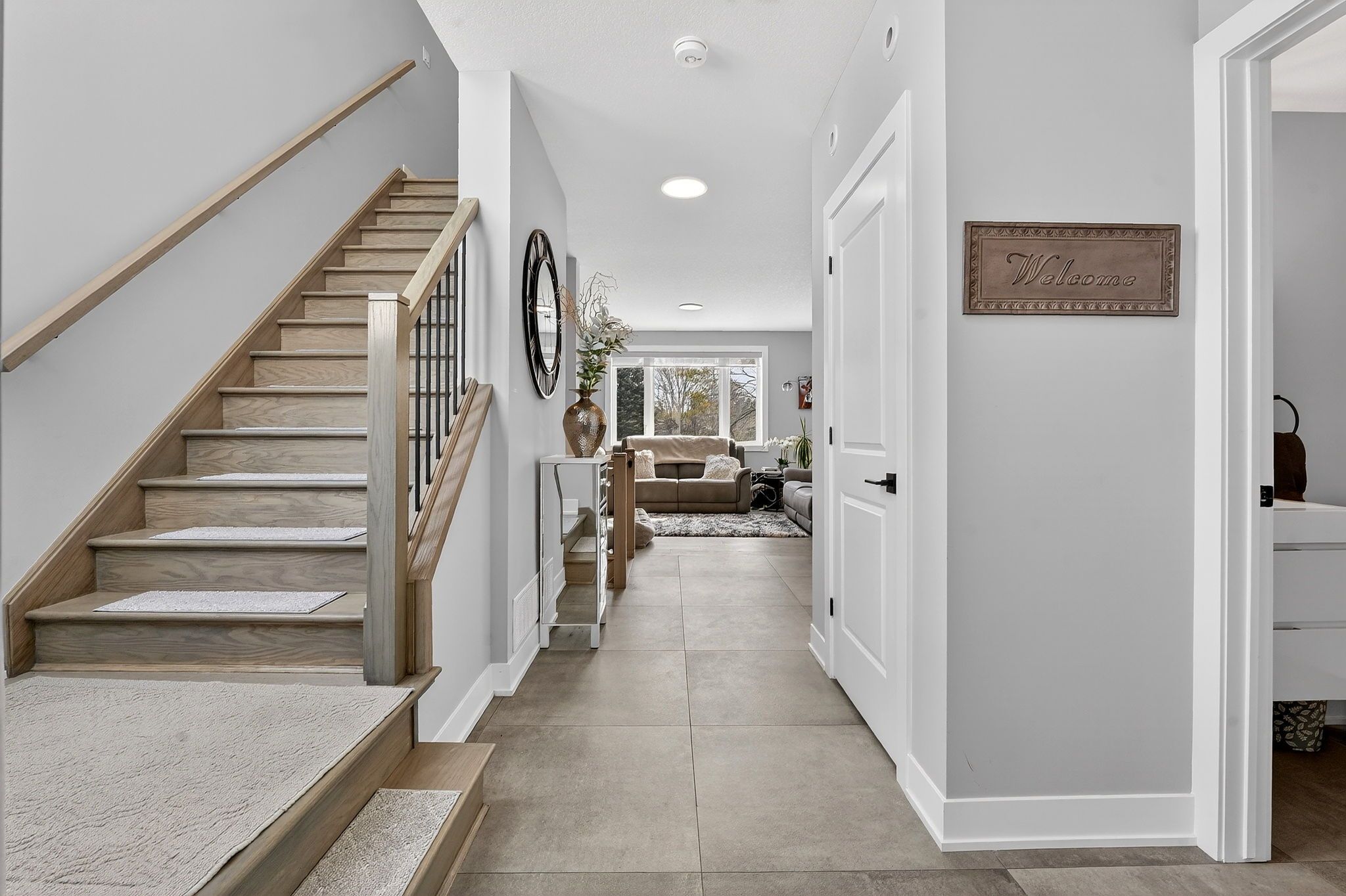 • Open-concept main level with a stylish kitchen and quartz countertops.