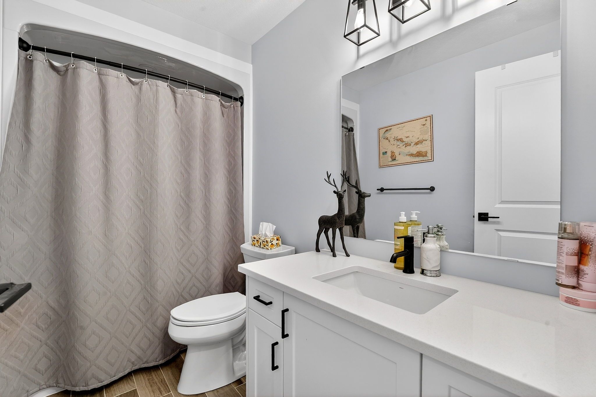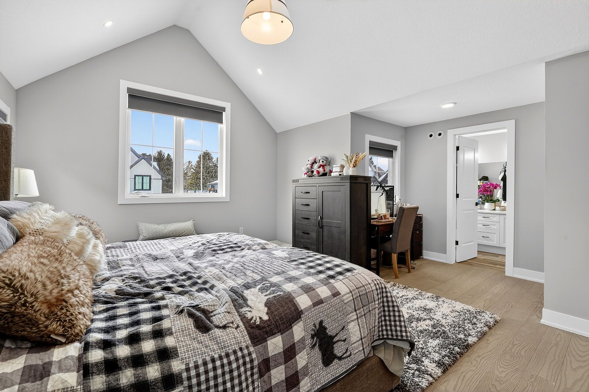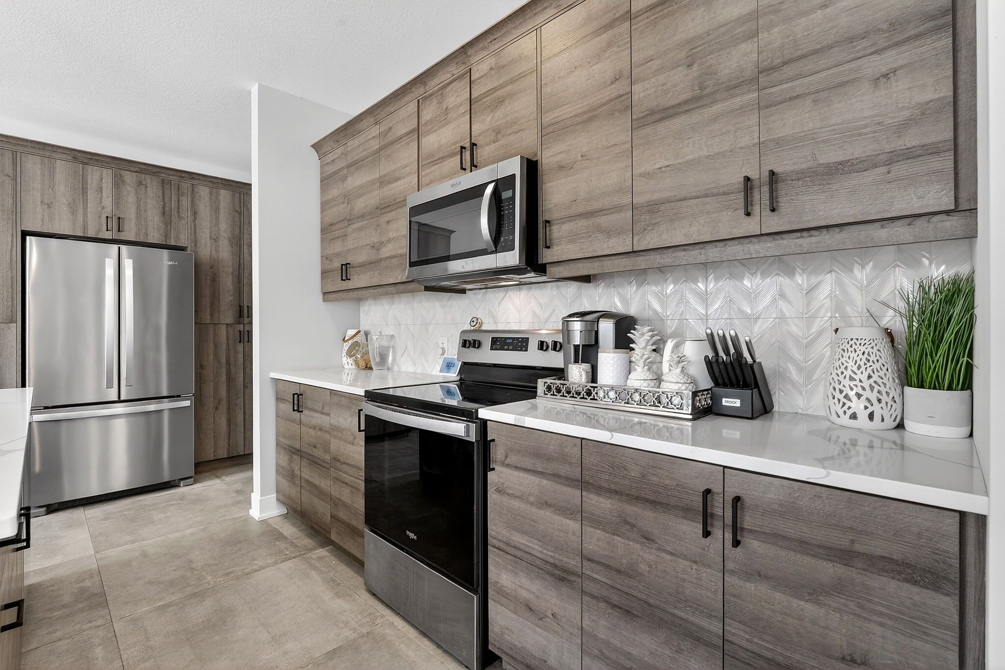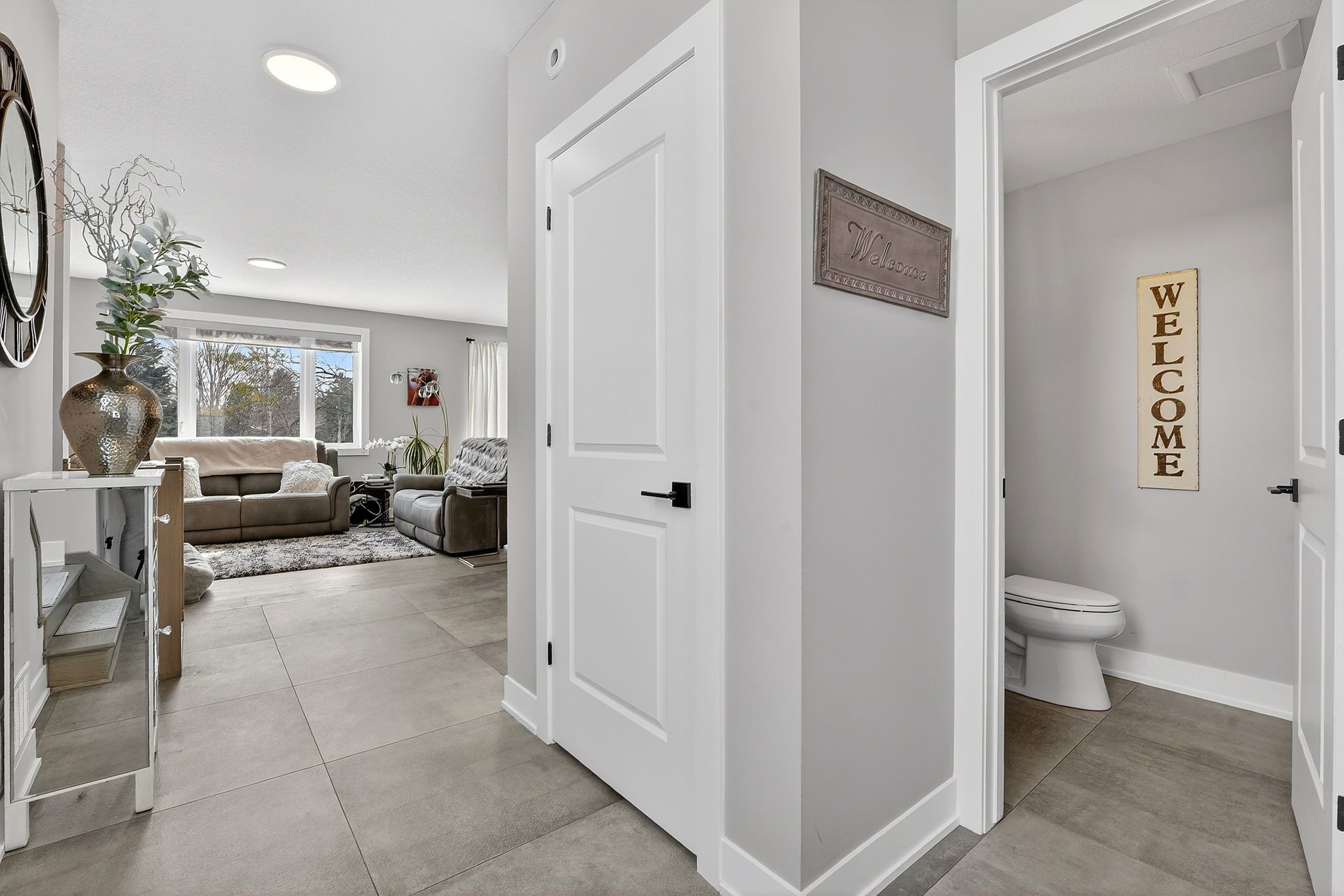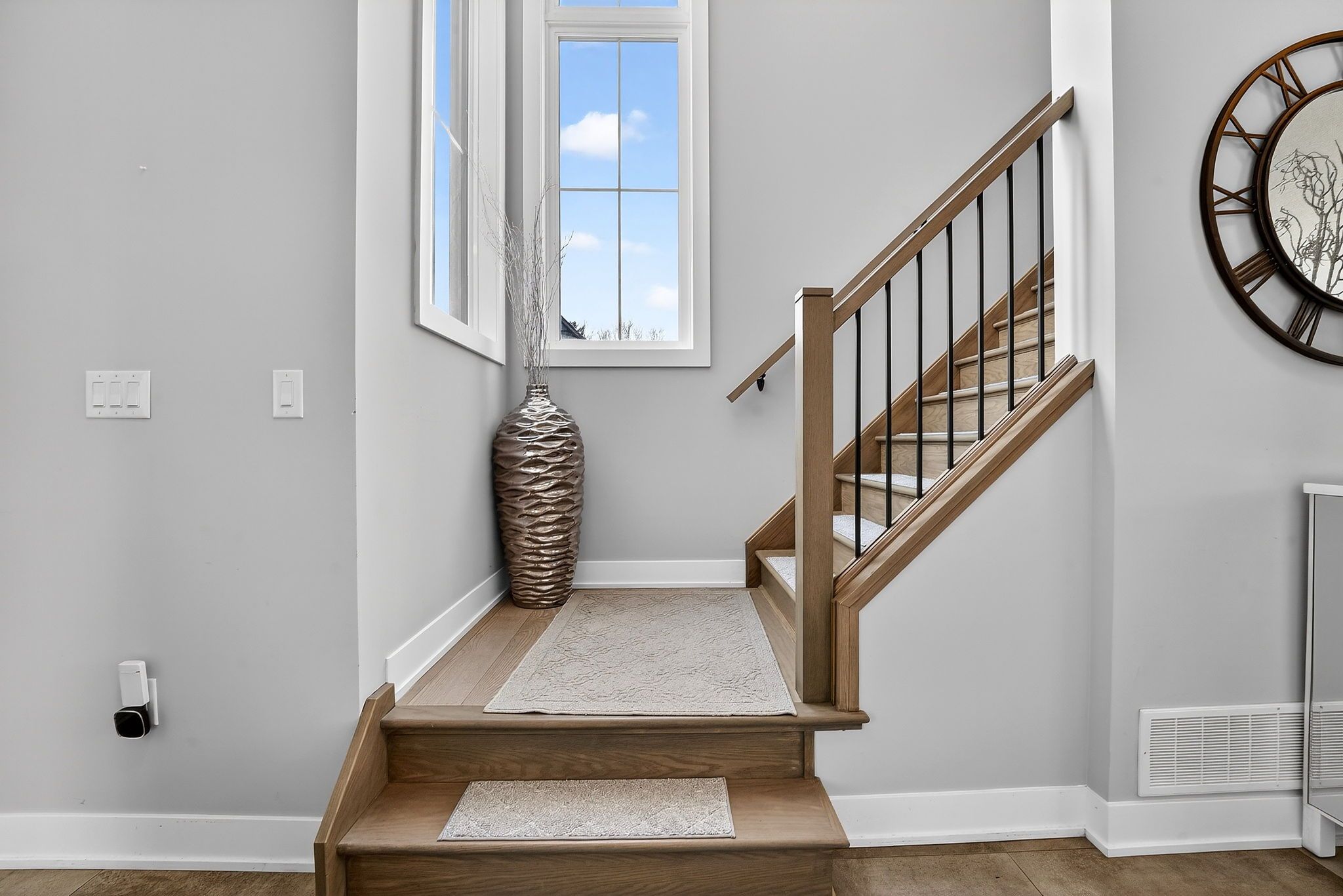 • Open-concept main level with a stylish kitchen and quartz countertops.