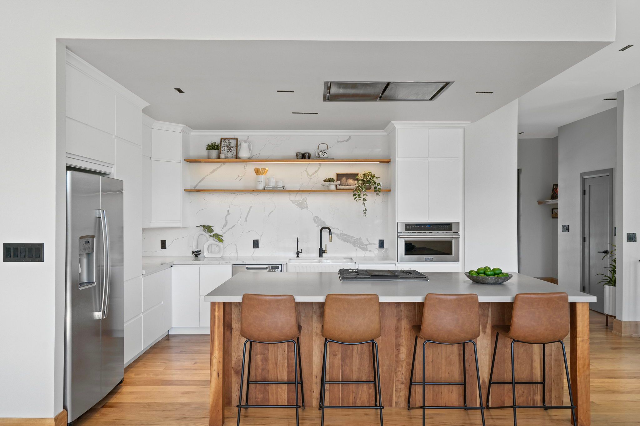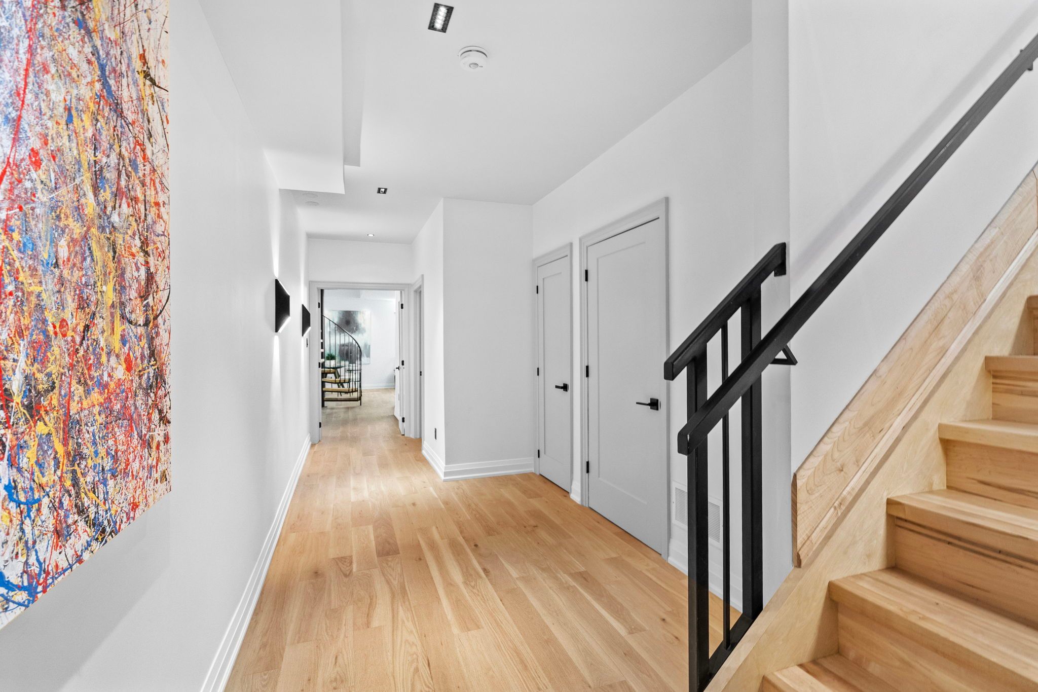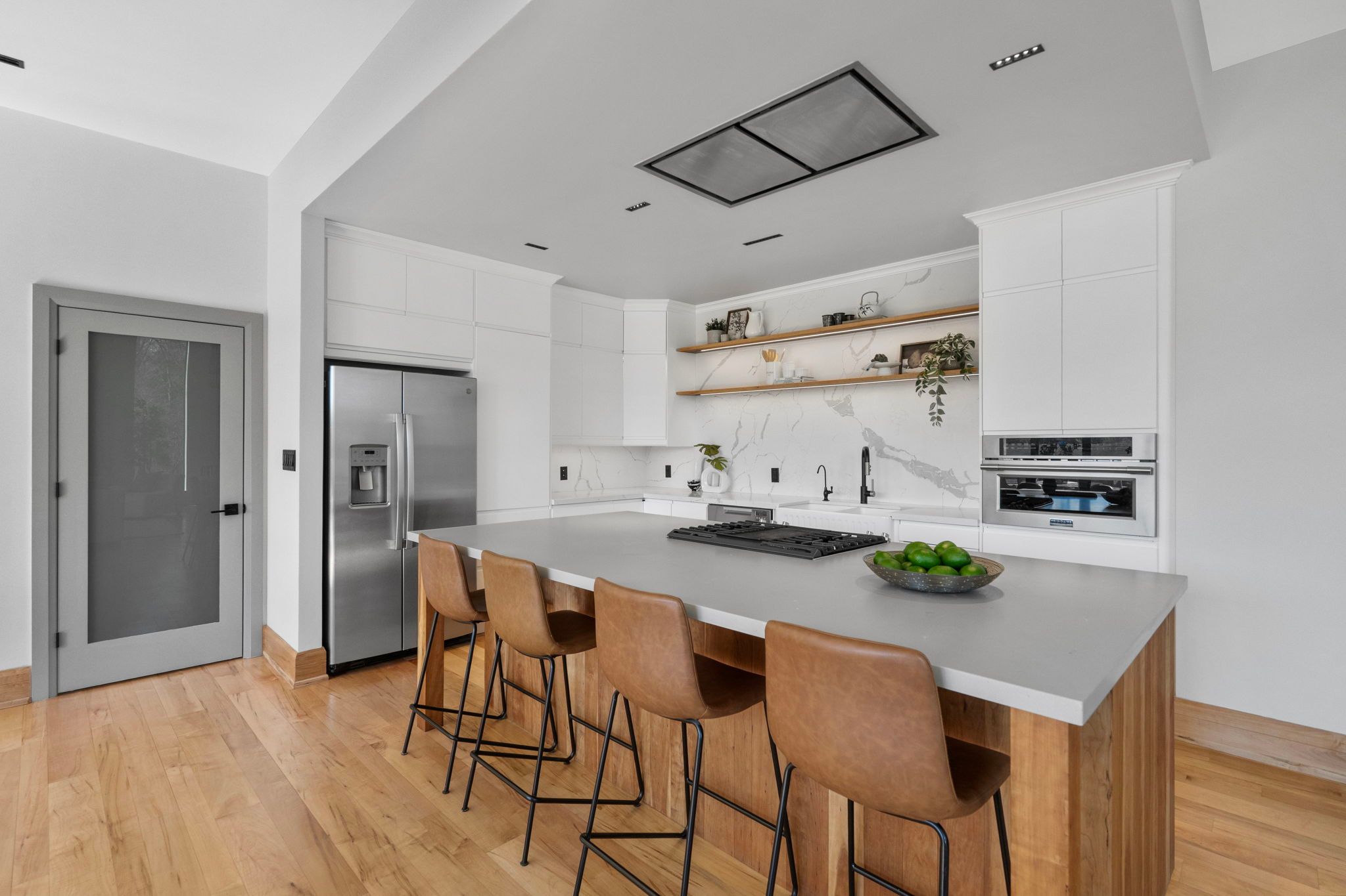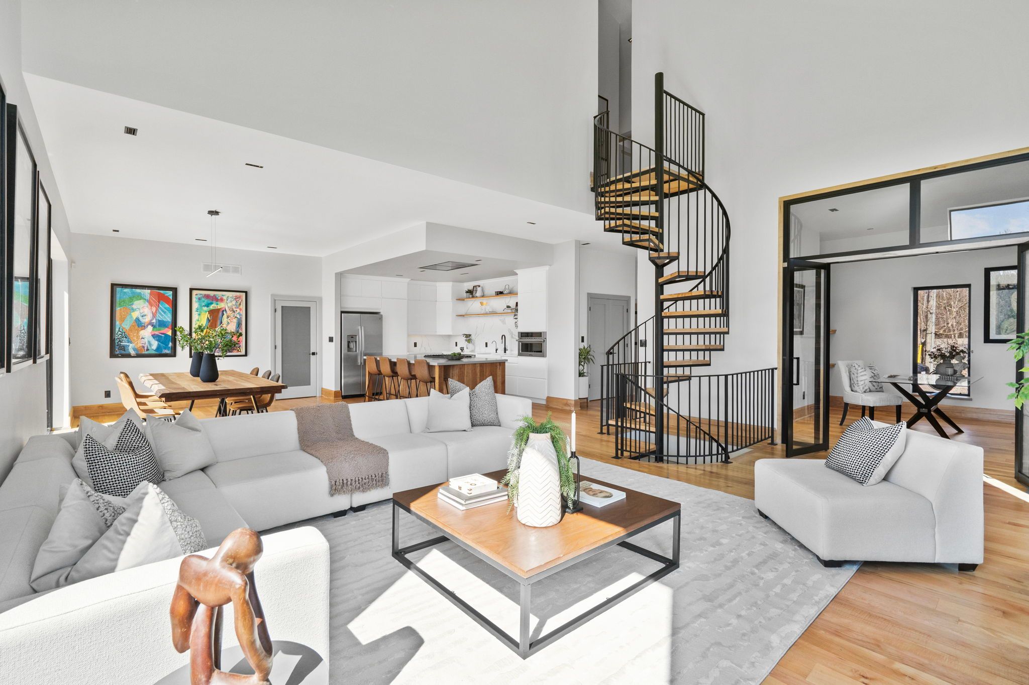Where the credit runs quiet there are homes, and then there are statements. This modern chalet, perched above the credit river, belongs firmly in the latter category - a 5,500 + square foot artist's vision rendered in wood, stone, glass, and intention. You feel it the moment you cross the threshold. A grand foyer opens to soaring 20 + foot ceilings, staggering windows, and a towering column of stone anchoring an oversized fireplace that commands the room. Warm, polished maple floor carries you forward into a gallery-caliber center-plan main floor where every detail is purposeful - the custom wood island, the flush vent hood, the understated kitchen that knows exactly how powerful it is. At the heart of it all, a two-level spiral staircase threads three floors together with the kind of architectural drama that earns its place. A proper library steadies the mind nearby. A separate family entrance, mudroom, and cavernous garage-studio (with its own powder rm) anchor the home in real, livable, business for self functionality. Upstairs, four vaulted bedrooms and laundry - the principal suite framing river and escarpment views through glass, wrapped in custom millwork and a spa-caliber bath. Two mirrored bedrooms divide a family bath between them. Beyond the 2nd-level foyer: a versatile studio suite - finished, luminous, and ready to become whatever you require (including a secondary suite) . The lower level pours with natural light across a grand family room, a theatre, two-plus-one bedrooms, and two full baths. Beneath the suspended slab garage - a rec room that redefines the term gym. Step outside. A raised terrace. A lush yard above the river and open pastures. An orchard. A play structure with zip line. Room for a pool, a garage, or something you haven't imagined yet. And quietly set apart "the barn" a complete studio home serving as guest suite, income property, or personal sanctuary. This is not a listing. It is a life, fully built. ***video is a must watch!