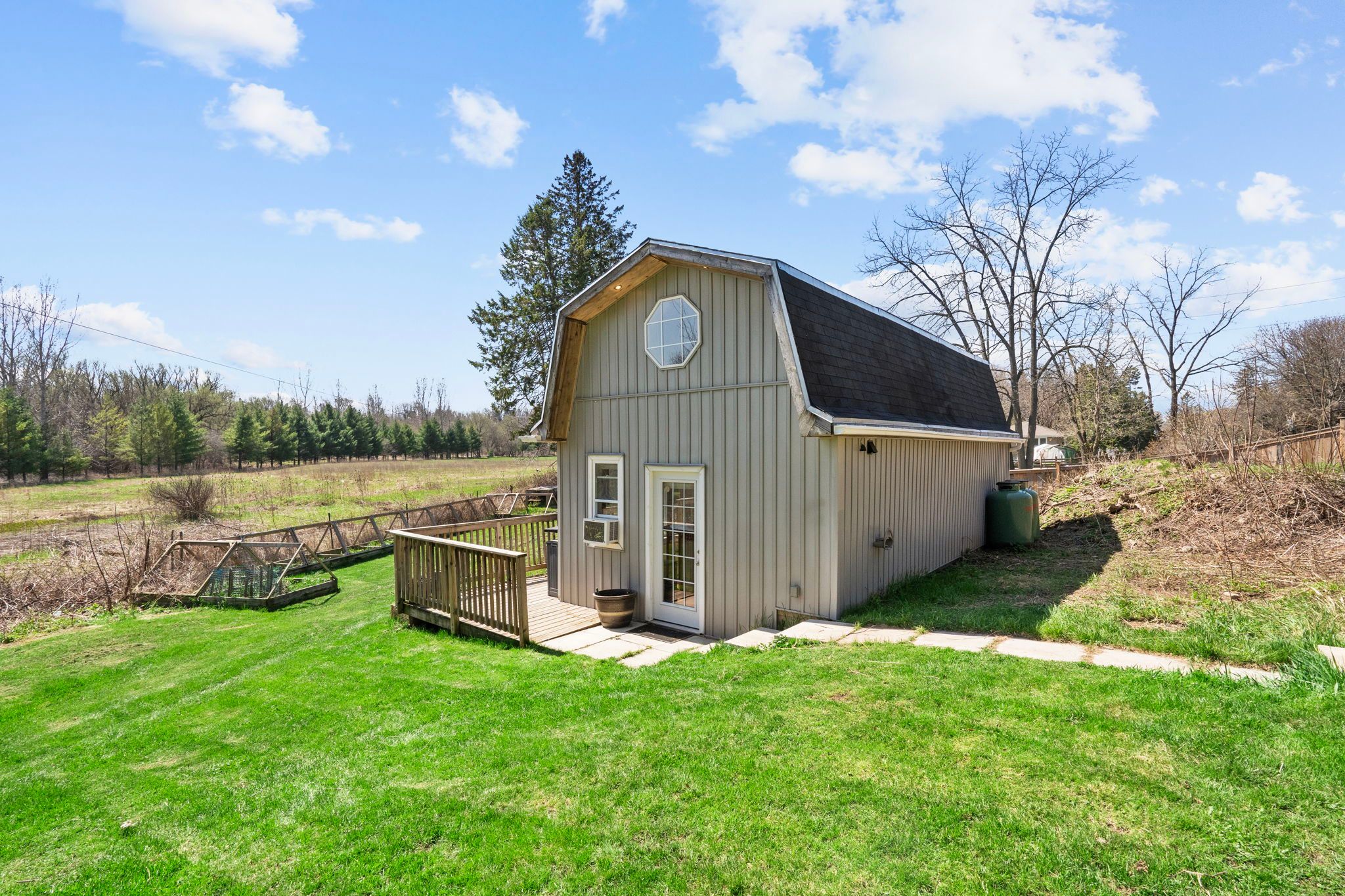 • Large yard with raised terrace, orchard, and room for outdoor fun.