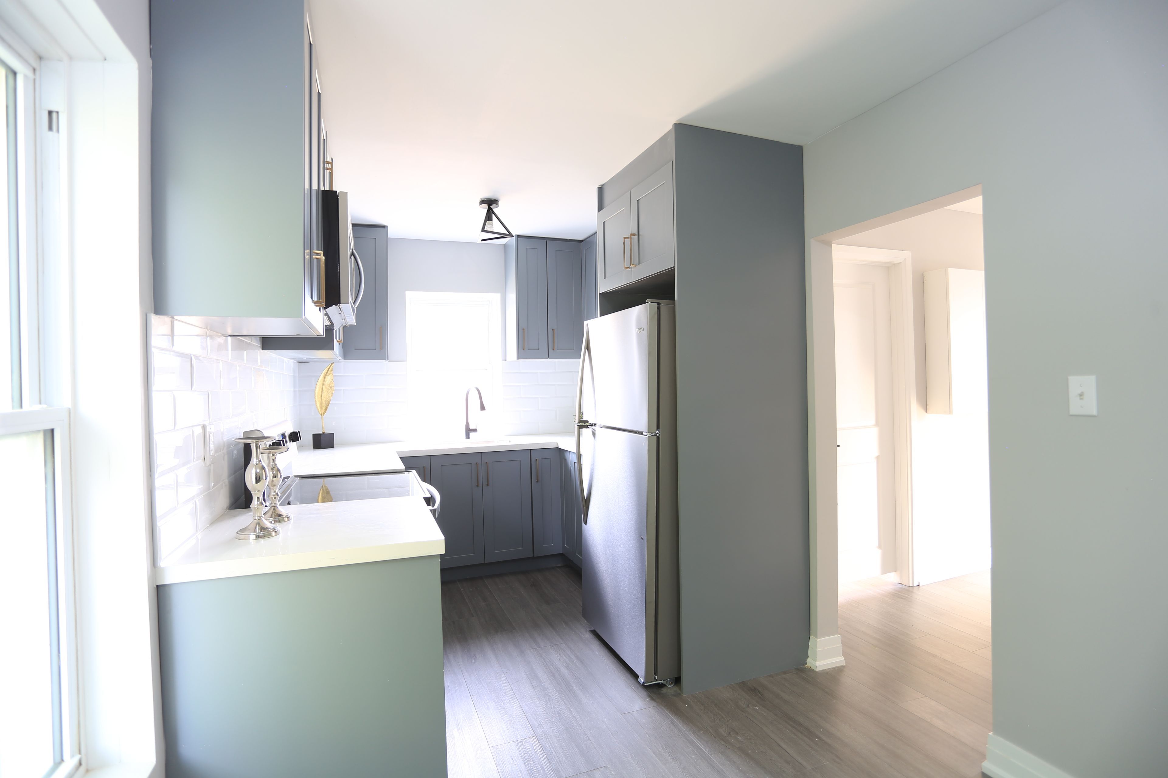 • Bright layout with large windows and modern stainless steel appliances.