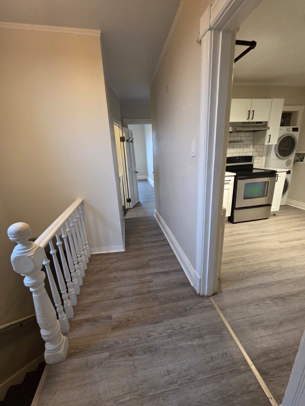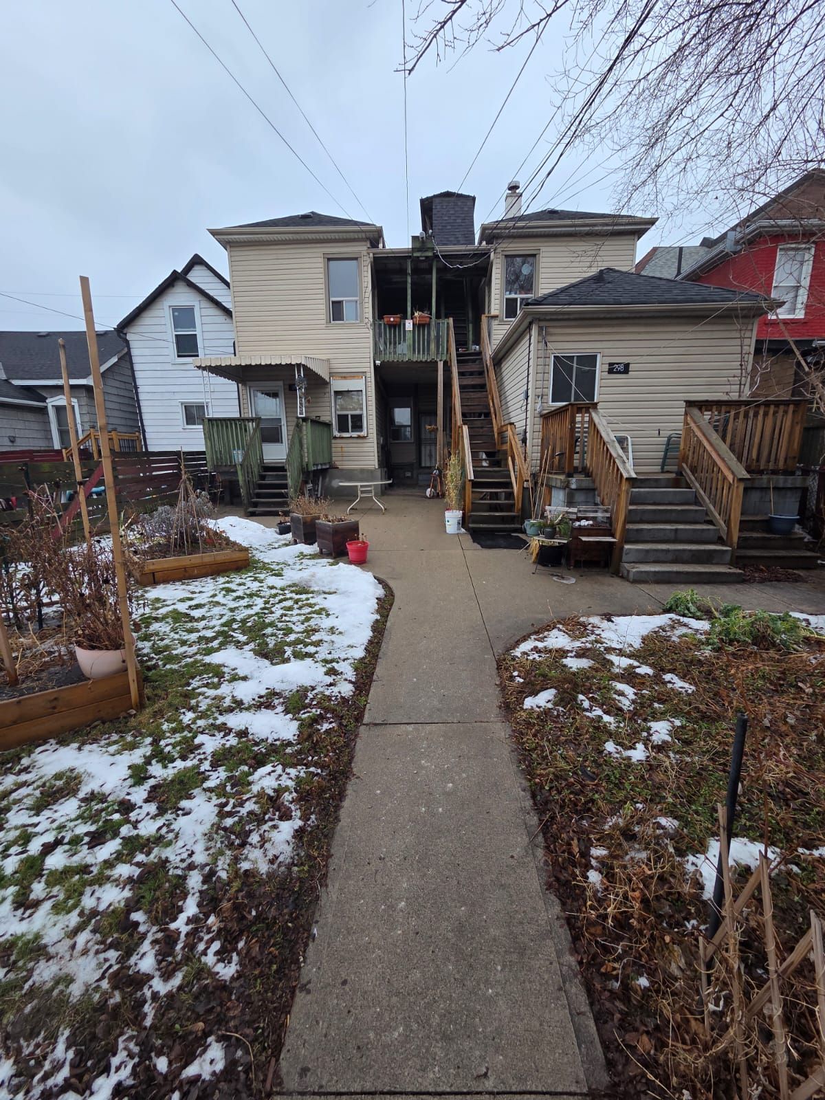 2 bedroom 1 bathroom upper unit available december 1 2025. Spacious living room area with plenty of natural light, large open kitchen complete with stacked washer dryer and modern white countertops and backsplash. A perfect place to enjoy a meal together. 2 well sized bedrooms and an updated 4 piece bathroom complete this unit. Water and gas included in lease price. Electricity is extra. Parking is available for additional fee. Enjoy the ease and access of living in a highly walkable neighbourhood with added convenience of being close to the transit system.