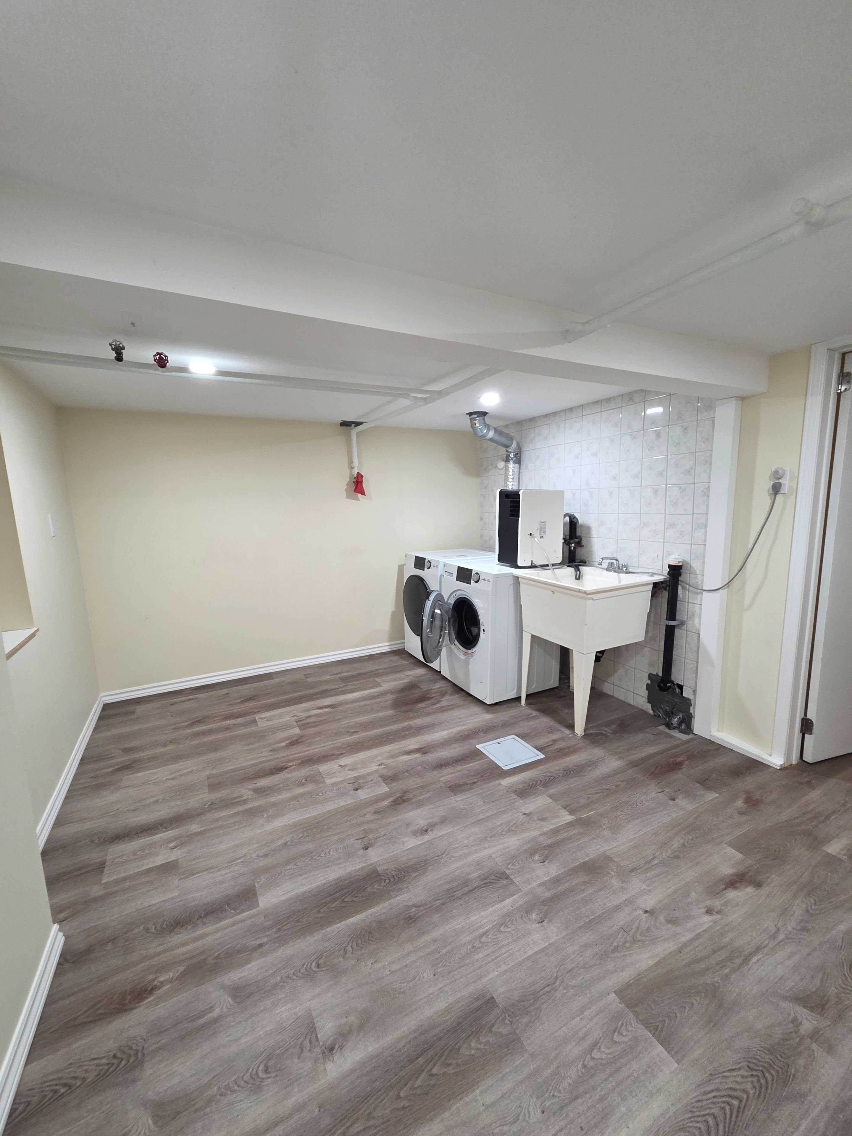 • Expansive laundry room suitable for office or creative space.