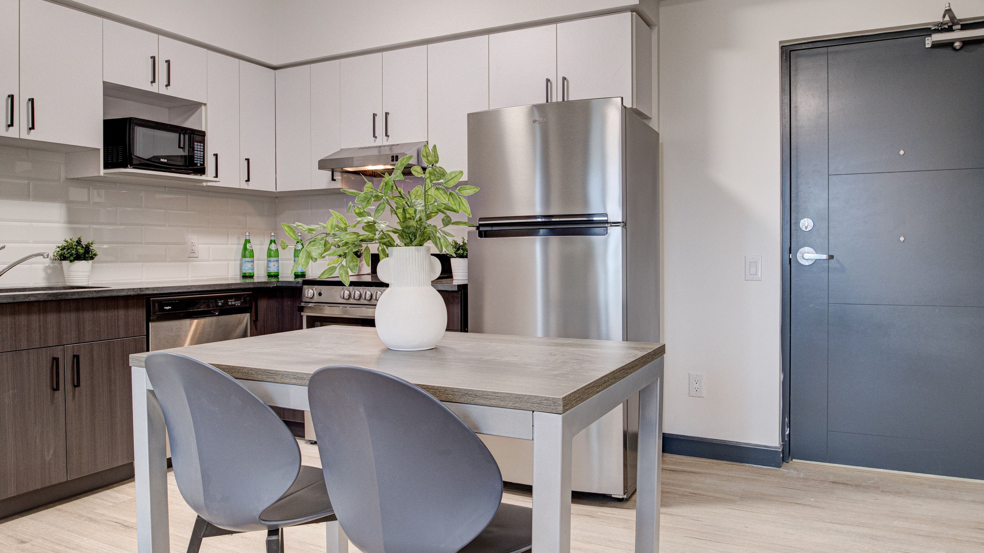 Welcome to unit 618 at 298 hemlock street - modern living in the heart of waterloo's university district. Just steps from wilfrid laurier university, the university of waterloo, transit, dining, and everyday amenities, this location offers unbeatable convenience in a vibrant community. This 709 sq. Ft. One-bedroom plus dining suite with two full bathrooms delivers a smart, functional layout designed for comfort and flexibility. The spacious bedroom is complemented by a dedicated dining area, ideal for entertaining, studying, or working from home, while the second bathroom adds rare convenience and privacy. The contemporary kitchen features granite countertops, full wood cabinetry, and sleek led lighting, flowing seamlessly into the open-concept living space. Floor-to-ceiling windows flood the unit with natural light, creating a bright and airy atmosphere throughout. Efficient, modern, and exceptionally located - unit 618 offers elevated urban living in one of waterloo's most sought-after buildings.