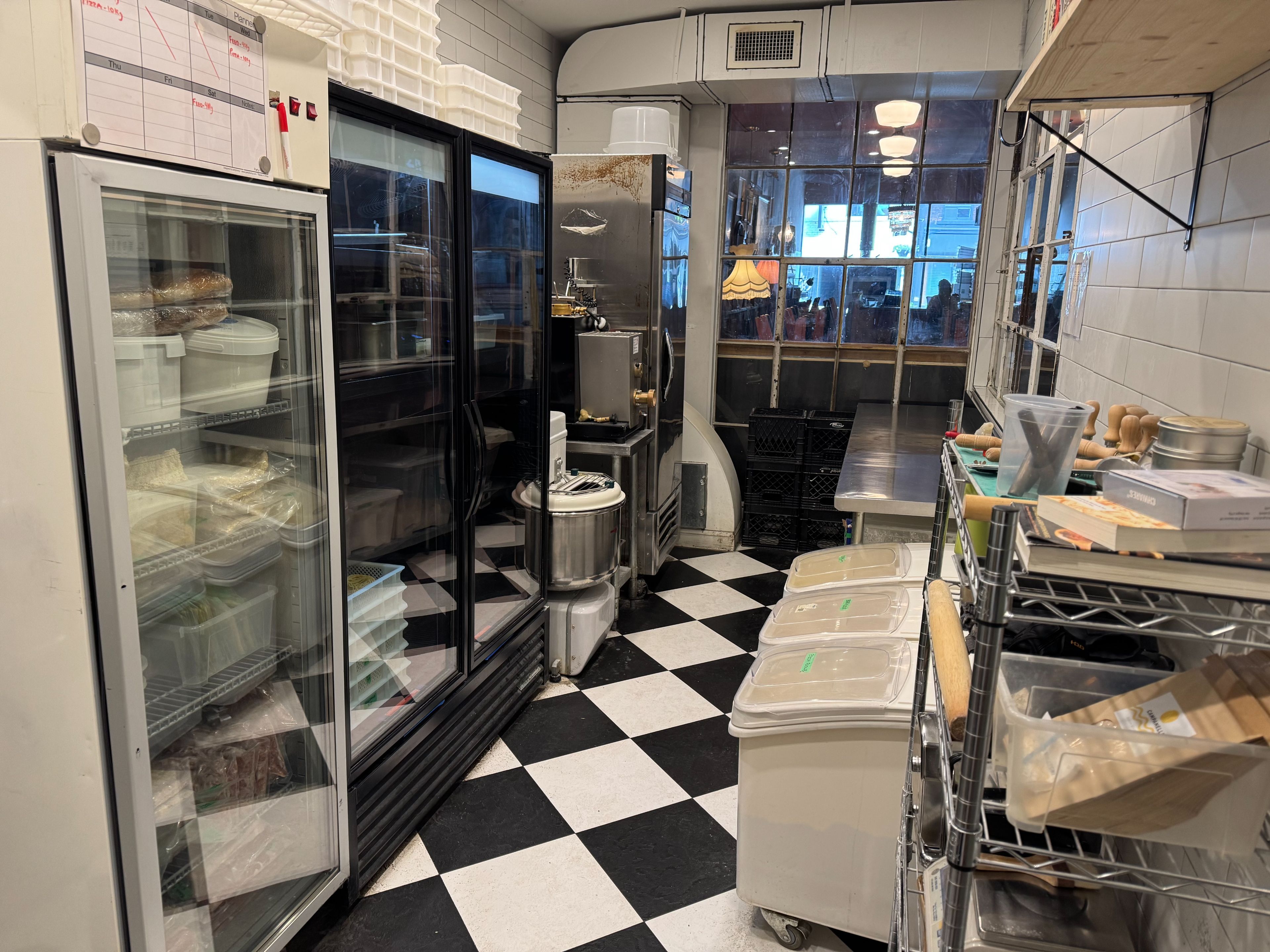 • Large commercial kitchen with plenty of prep space and basement storage.
