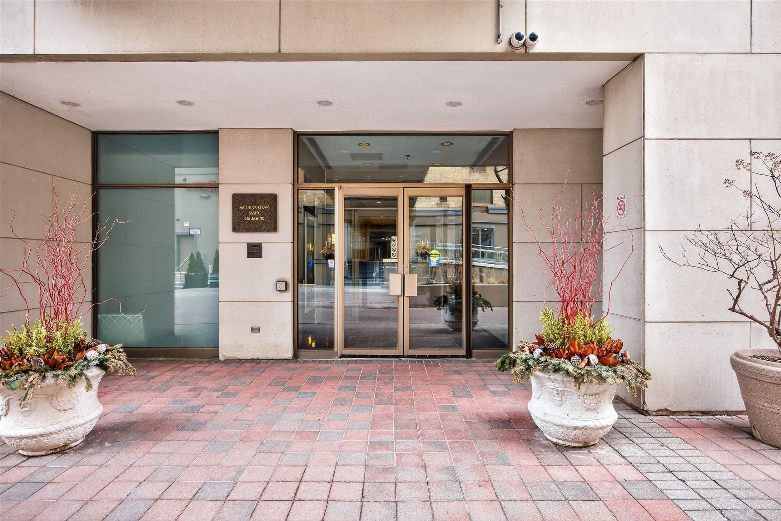 "welcome to the upper penthouse in the prestigious metropolitan essex building at 298 jarvisstreet, toronto! This stunning corner unit boasts a perfectly designed split-bedroom floor plan featuring 2 bedrooms plus a den, delivering both luxury and functionality. Unique to this exclusive suite are soaring 9-foot smooth ceilings, not one but two private walkout terraces, and two beautifully maintained functional wood-burning fireplaces providing both charm and warmth. The den is a showstopper with its 15-foot glass ceilings, creating a glorious greenhouse-inspired feature, bathed in natural light. Modern upgrades are found throughout the home, including pot lights, contemporary finishes, and meticulous attention to detail. Enjoy the spacious layout and flow designed for both entertaining and personal retreat. This is a rare opportunity to experience upscale living in the heart of toronto, a perfect blend of luxury, natural light, and thoughtful design. Don't miss out on this unique offering in a coveted address!"maintenance fees cover utilities.