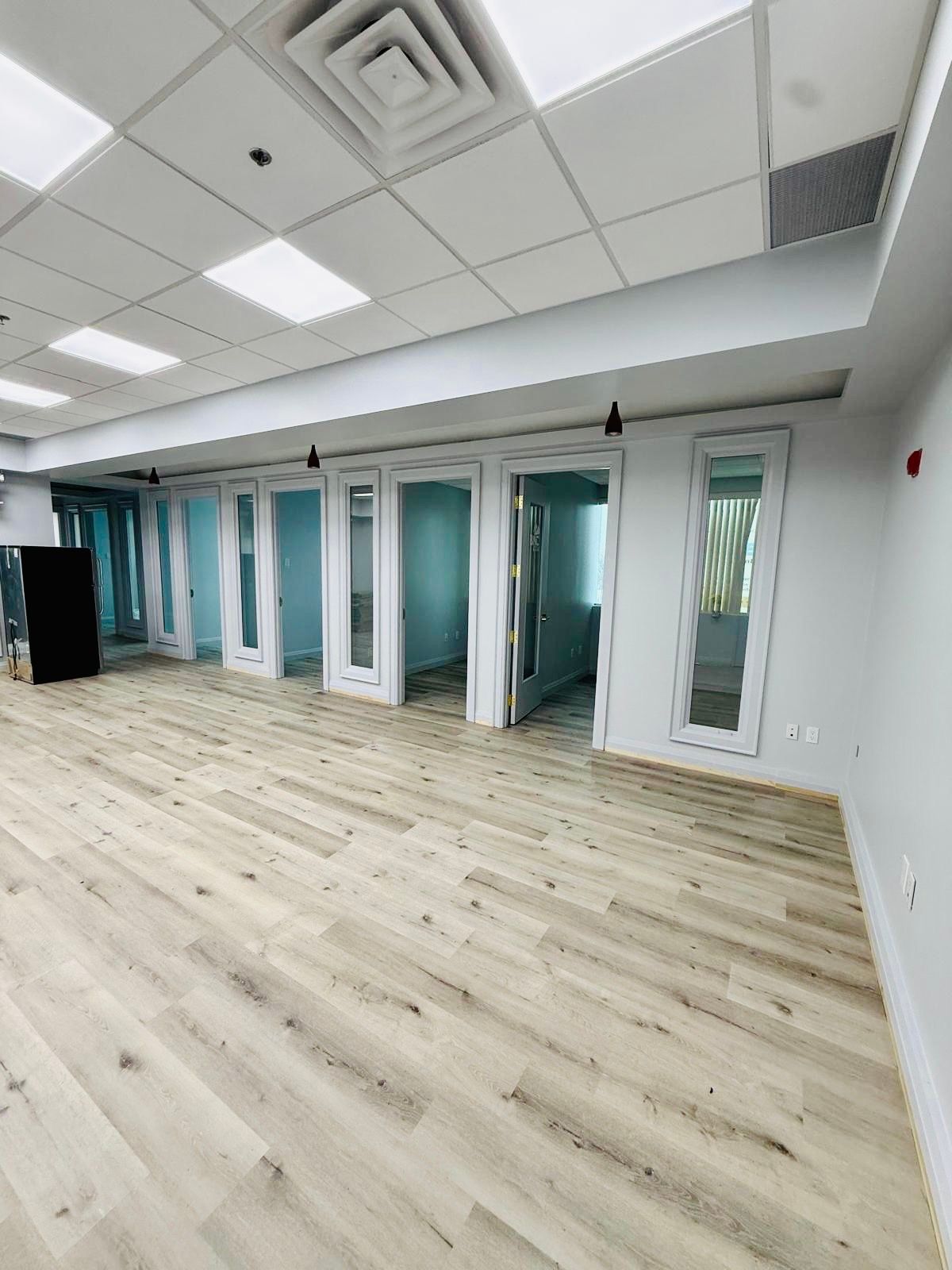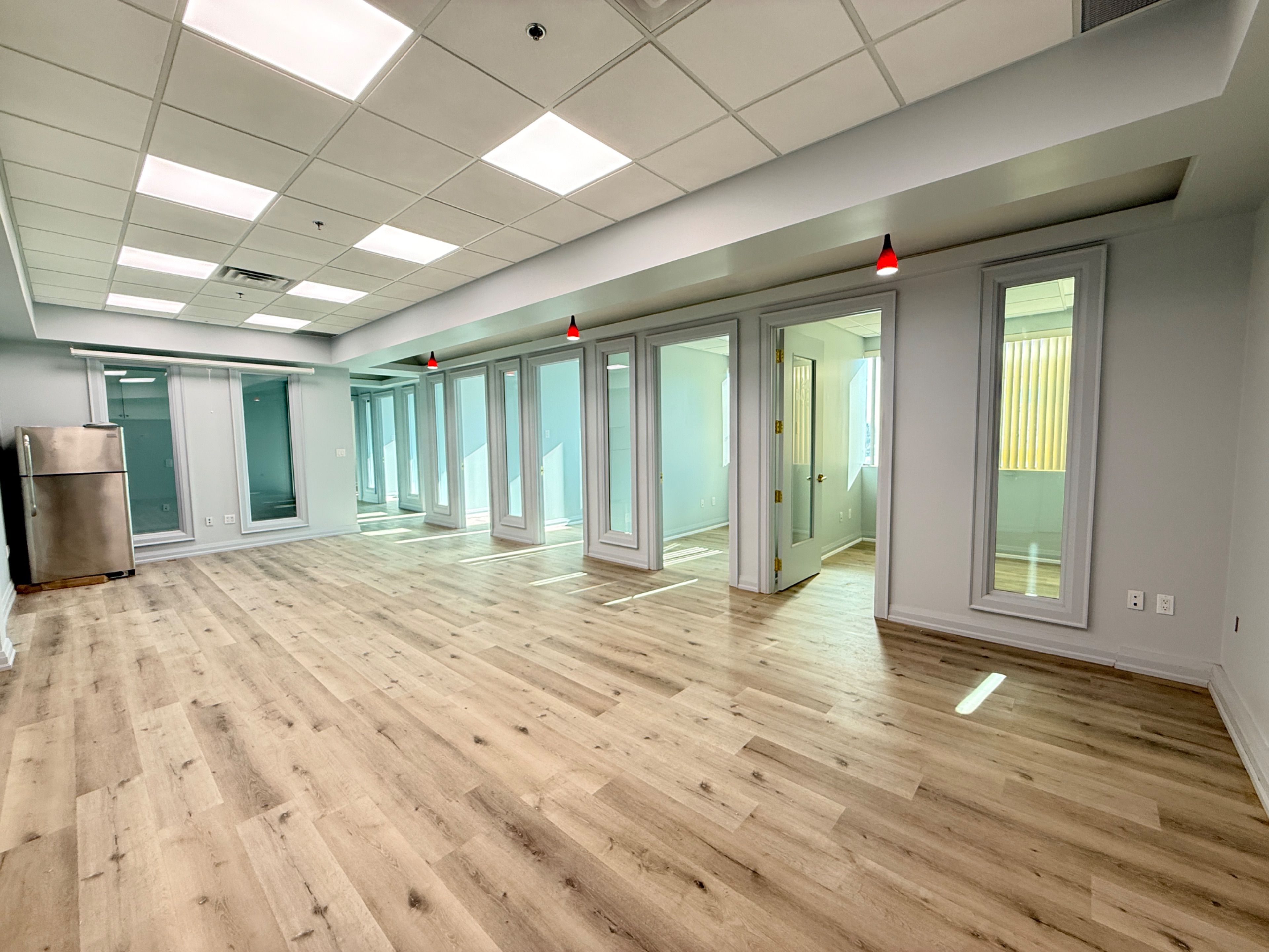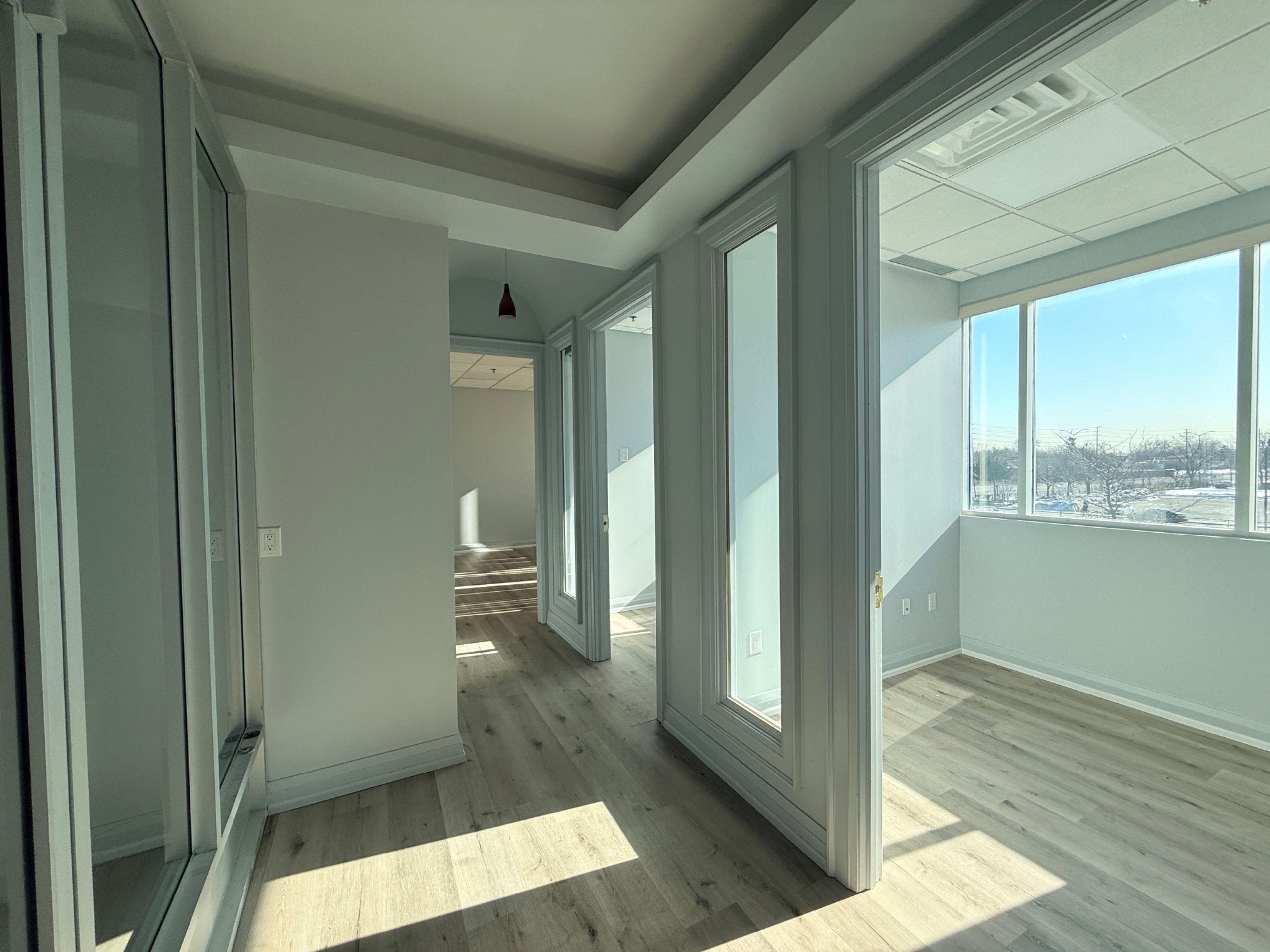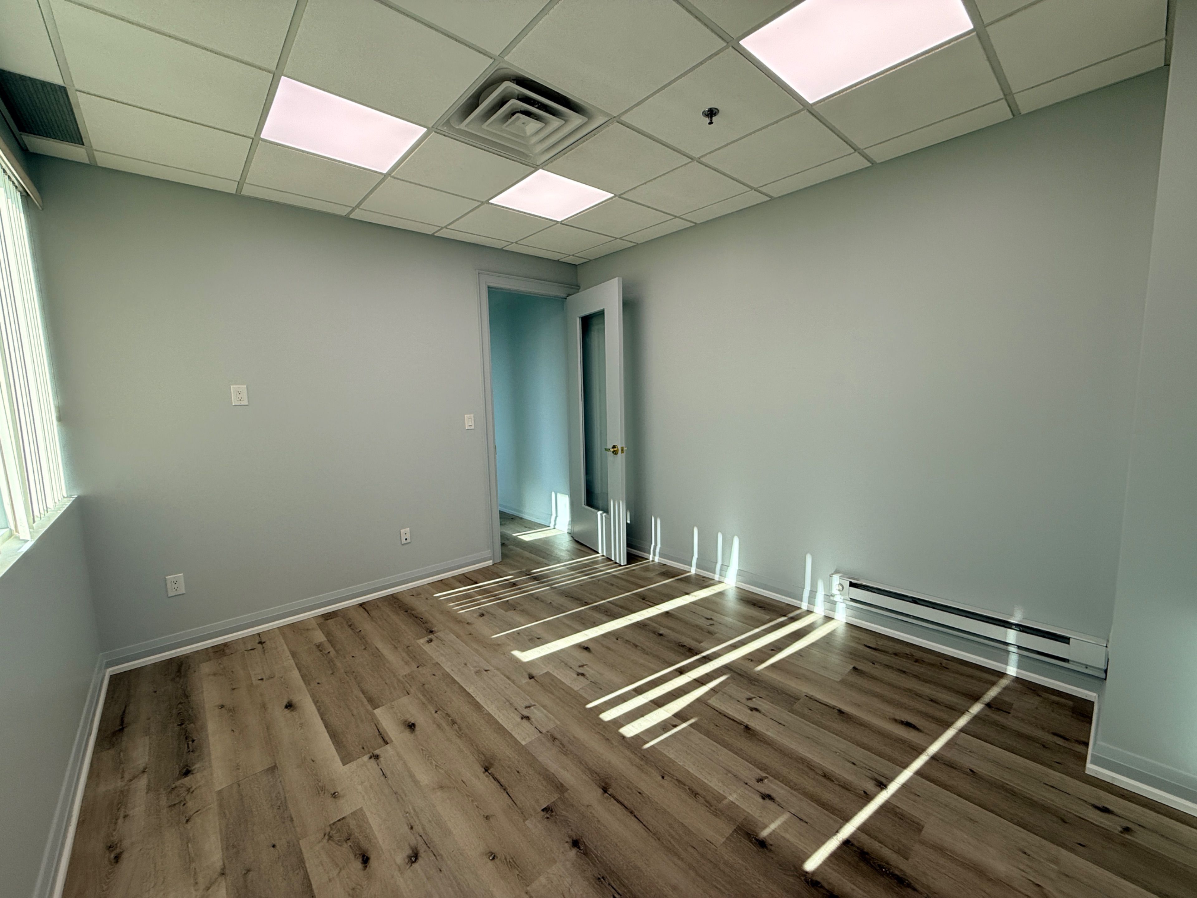 • Professionally finished office suite with fresh paint and modern lighting.