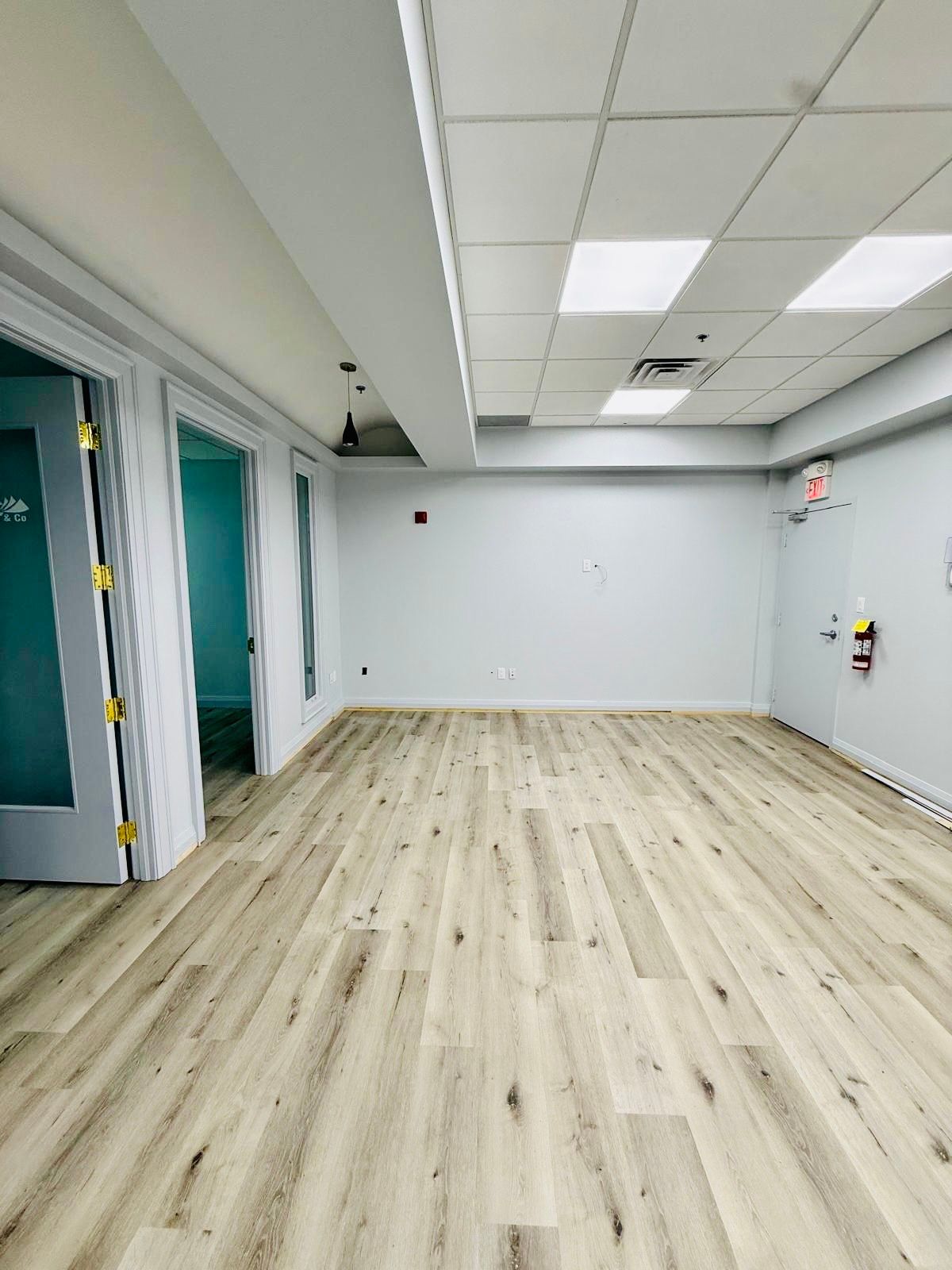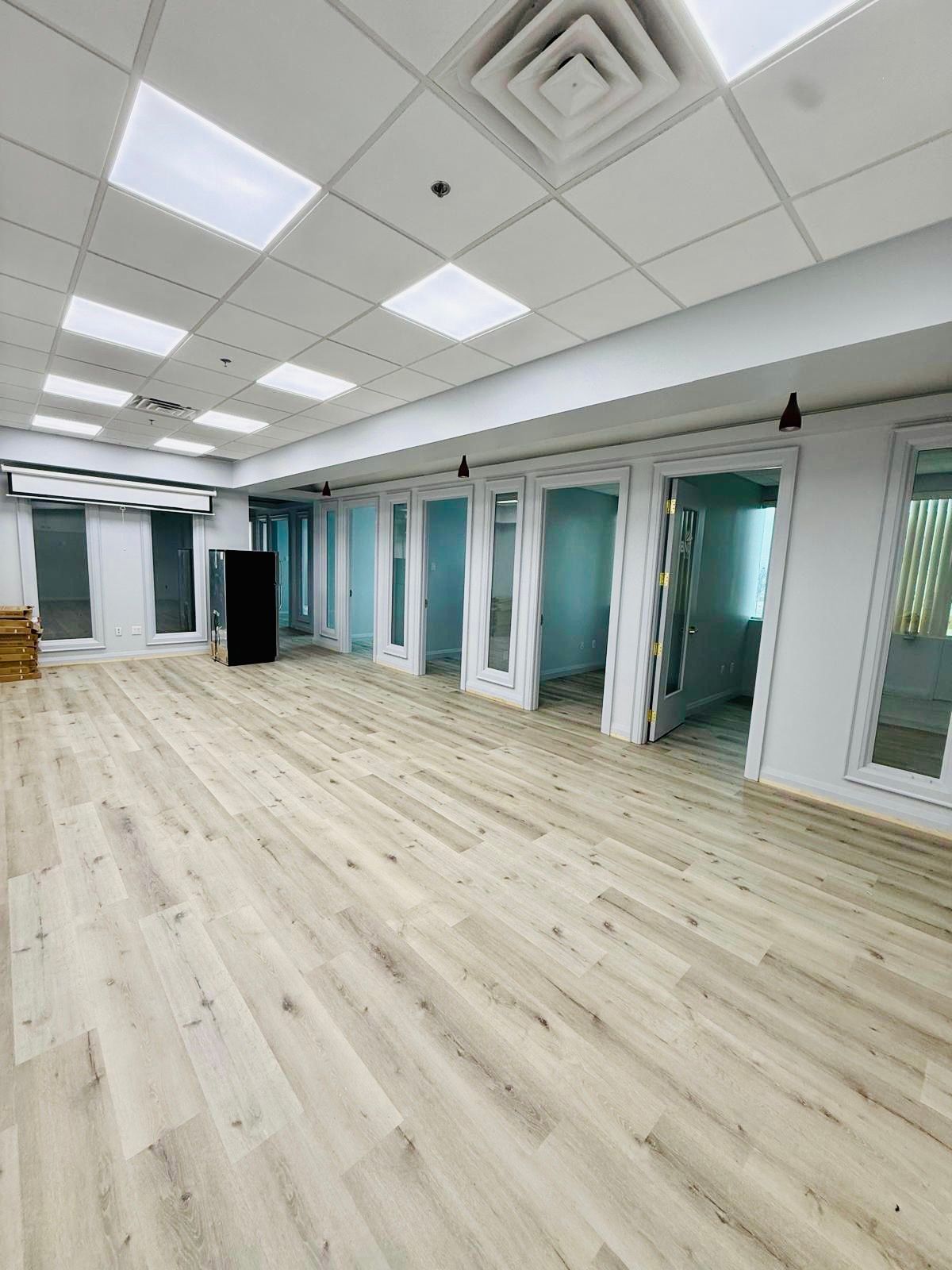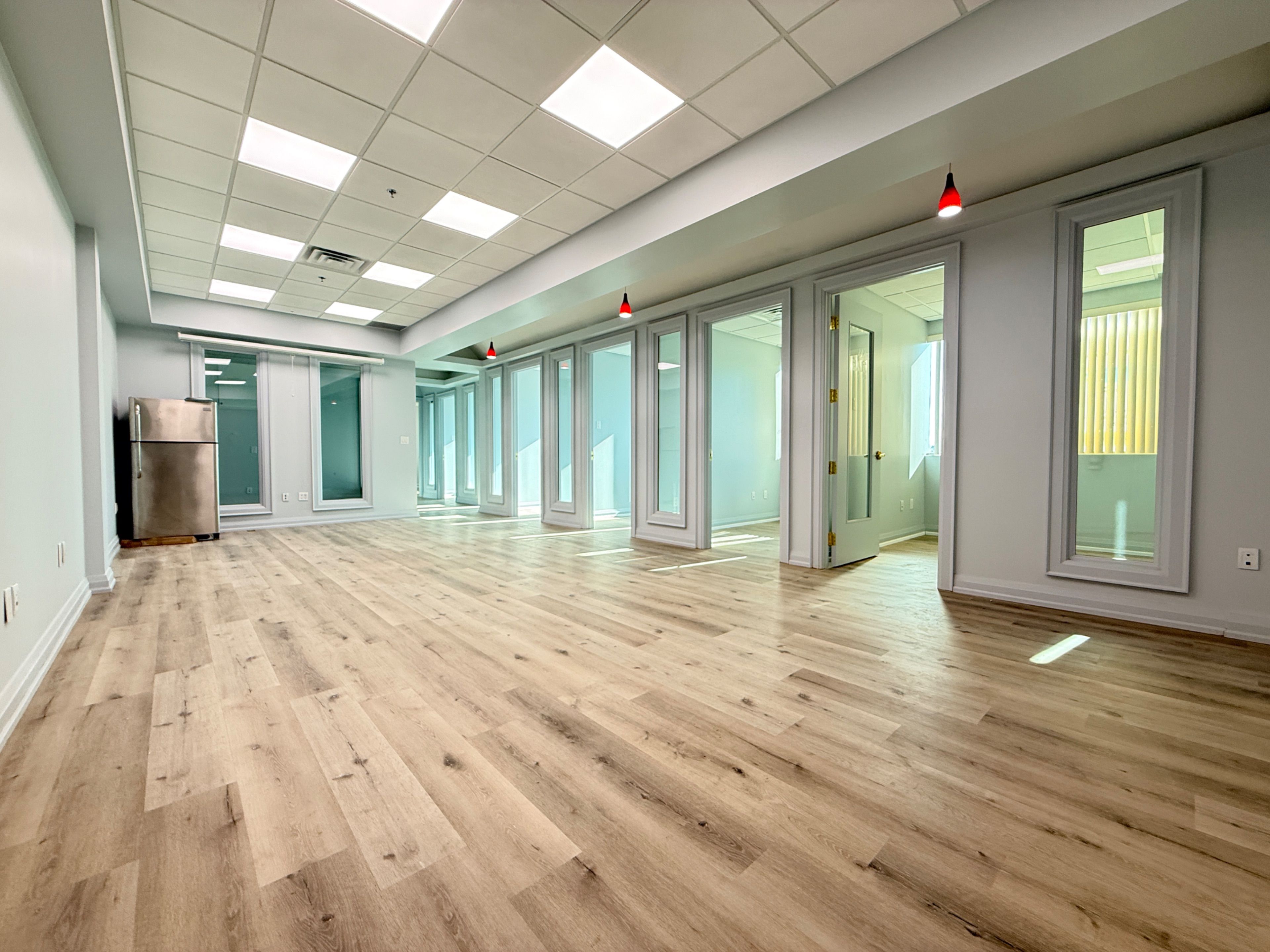 • Professionally finished office suite with fresh paint and modern lighting.