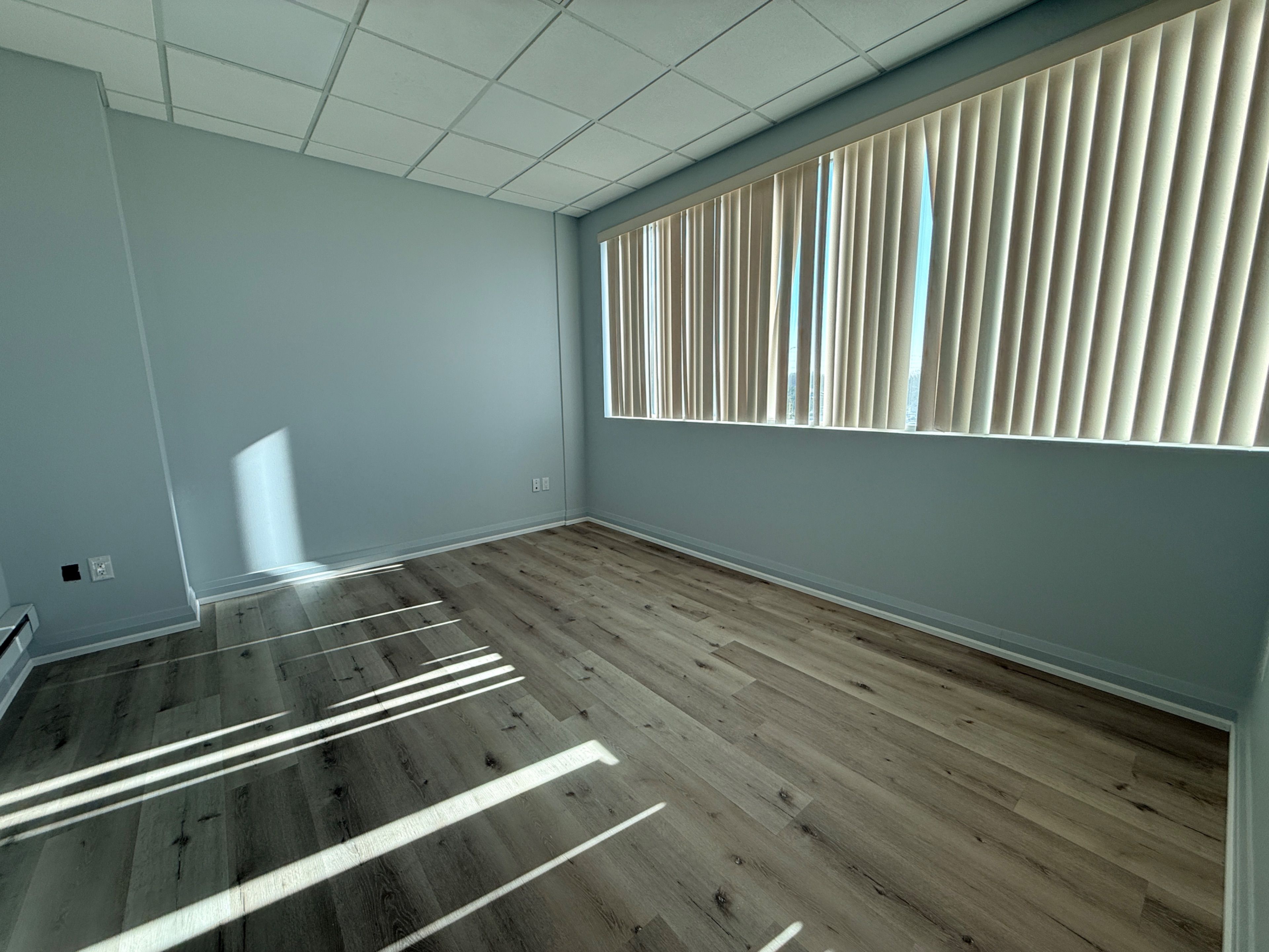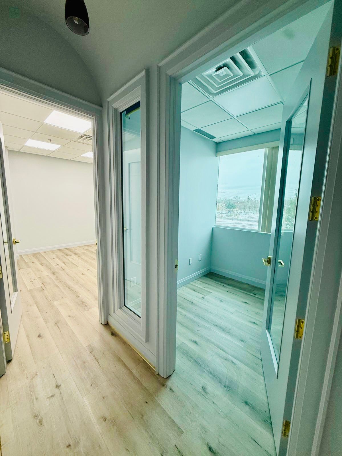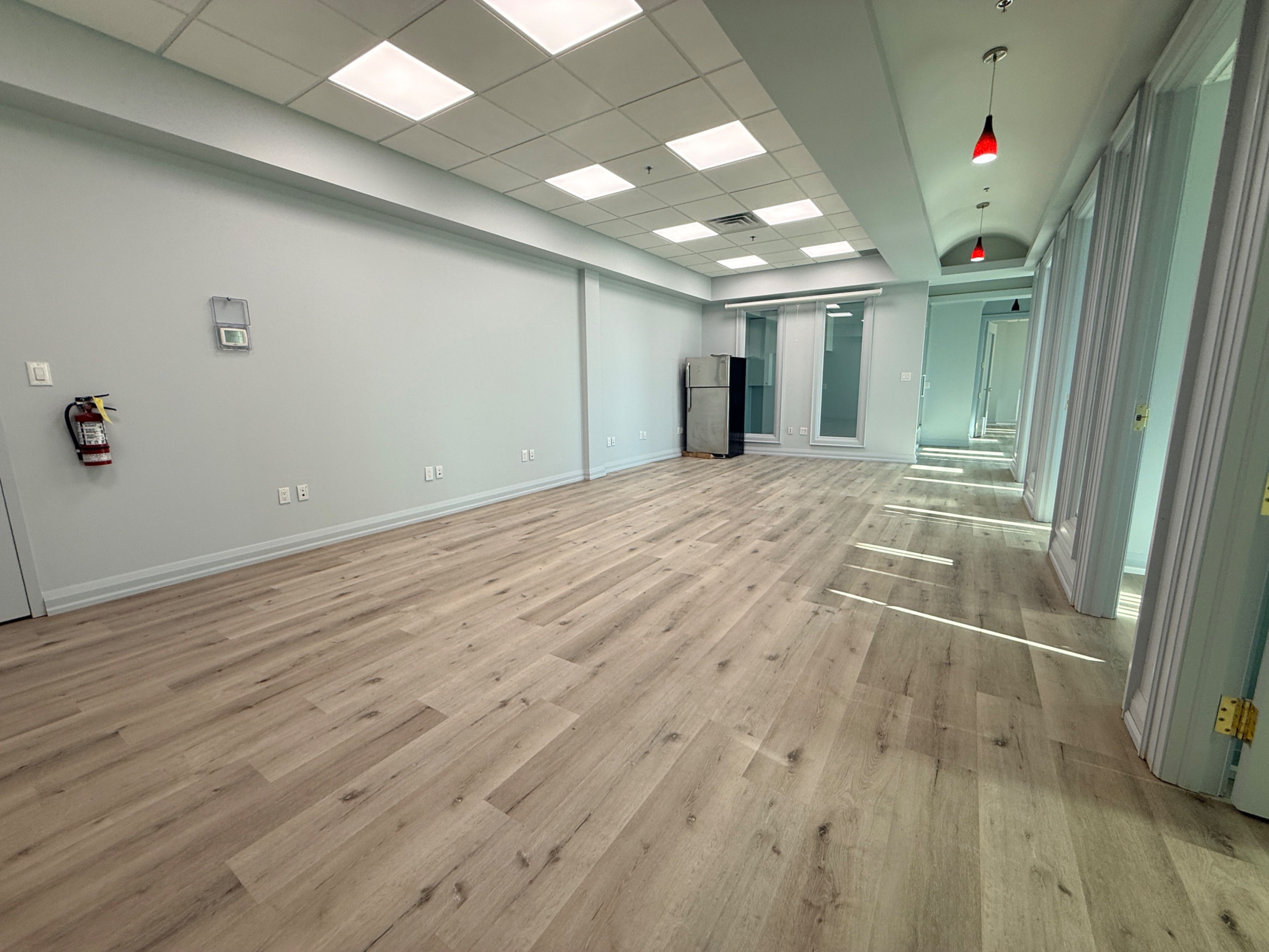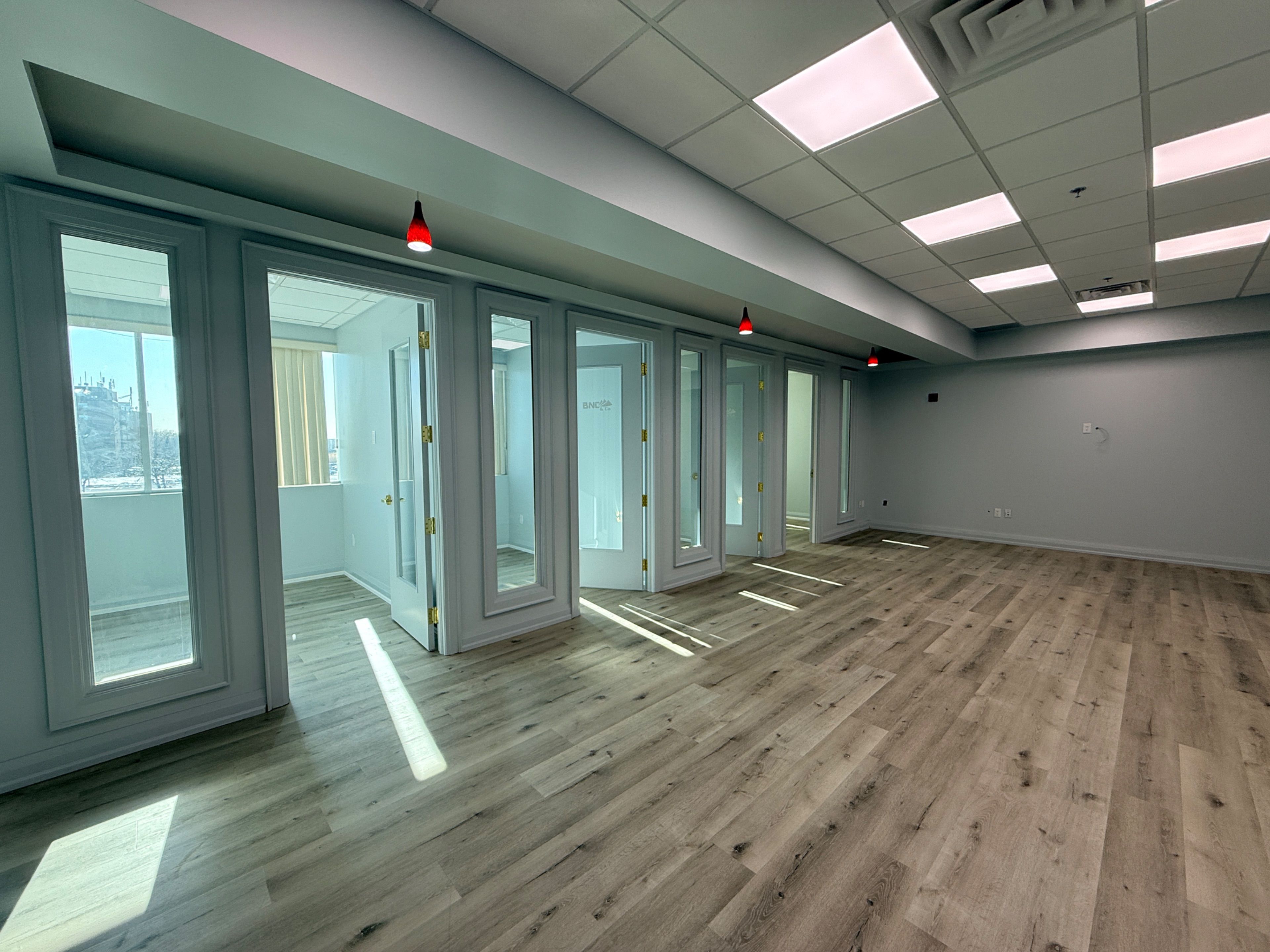 • Professionally finished office suite with fresh paint and modern lighting.