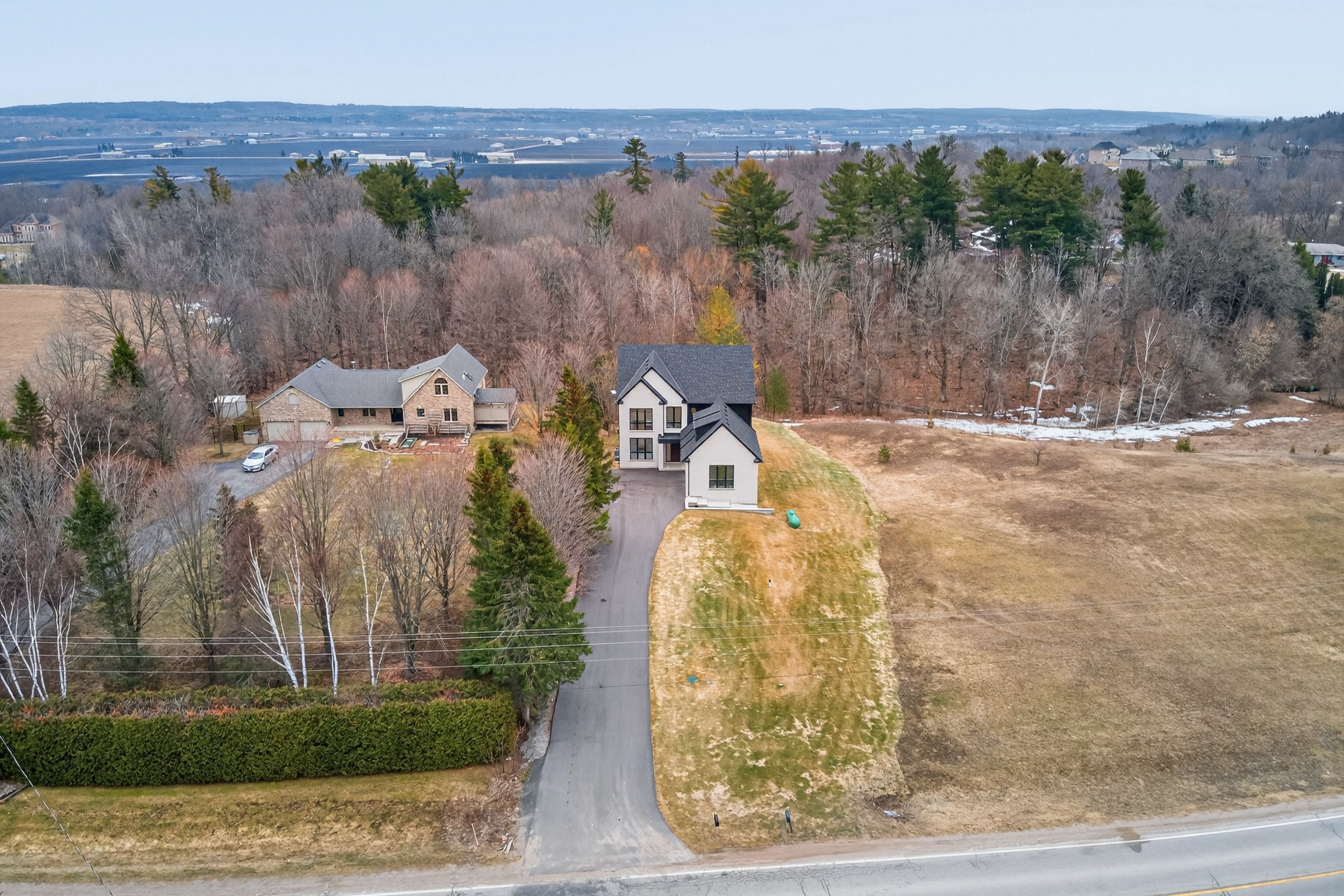 A rare opportunity to own a truly exceptional new custom-built home designed with multi-generational living in mind, blending thoughtful design, luxury finishes, and incredible functionality. From the moment you enter, you're welcomed by a bright, open-to-above cathedral foyer that makes a striking first impression. A stunning open riser staircase with 2 1/4" solid oak steps and sleek glass railings adds a modern architectural statement to the space. This home features a spacious open-concept layout with 7 generously sized bedrooms and 7 beautifully designed bathrooms, including two primary suites, one conveniently located on the main floor &another upstairs perfect for multi-generational living or added privacy and flexibility. Expansive windows throughout flood the home with natural light, enhancing the modern finishes and airy feel in every room. The chef's kitchen is in the heart of the home, complete with top-of-the-line café appliances, custom cabinetry, and an oversized island that comfortably seats 12, perfect for hosting and gathering. Exceptional storage throughout the kitchen ensures everything has its place, combining style with everyday practicality. Functionality continues with 2 laundry rooms, one on the second floor and another in the basement adding convenience for multi-level living. The fully finished walk-out basement, with a rough-in for a future kitchen, provides the perfect opportunity for separate living space or in-law suite. This level also includes a radiant floor heating rough-in ,offering the potential for added comfort and luxury. A unique suspended garage design creates additional soundproof room below, ideal for a private theatre, studio, or retreat. Additional features include rough-ins for speakers and cameras, offering both convenience and future-ready technology. Just minutes to the highway &town, this home delivers the perfect balance of nature & convenience & a layout designed to accommodate modern family living at every stage.