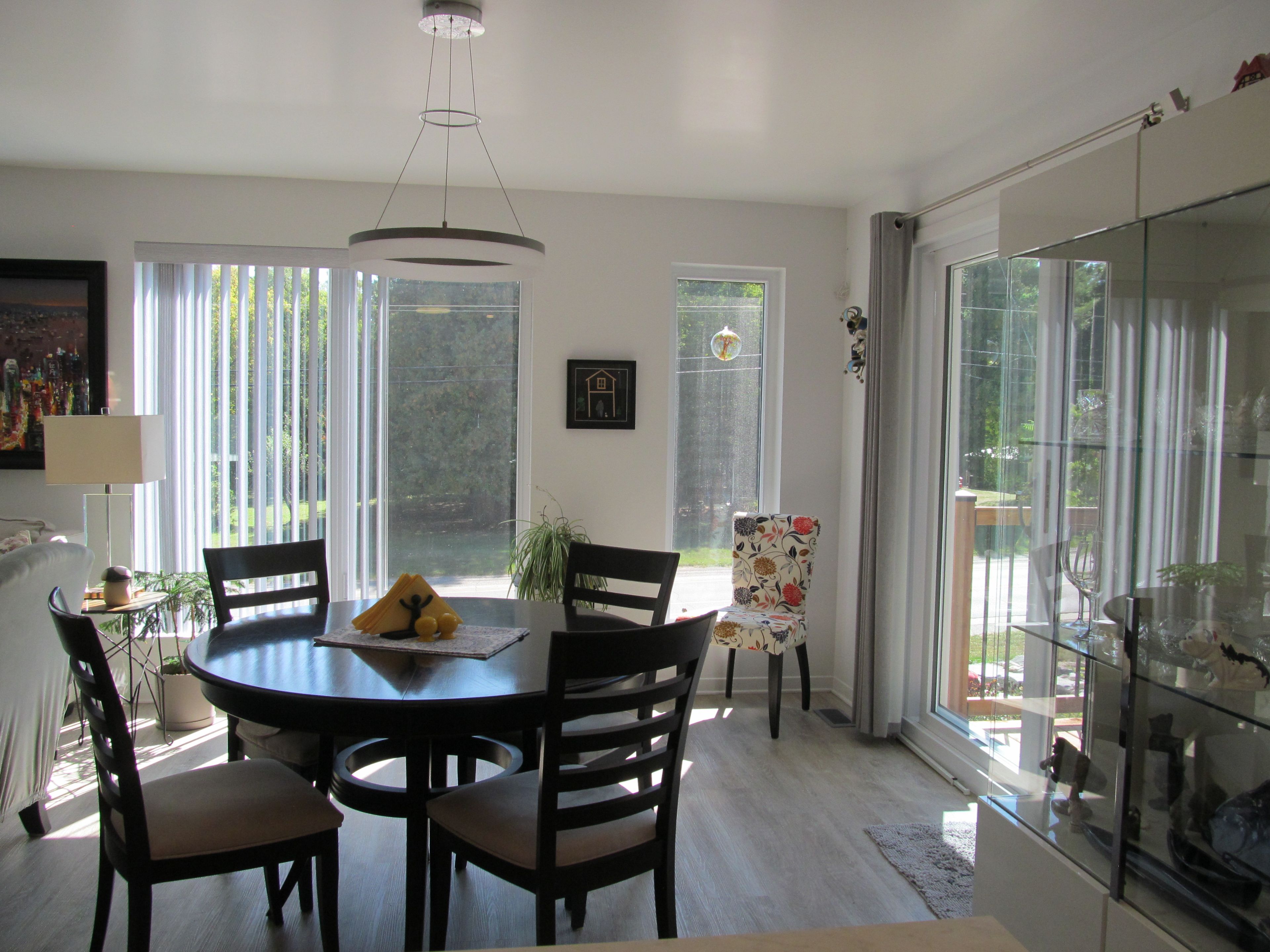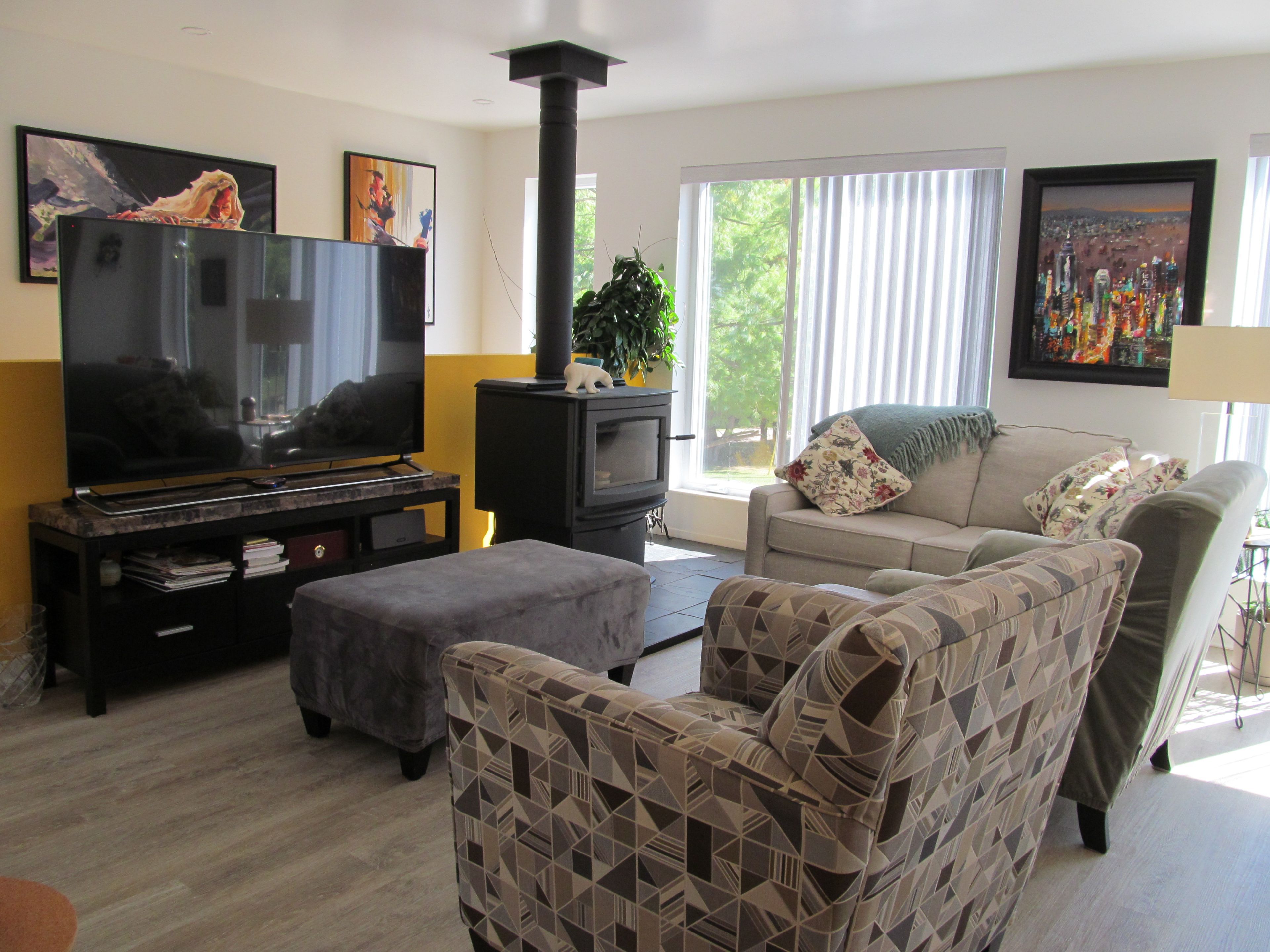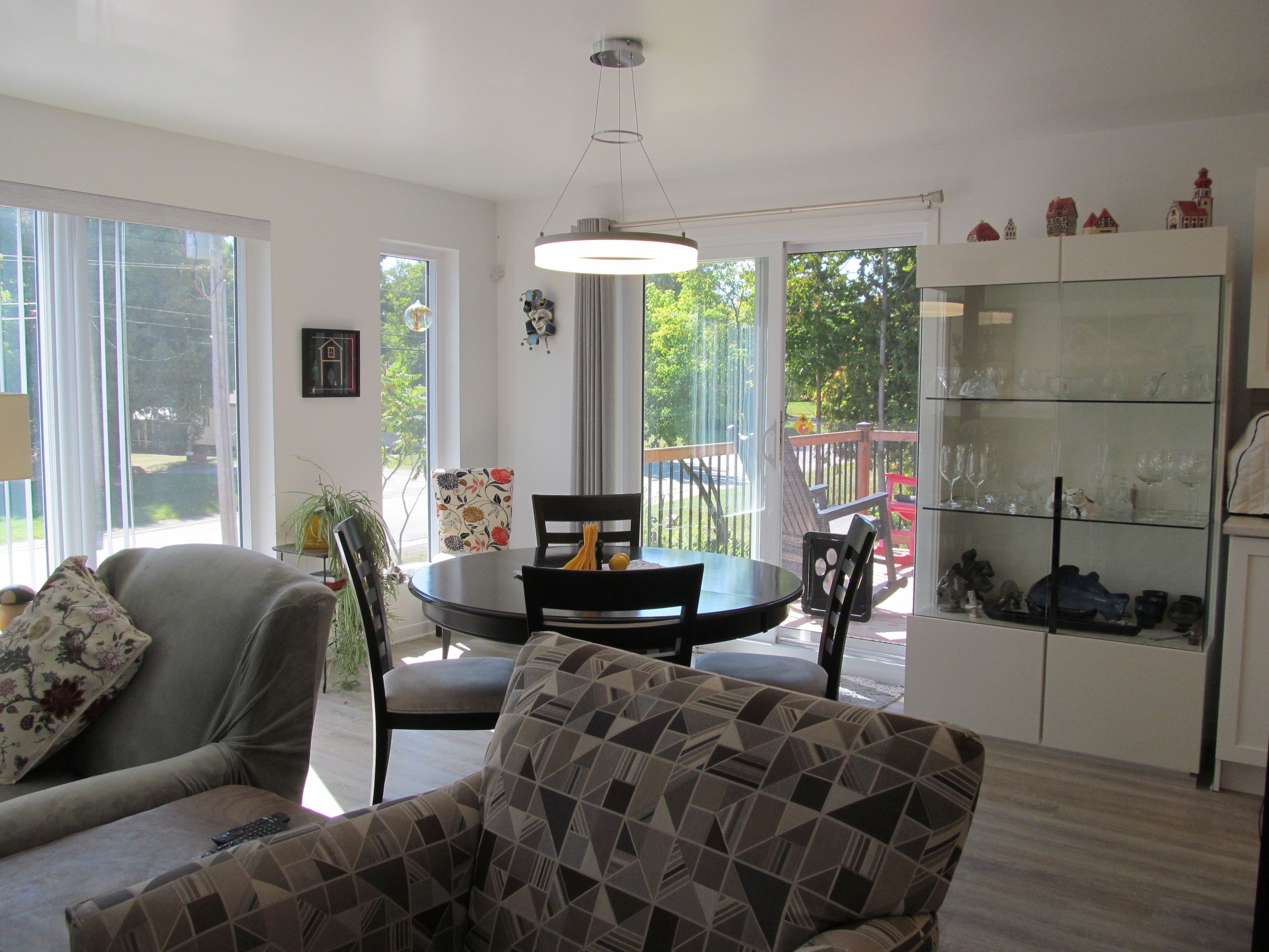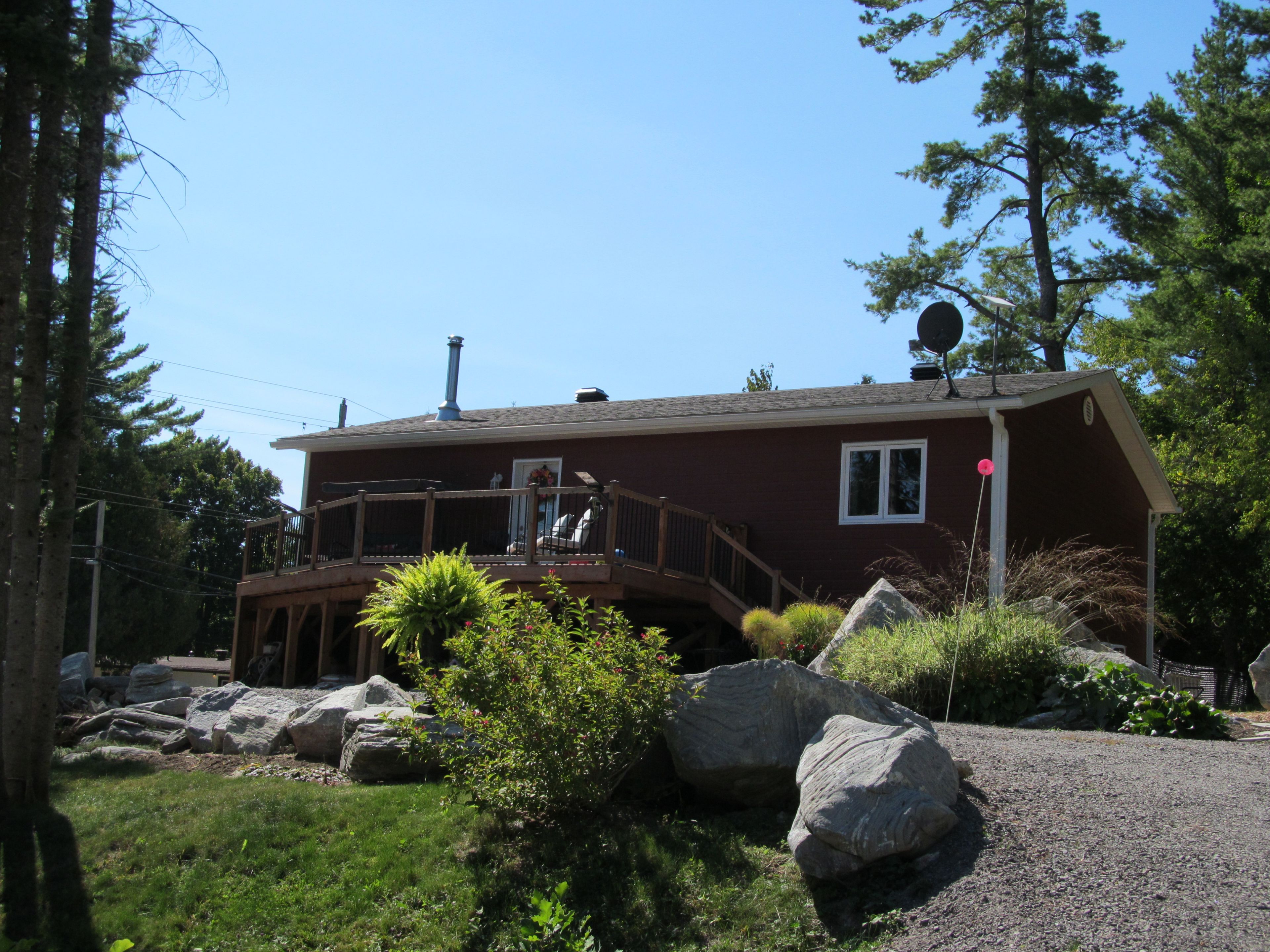 Unique property set in the charming village of white lake! This immaculate two year old home is surrounded by thoughtfully landscaped gardens with two decks on each side to capture both the morning sun and afternoon shade. Welcome to this open concept design home drenched in natural light. Two bedrooms, spacious bath with double sink vanity, bath tub, large storage closet plus your laundry facilities on main floor. The bathroom, for your convenience when entering the house at the front foyer, has a pocket door entry together with an entry from the main hallway. Enjoy winter warm winter evenings by the wood burning stove in the living room. Entertain family and friends sitting around the dining room table or or on the oversized side upper deck accessed via patio doors while watching the family kids and pets can play in the fenced yard. The showcase kitchen features frigidare gallery stainless steel refrigerator, propane stove, dishwasher, double sinks and handy island. Storage is made simple with a separate pantry/storage room next to the kitchen. Decorated through-out in cheerful, complementary colours, laminate floors, no carpets and smoke free. The ground level is presently unfinished so use your imagination to design rec/exercise area or establish an at home business venture. This area has radiant floor heating, 10 foot ceilings, roughed-in for a future bathroom, utility sink, furnace, air purifier, water softener and has patio doors to the front stone patio. Professionally landscaped with tastefully thought placement of gardens, rocks, patios and upper decks. Live well while enjoying the village lifestyle where you can walk to the general store, church, restaurant, spend your summer days fishing, boating and swimming on white lake minutes away. There are a myriad of local activities - golfing, ski hills, snowmobile trails, music/restaurant venues in burnstown. All this is yours and you are only 10+ minutes to arnprior and 417 highway. Don't miss out!