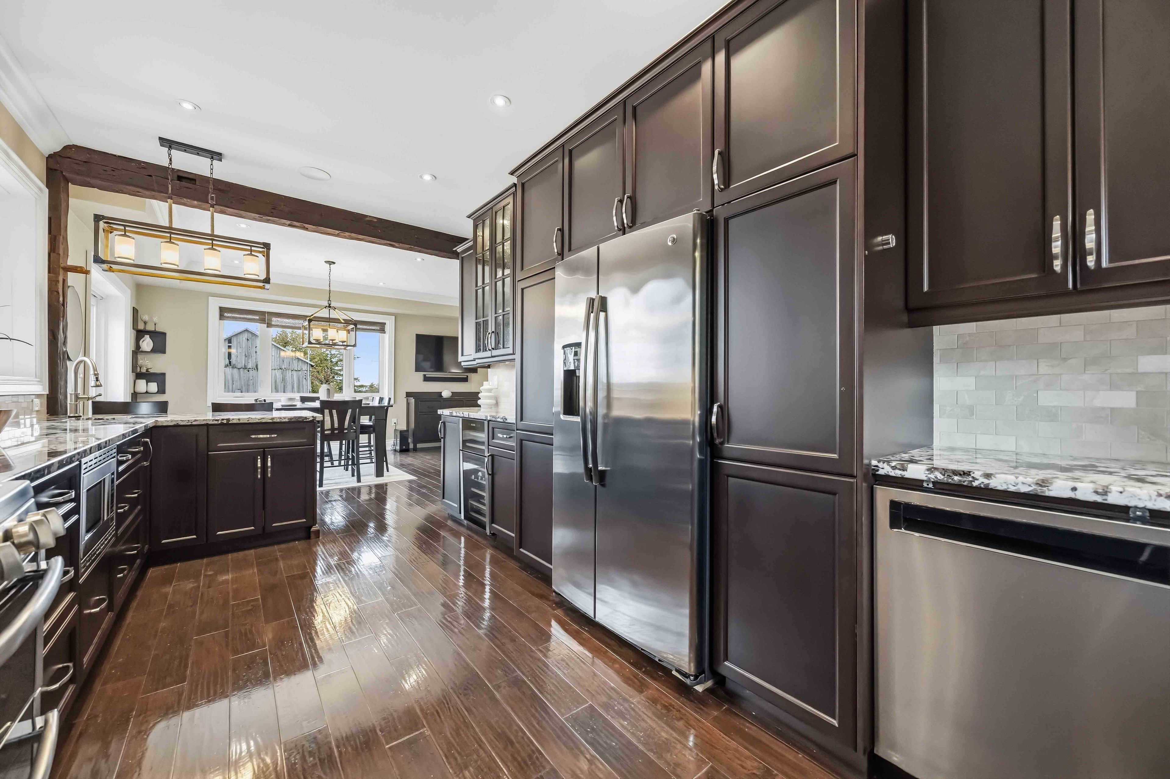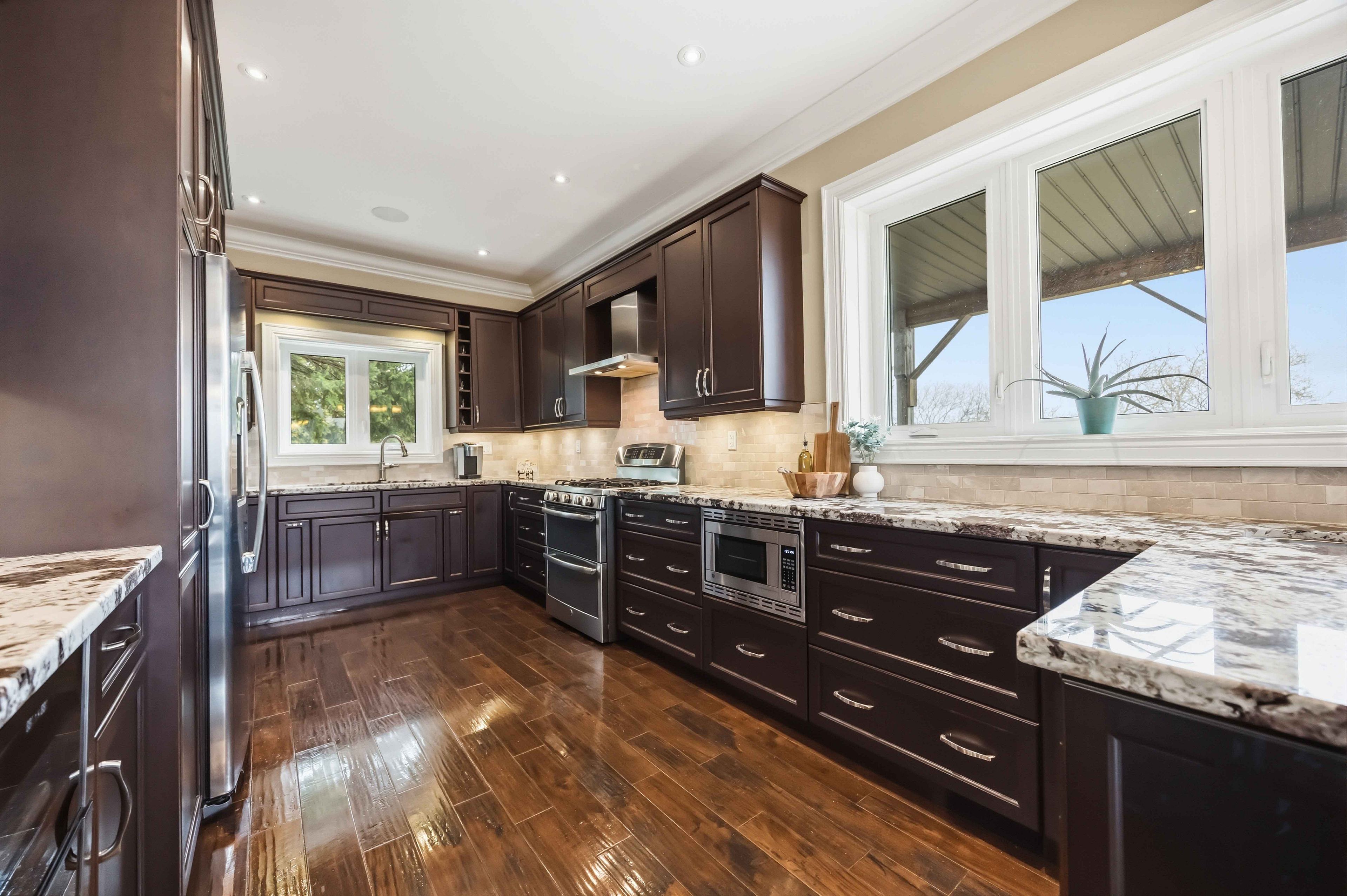 • Custom chef's kitchen with premium appliances and granite counters.