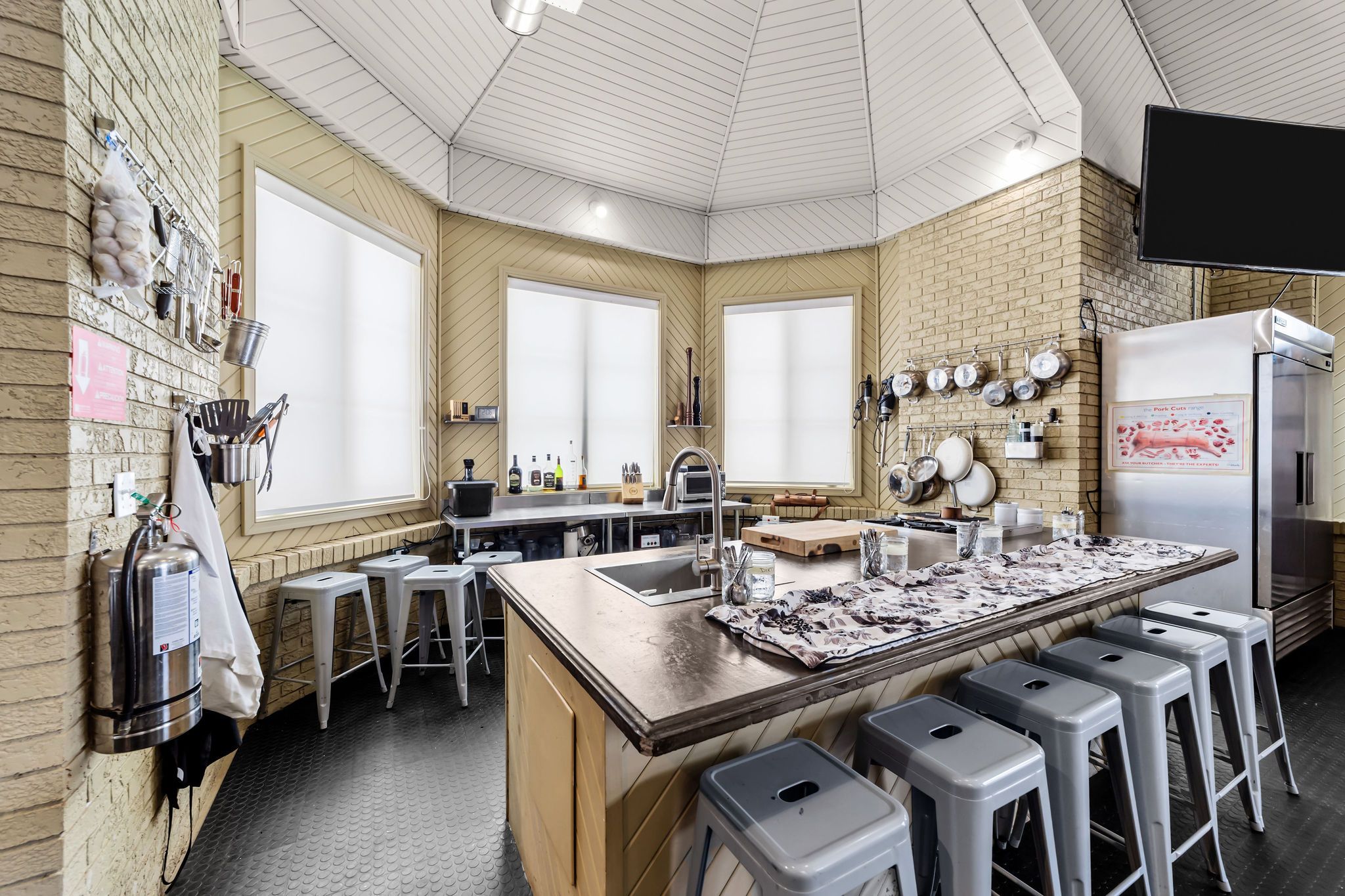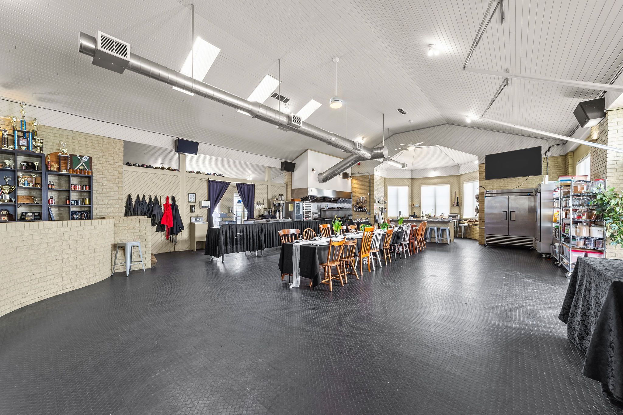 • Features 3 kitchens, including a commercial-grade culinary setup.