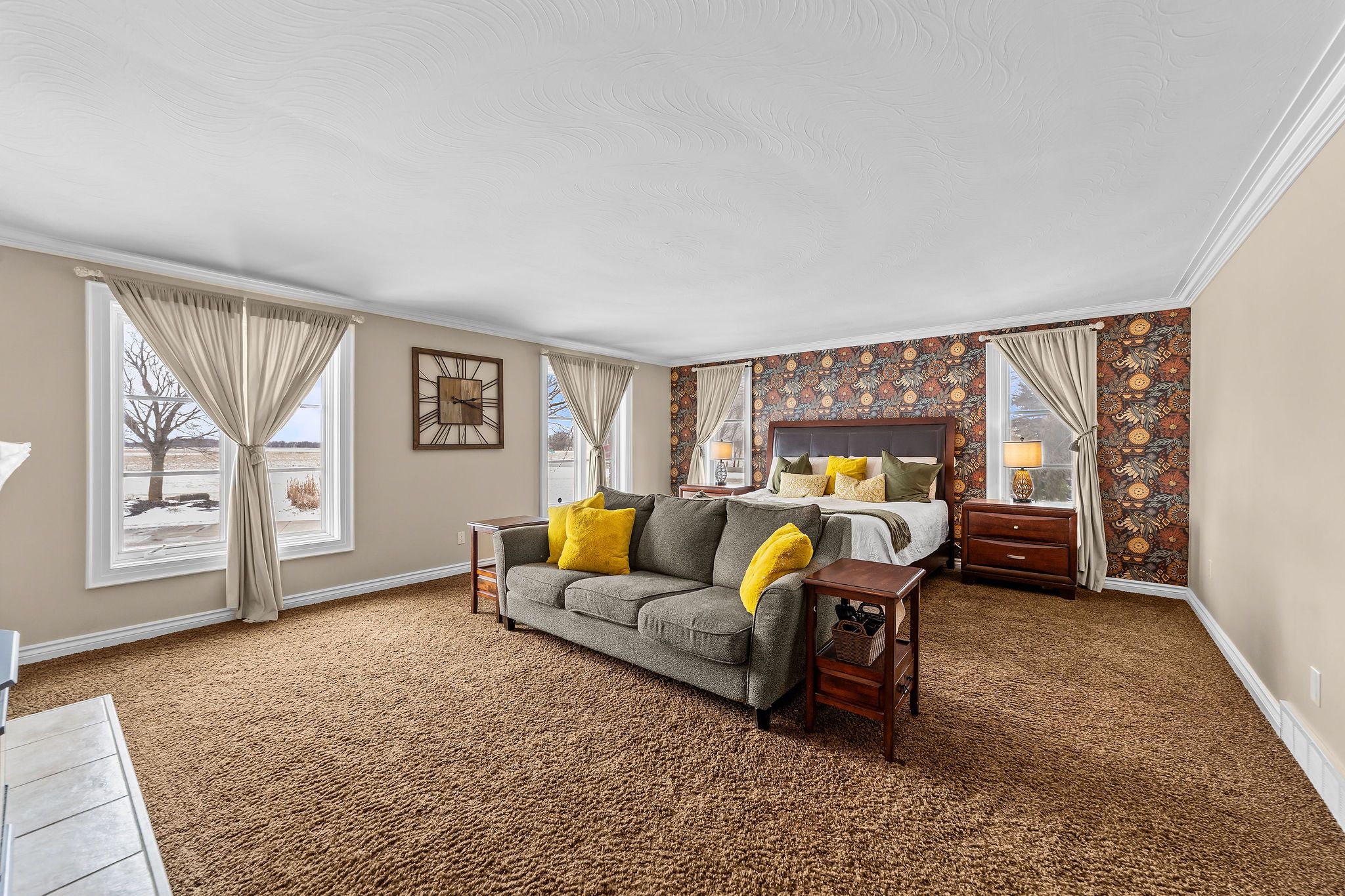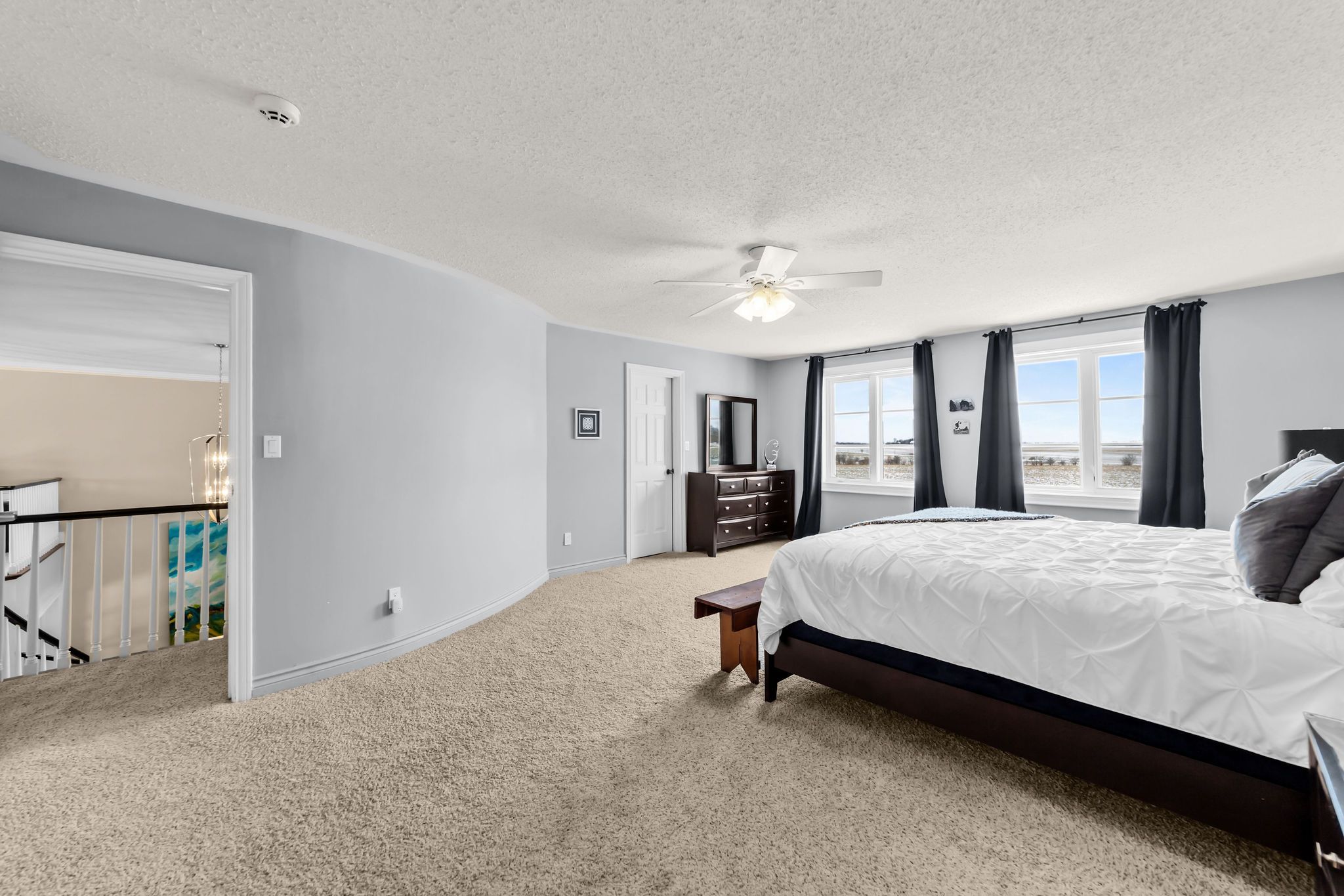 • Main-floor primary retreat with fireplace, lounge, and ensuite.