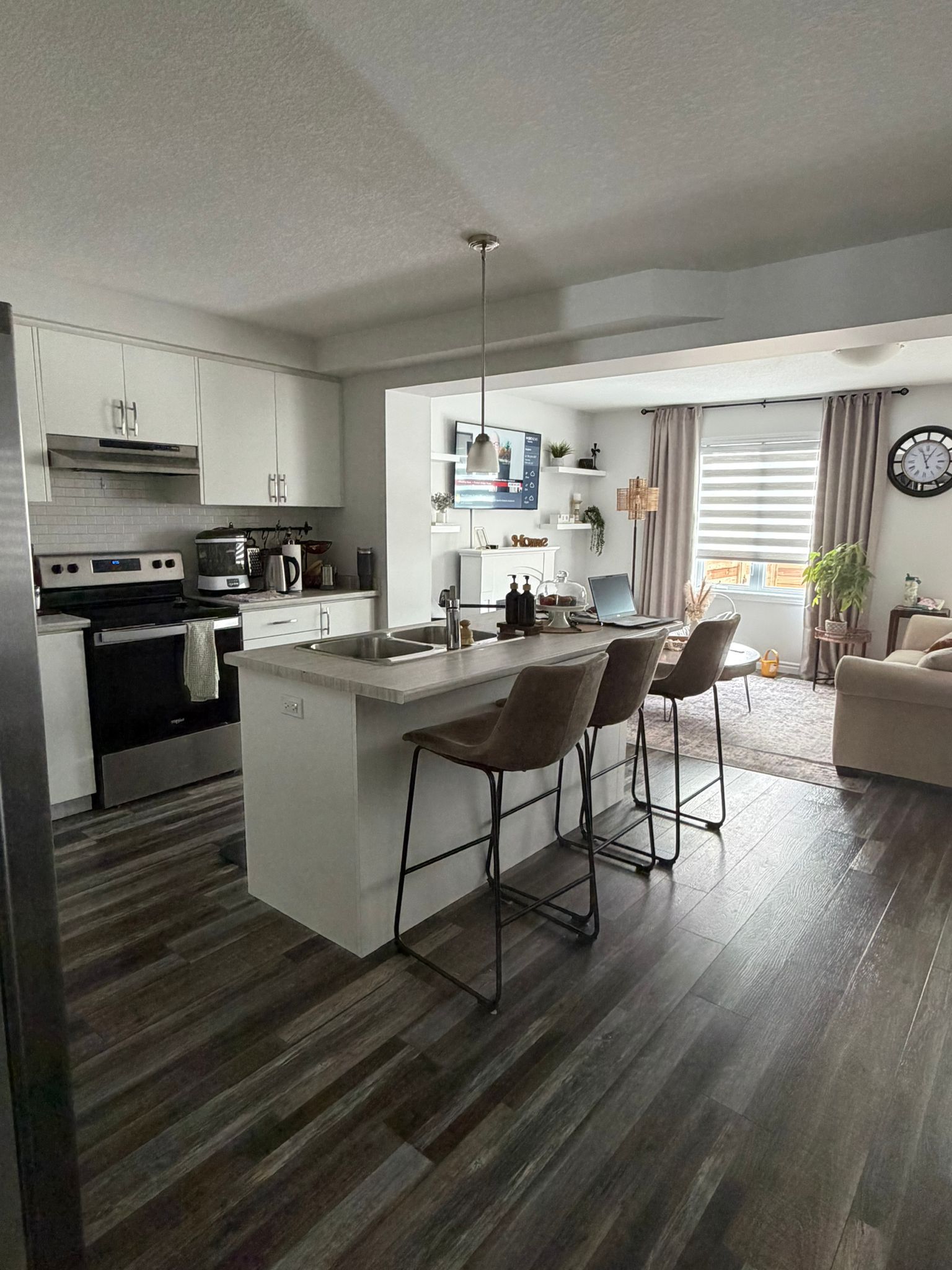 Immaculately maintained 3 bedroom, 2. 5 bathroom townhome in family-friendly community of south london. Over 1630 sq ft of living space with full basement, ensuite laundry, direct access to garage and parking for 2 vehicles. Spacious, open concept main floor layout with powder room and laminate flooring throughout. Modern kitchen with oversized breakfast bar, stainless steel appliances and upgraded cabinetry. Upper level features 3 spacious bedrooms, large closets and full laundry room. Master bedroom with 4-piece ensuite bathroom and oversized walk-in closet. Stylish window coverings and garage door opener included. Excellent location of summerside in a family-friendly community walking distance to parks and schools. Minutes to the 401, costco, walmart supercentre and all amenities.
