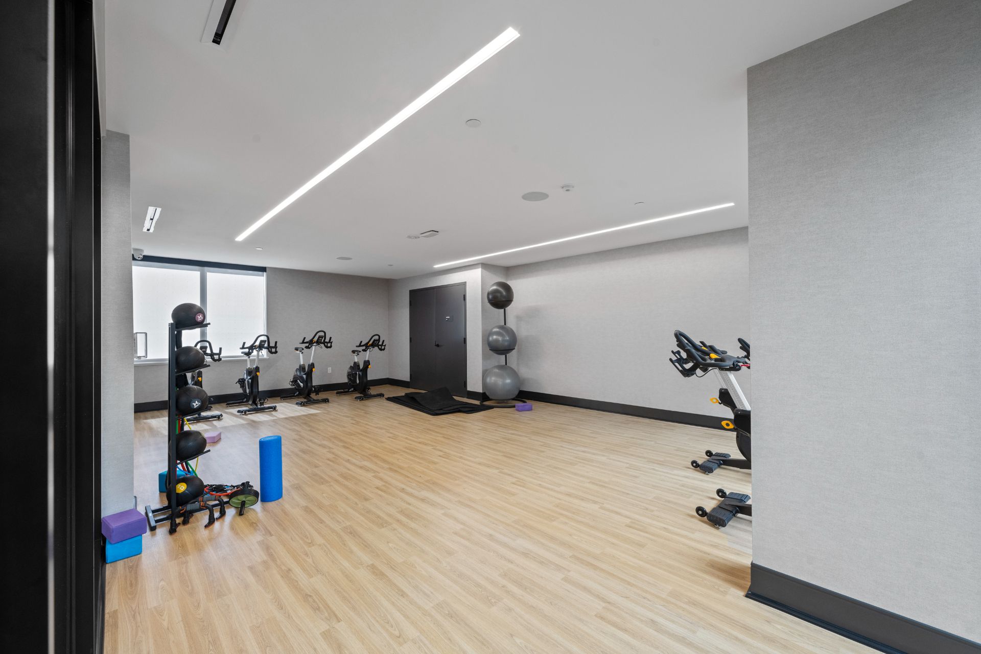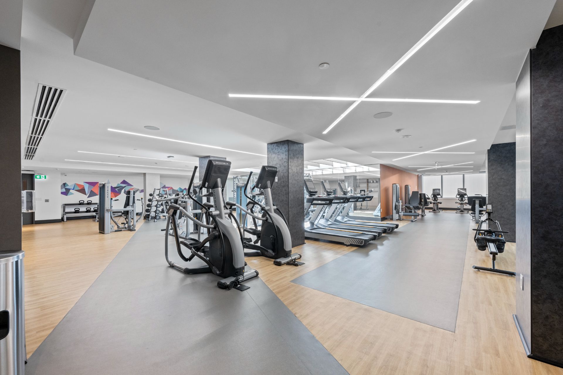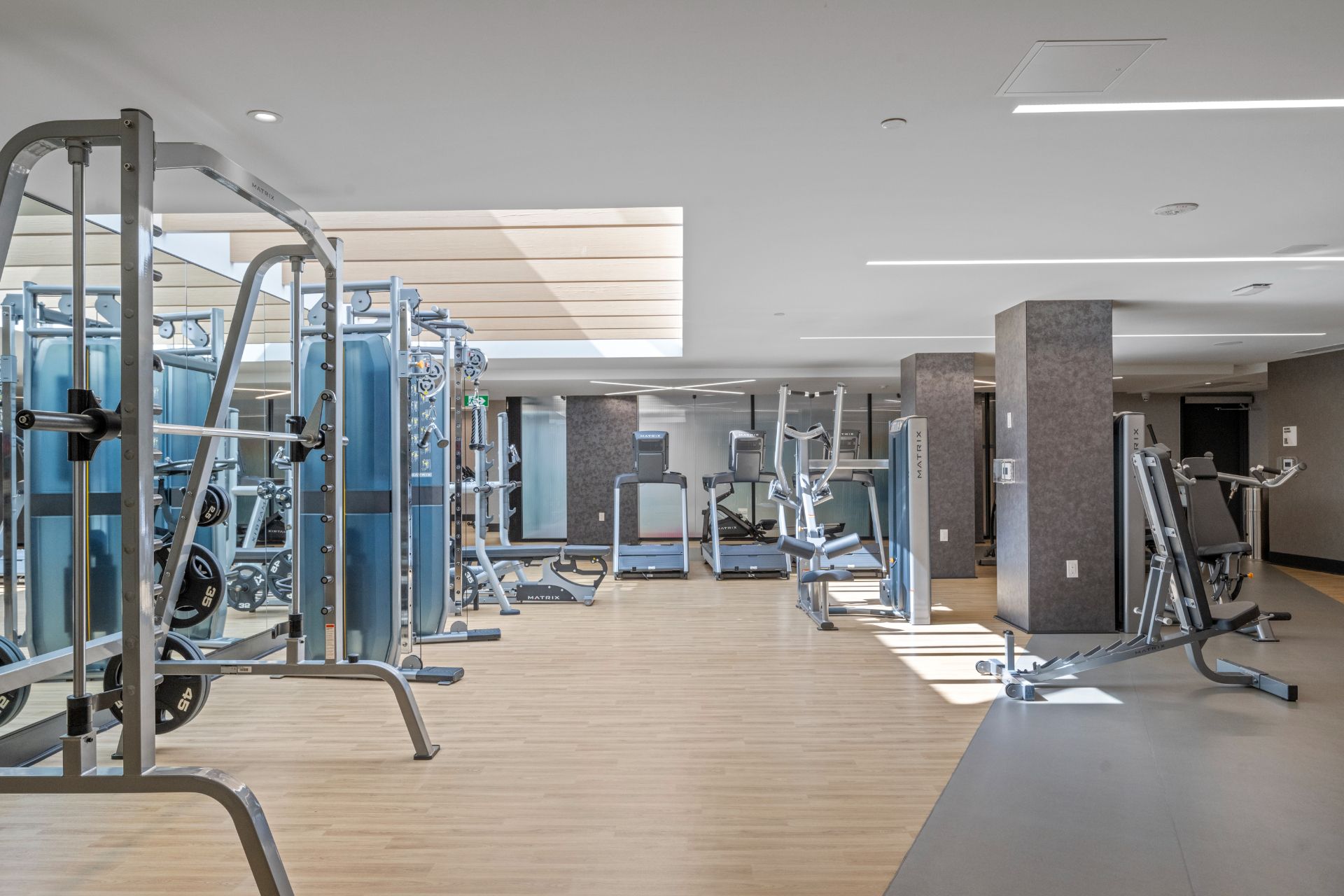 • Building amenities include fitness facilities, lounges, and co-working space.