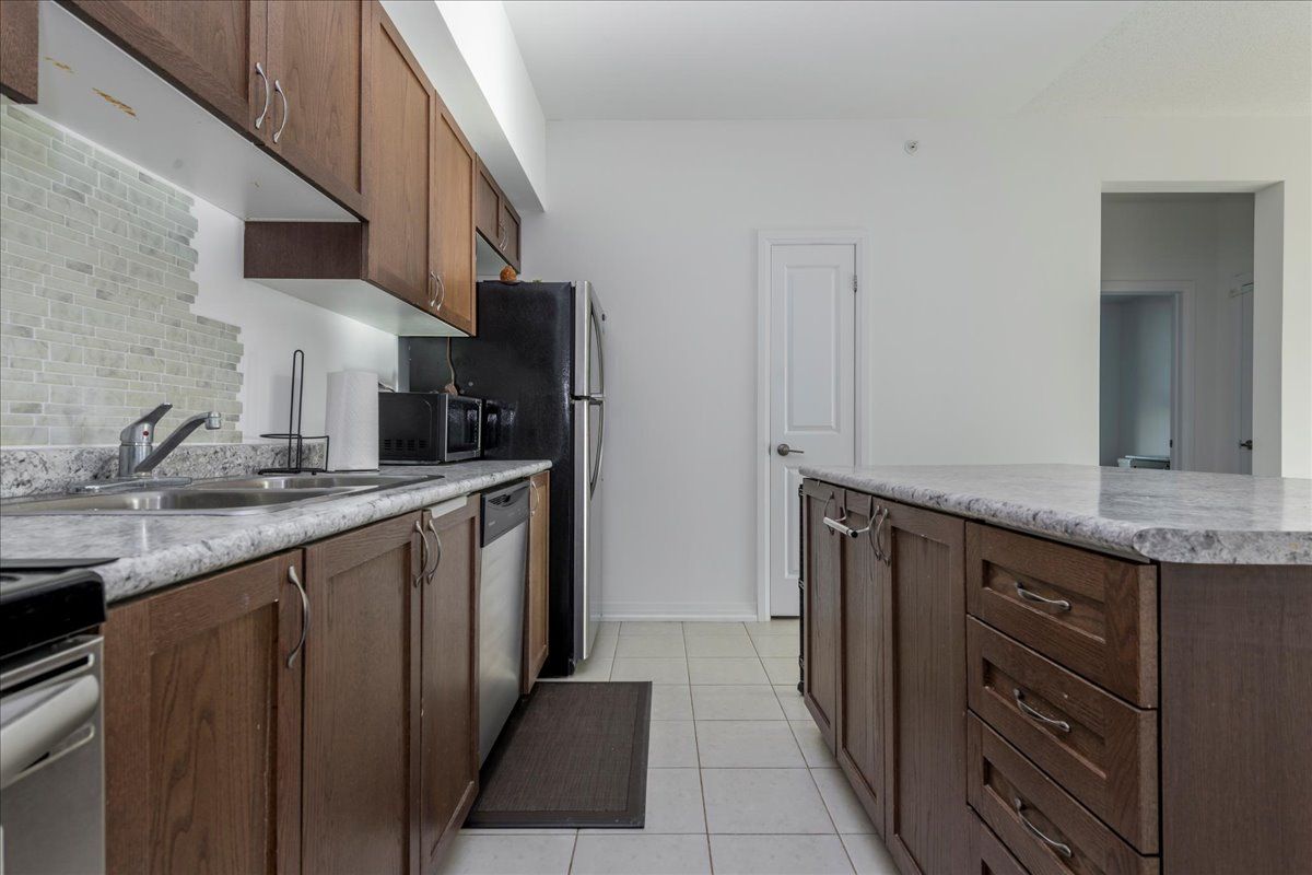 This beautiful and well-maintained ground-level condo offers 1,244 square feet of bright, open-concept living. Featuring three spacious bedrooms, this desirable end unit is filled with natural light from large windows and includes a private balcony with a lovely view overlooking the school yard. The primary bedroom boasts a 4-piece ensuite, while the smart layout provides separation between bedrooms for added privacy. The unit has accessible features including ramp and lowered light switches. Located just steps from everyday conveniences, you'll be within walking distance to groceries, restaurants, and the movie theatre, with shopping, dining, the hospital, the college, and quick access to highway 400 all nearby. The condo is vacant and ready for a quick close, making it an ideal choice for those looking to move in without delay. Appliances are included, along with one parking space and a locker for extra storage.
