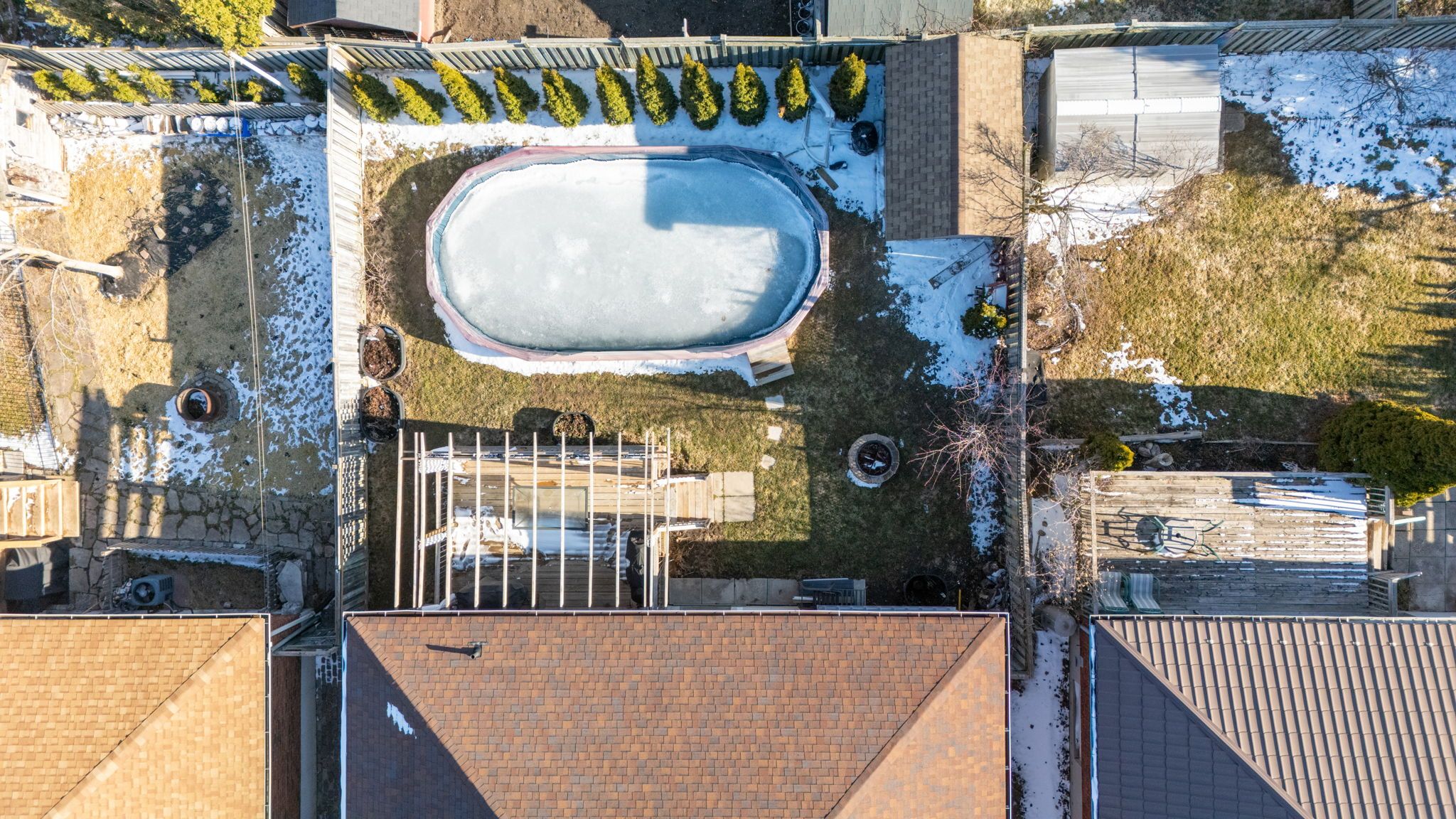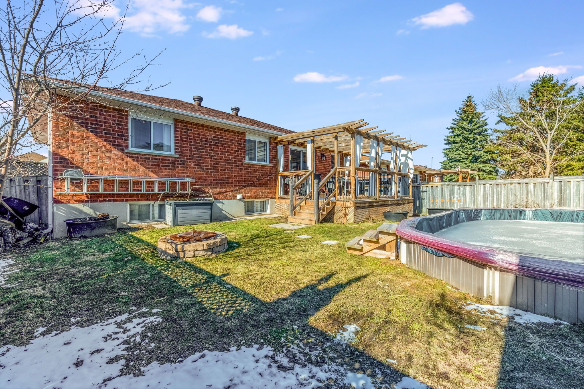 • Private backyard with a large deck and saltwater above-ground pool.