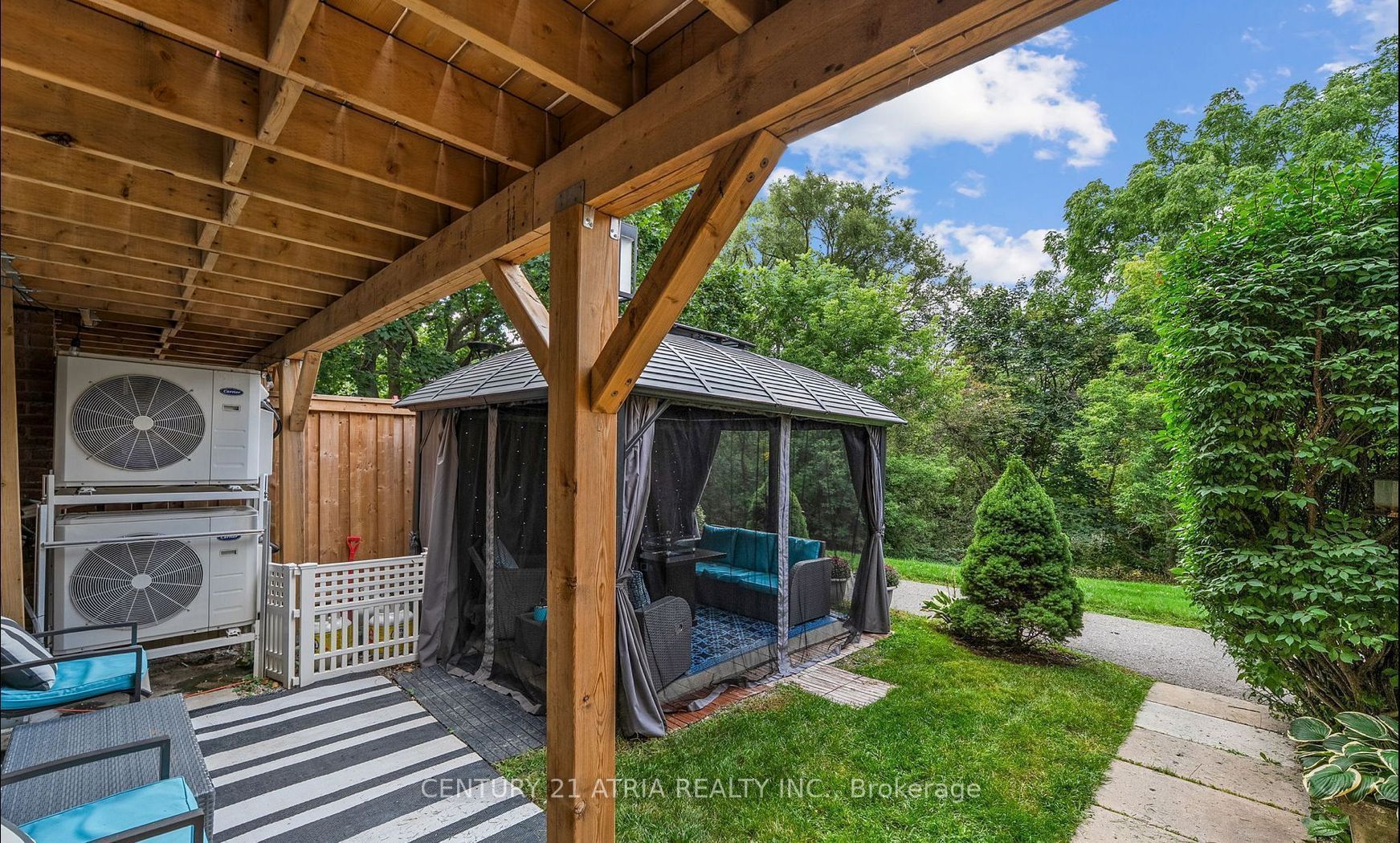 Discover this rare south-facing ravine carriage homme offering exceptional space and privacy! With nearly 2,000 sqft of living area and a walk-out basement that can easily be converted into a 4th bedroom, this home combines comfort, flexibility, and nature. One of only 19 exclusive carriage units in a well-maintained 200-unit community, featuring a brand-new outdoor pool (2024) and serene ravine views that bring peace and tranquility to everyday living. This home has been meticulously updated: new windows and sliding doors (2025), carport door (2025), balcony (2023), attic insulation (2024), and water heater (2025). This esa-certified electrical system and five premium heat pump units ensure efficient heating and cooling throughout. The kitchen offers built-in beach seating, stainless steel appliances, and the laundry room includes a new washer and dryer. Enjoy outdoor living year-round in the all-season gazebo. Includes two parking space. Locker in a prim aurora neighborhood close to yonge street, go station, top-rated school (aurora high, wellington ps), parks, trails, library, community centre, and local shops and medical offices-everything you need is just minutes away!