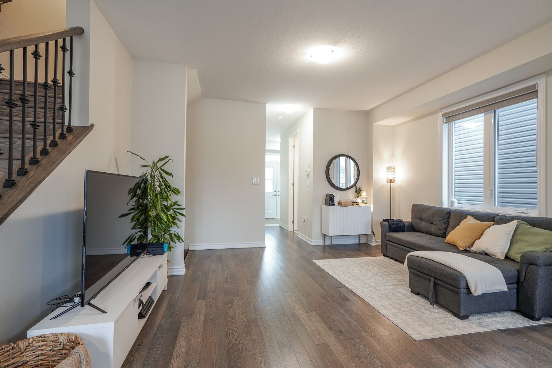 Welcome to this stunning 3-bedroom detached home in the highly sought-after rolling meadows community of thorold. The main floor features a bright, open-concept layout with soaring 9ft ceilings and elegant hardwood flooring throughout. The modern kitchen is a chef's delight, offering a functional pantry, sleek ceramic tiles, and a breakfast bar perfect for casual dining. Upstairs, you will find three spacious bedrooms finished with premium broadloom for maximum comfort, including a master suite with a walk-in closet and private ensuite. For ultimate convenience, the laundry is on main floor. The highlight of this property is the rare walk-out basement, leading to a private backyard on a premium lot. Complete with an inside garage entry and located minutes from brock university, niagara falls, and hwy 406, this home perfectly blends luxury and convenience