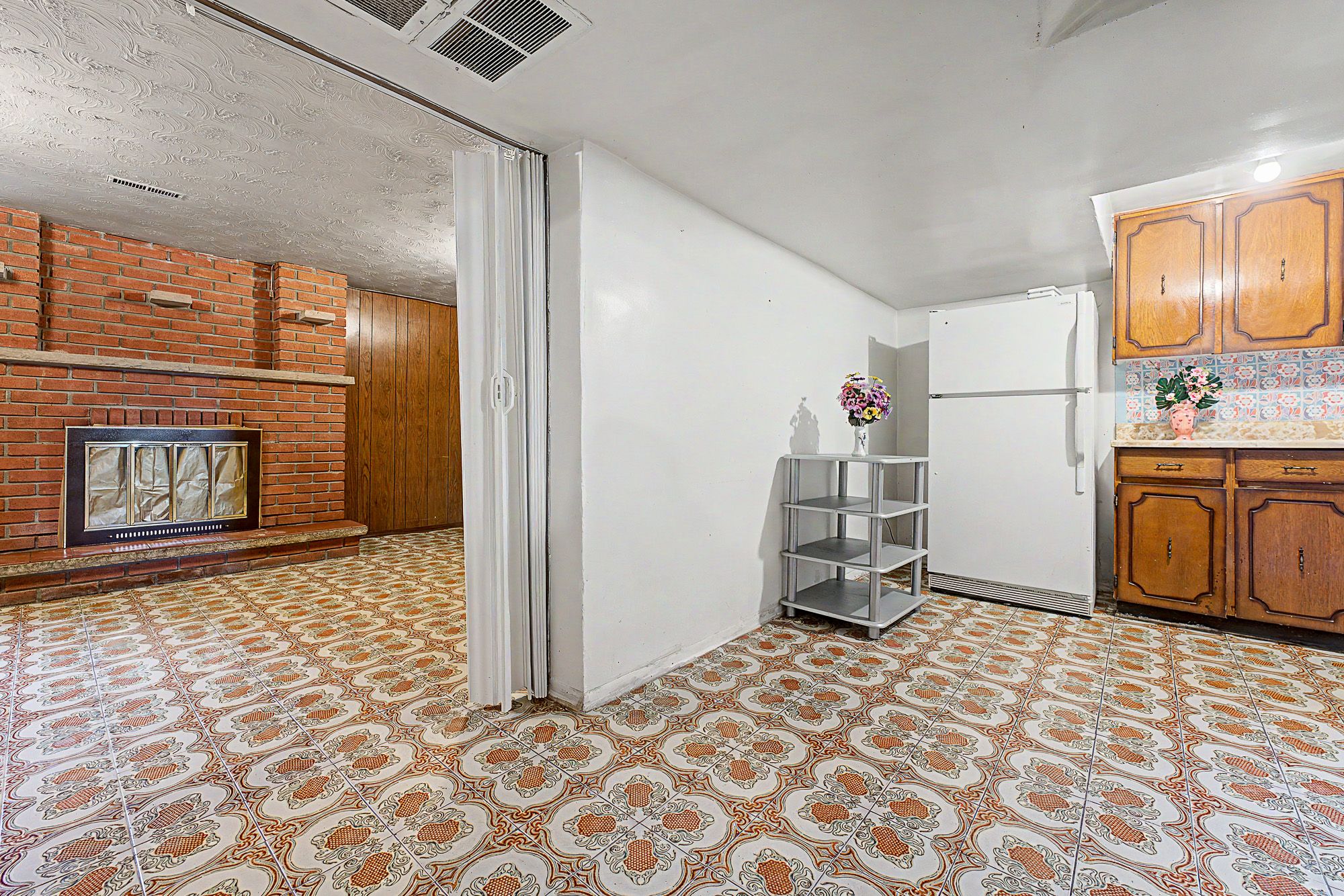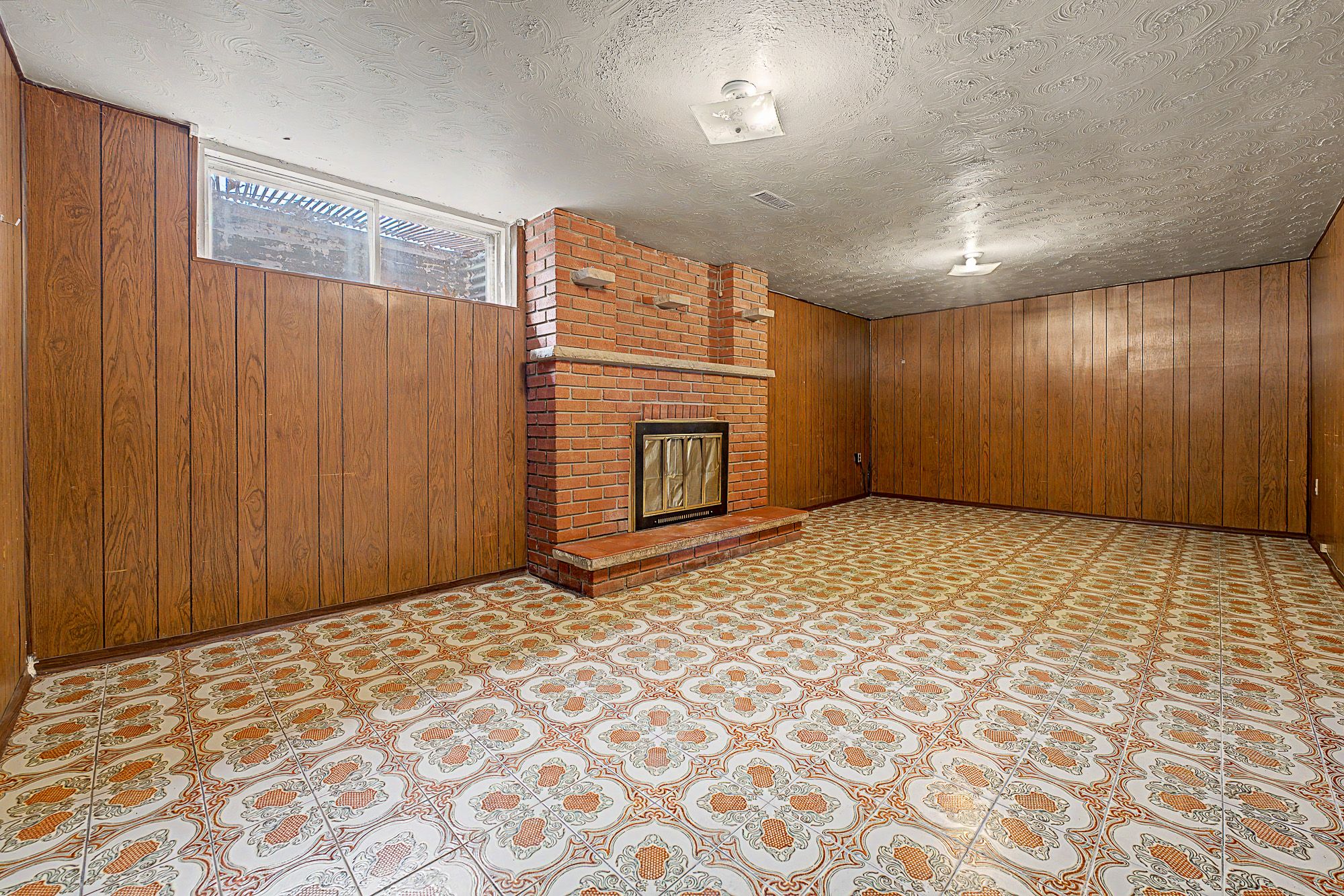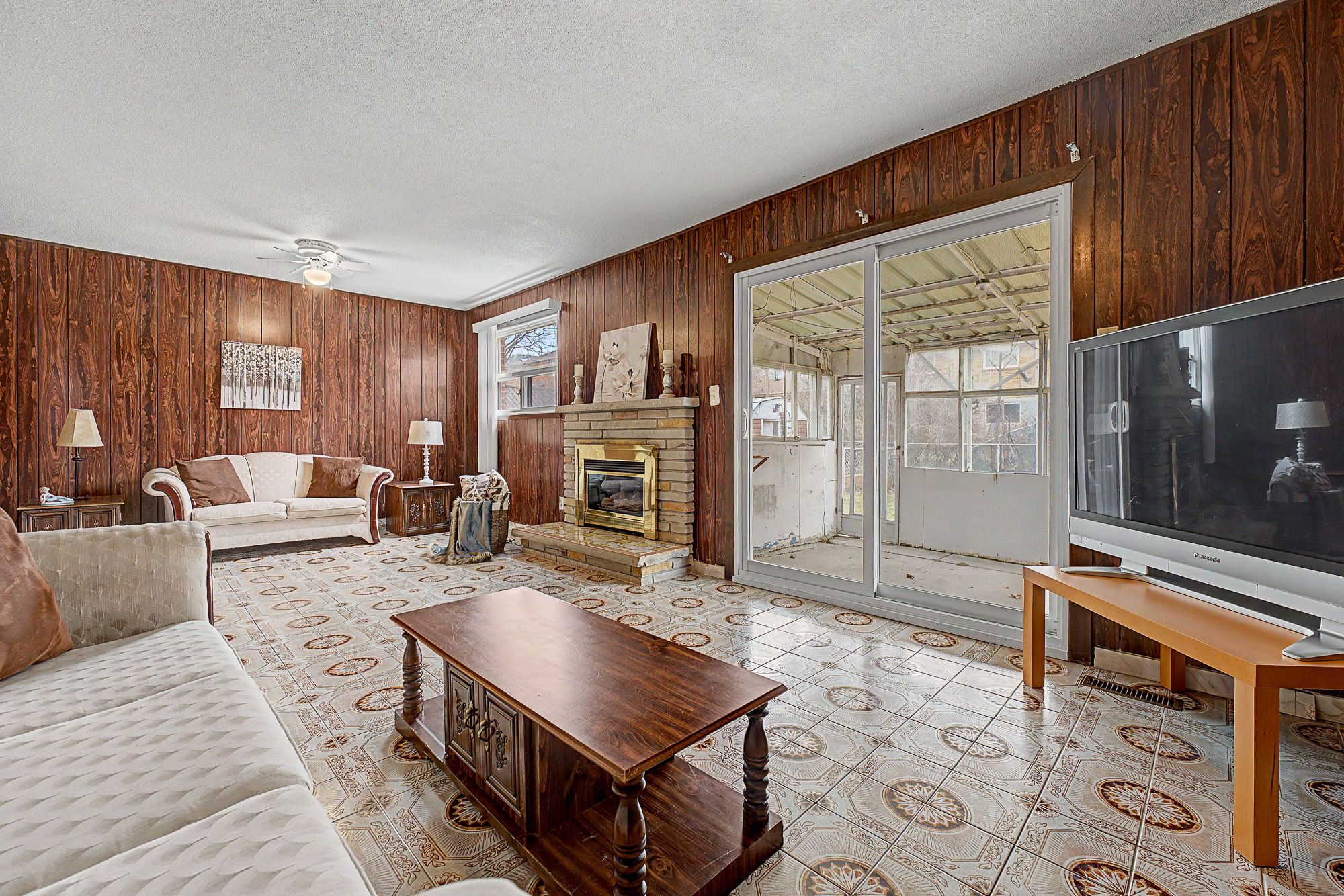 • Ground level family room with gas fireplace and backyard access.
