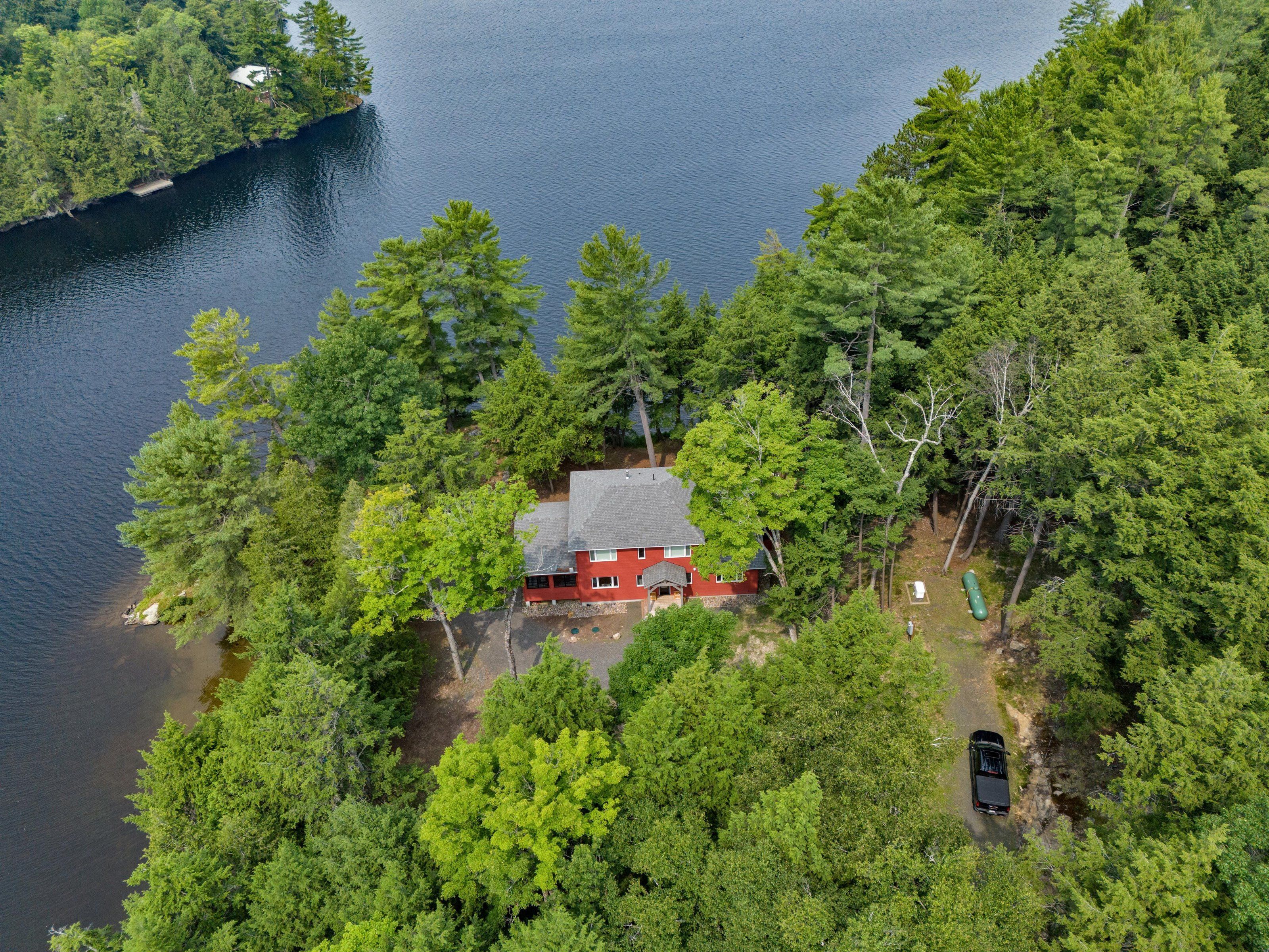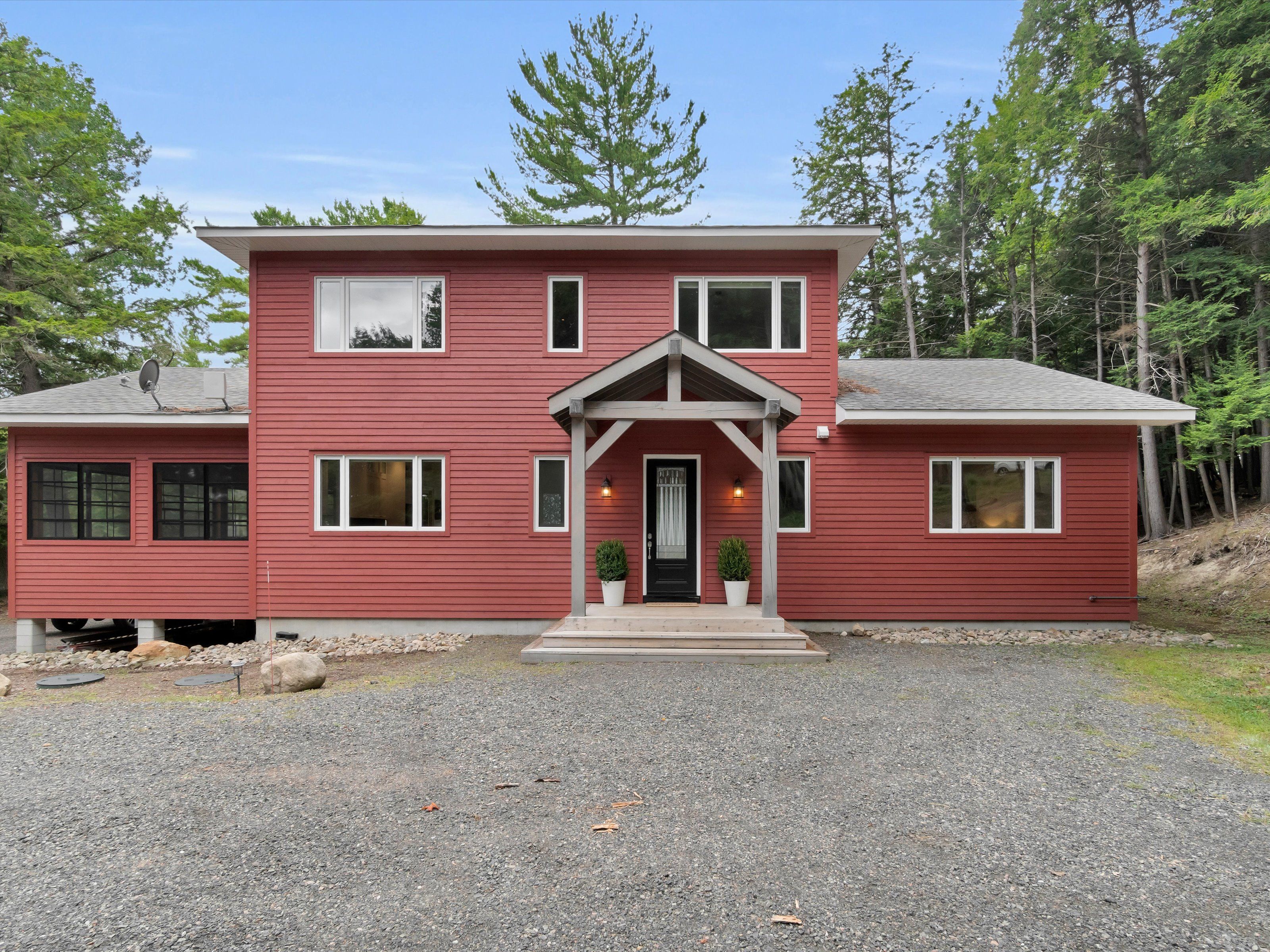639 feet of pristine lake of bays frontage, a year round cottage built in 2020, with both long lake views and a quiet bay setting. As you arrive, a winding driveway reveals the striking red cottage nestled among the trees and located at the end of a private tree-lined driveway. Its timeless charm framed by towering pines and the gentle shimmer of the lake beyond, intensifies your excitement as you draw closer. Inside, the home is immediately anchored by breathtaking lake views from the family room. The layout unfolds across three levels with six spacious bedrooms, a generous kitchen designed for hosting large groups, and a relaxing three-season muskoka room that features seating for 10+ at the dining table and a lounge area. Outdoor living is equally compelling. Spend your days lounging on one of two expansive decks perched on the water's edge, relax on the dock, or wade in from the walk-in sandy shoreline. The land that surrounds the cottage is level and easy to navigate, while the backside of the property begins to gradually rise, providing an extremely private, forested backdrop. The separately deeded lot that is included in this package offers raw land, with old-growth trees that tower over the property and further enhance the privacy at this one-of-a-kind property. This lot creates space and separation from the neighbour while allowing a new owner peace of mind and future options. A unique legacy estate, providing ample space for generations to gather while preserving privacy, comfort, and independence for all. The massive shoreline provides a waterfront that faces both south and west, ensuring all-day sunlight and year-long sunsets. Lake of bays is renowned for its exceptional boating, fishing, and endless exploration and from this address, you're just 25 minutes to huntsville. This is more than a cottage on a great lake. It's a rare waterfront portfolio, a canvas for future growth, and the beginning of a muskoka story that will be told for generations.