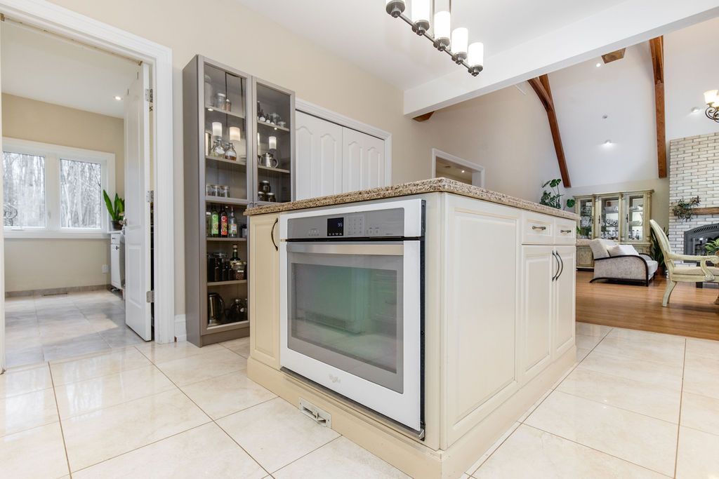 • Custom-built design featuring a stunning cathedral ceiling and natural wood beams.