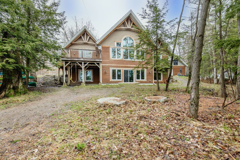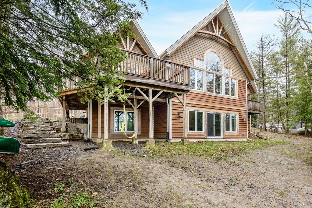 A serene waterfront lifestyle awaits with 3641 sq ft total finished on the shores of butterfly lake in port carling. This custom-built home is nestled on a private lot filled with matures trees, gardens, and calming southern exposure lake views from multiple rooms. The spacious interior is highlighted by a stunning cathedral ceiling with natural wood beams in the living room, where floor to ceiling windows overlook the backyard and a wood fireplace is set in an elegant brick facade. The fully-equipped kitchen offers ample cabinetry, a dual-level island, and is just steps from the versatile dining room space. A large pantry and laundry room combination add convenience, with the bonus of a garden door walkout. The primary retreat is complete with a pampering 5-piece ensuite and a walkout to a private balcony, ideal for enjoying your morning coffee or a night cap as the sun sets. Two other family bedrooms located on the main level are served by the main 4 piece bathroom. On the lower level, utilize the spacious recreation room to best suit your family's needs, and find plenty of space for guests with 4 additional bedrooms - all with 9' ceilings. A walkout to the backyard adds convenience while enjoying the summer sun, providing easy access to the 4-piece bathroom. Enjoy the great outdoors tending to the multiple gardens, practicing hobbies in the oversized garage with rough-in for loft/living space, and enjoying the pristine lakefront with loved ones. A newer dock adds peace of mind, and there is plenty of space for children to play on the shoreline. 1930 sq ft main level.