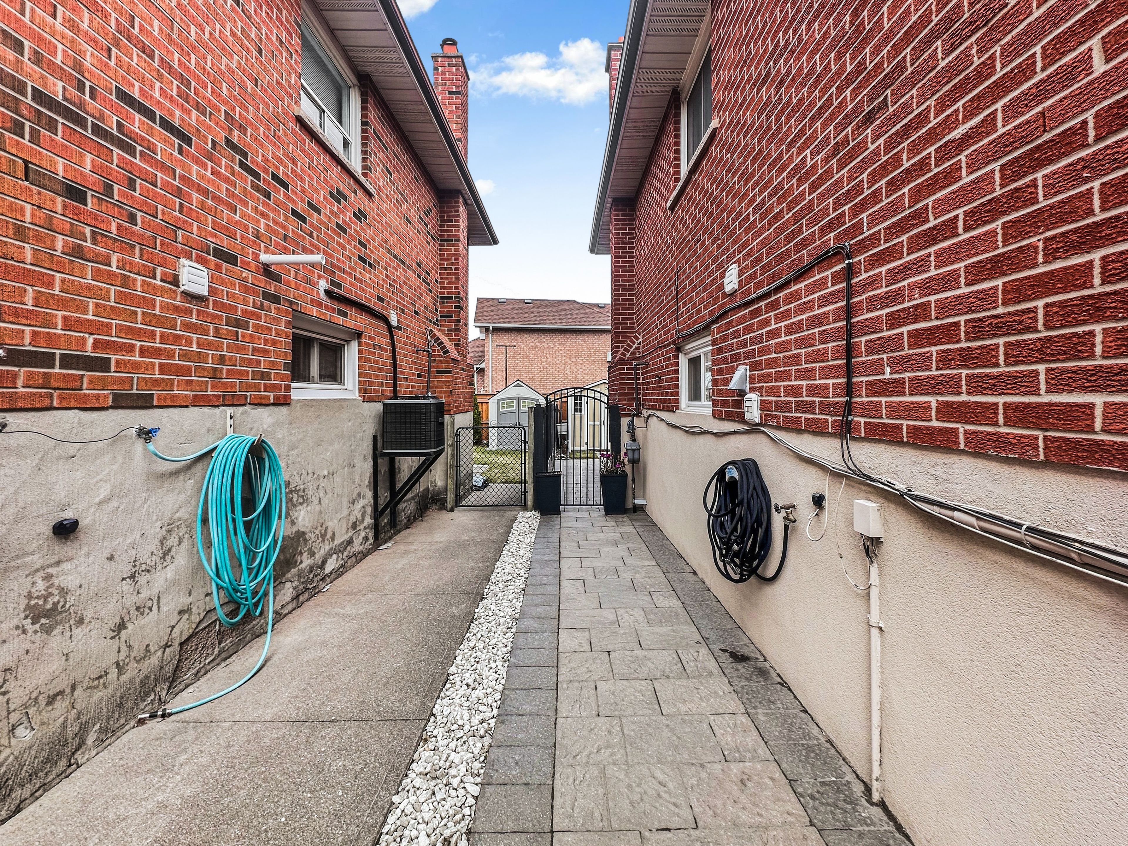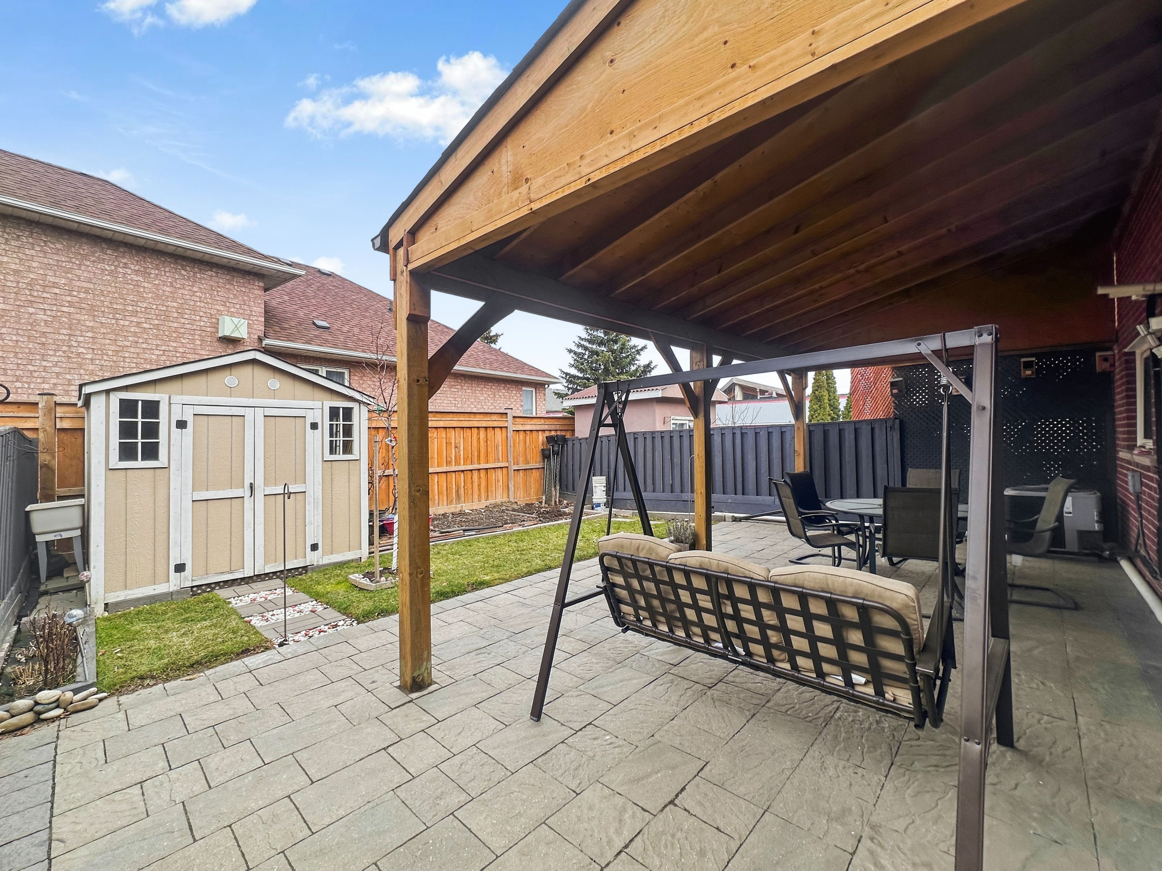 • Private backyard with interlocked patio, perfect for gatherings and entertainment.