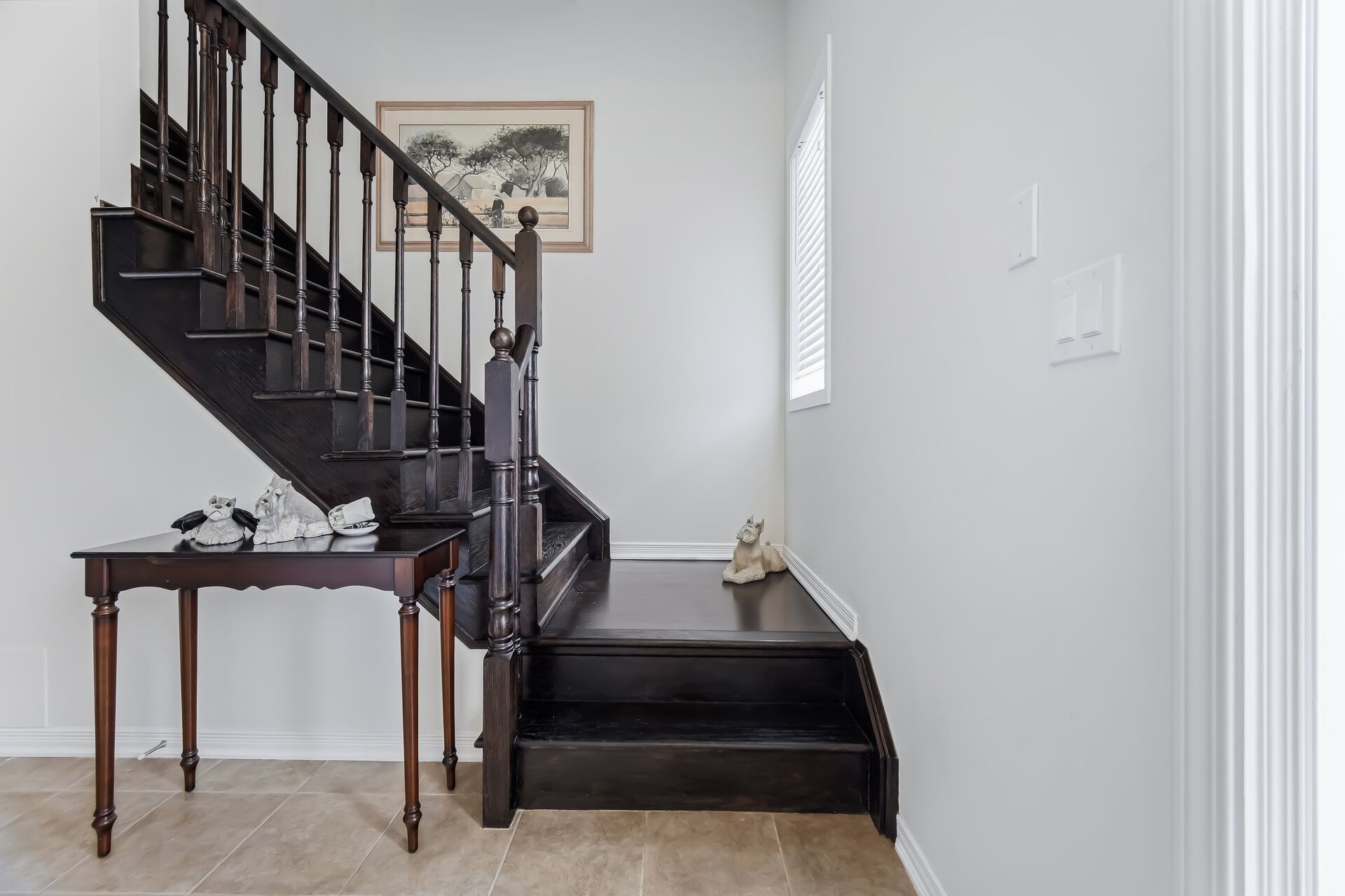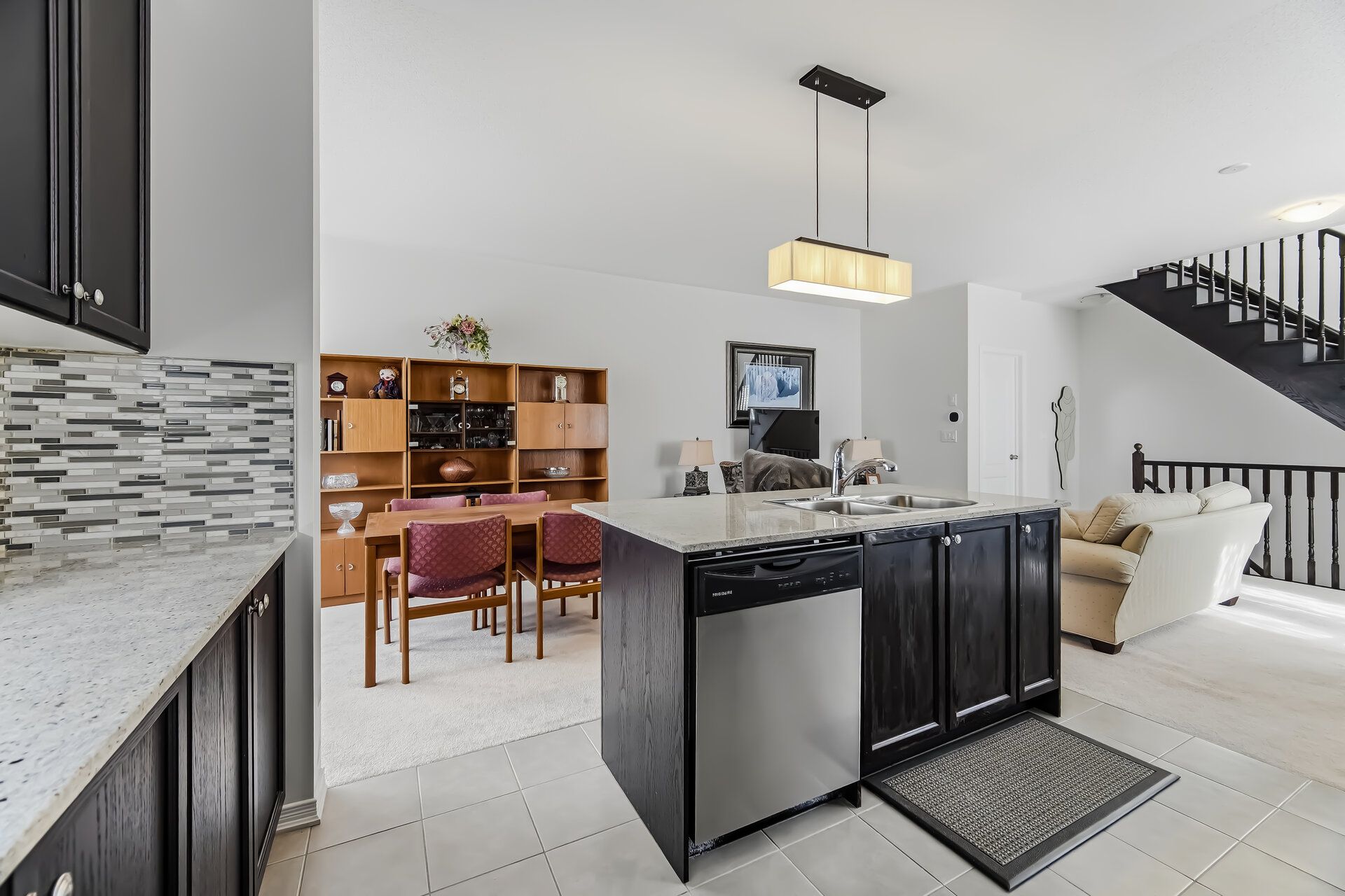 Premium corner lot 3-bedrooms sun-filled townhouse in prestigious southfields village caledon community! [built by coscorp builder] open concept layout, den in main floor for quiet moments. Walk out to balcony from living room. Full family size kitchen with granite counter-top, back splash, island bar w/ double sink, s/s appliances & ample cabinetry! Spacious dining area! Oak staircase! French doors to balcony & 2 pc powder room! Master bedroom comes with walk-in closet. 3 good size bedrooms! Main floor laundry! Direct access from garage into main floor! Heat pump (own) to heat and cool home, reduces emissions and improves air quality. New insulation in attic. Smart thermostat. This gem won't last! Walking distance to public or catholic elementary schools, parks & etobicoke creek! Grocery store, pharmacy, play place, and more all within walking distance. Show with confidence!