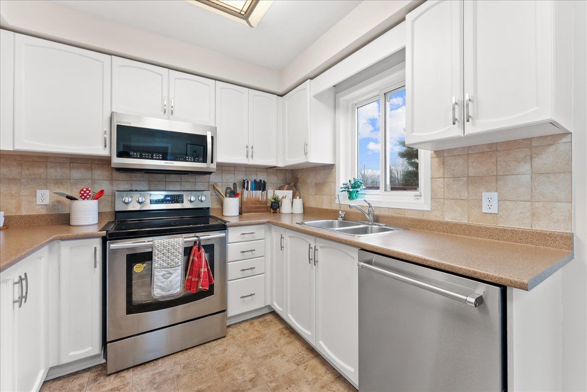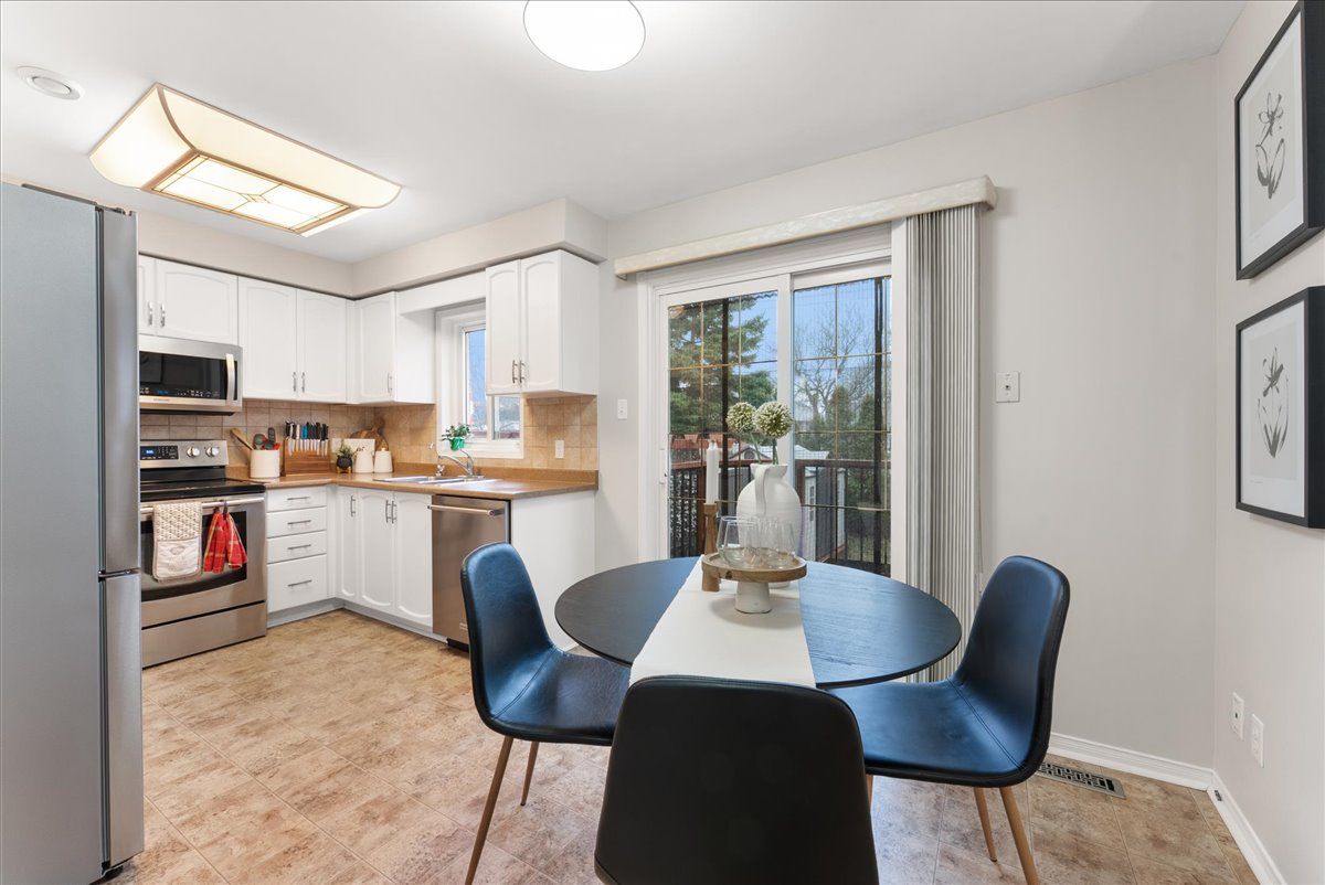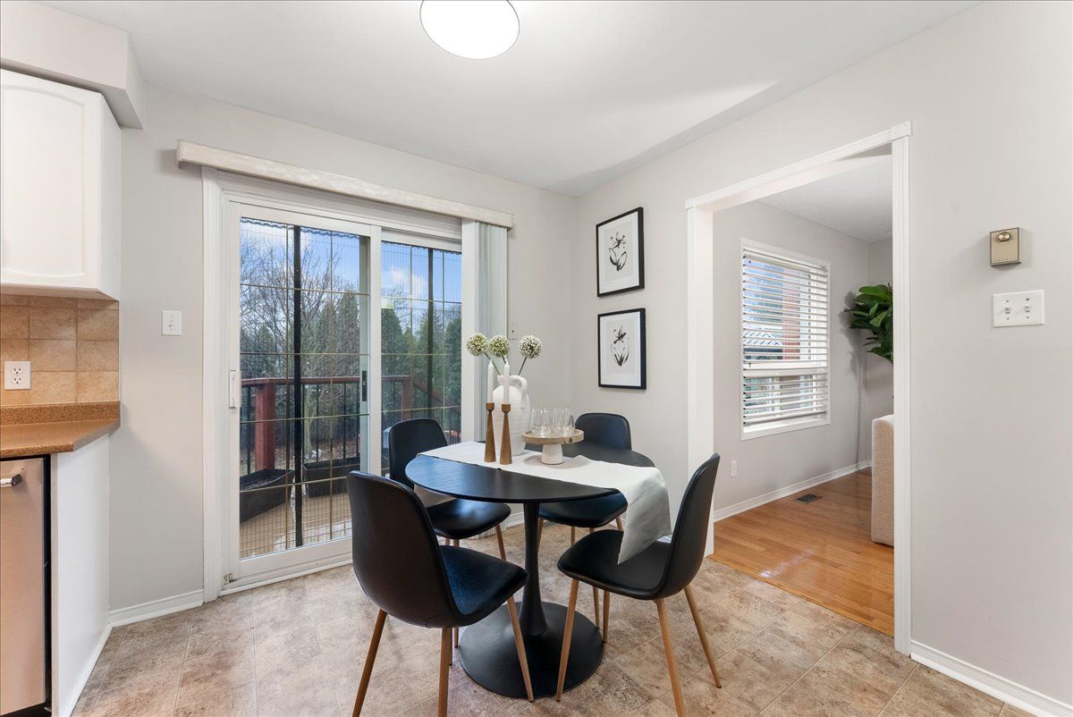 • Spacious eat-in kitchen overlooks a private, mature backyard.