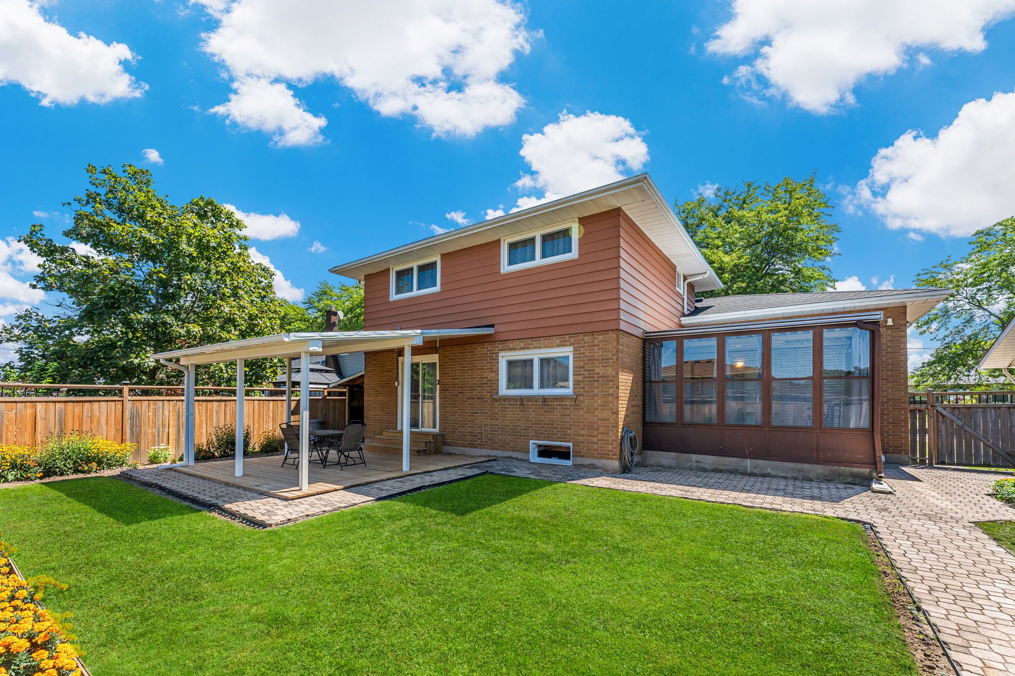 Mature tree lined street in most desirable north end location known for it's fantastic schools and great neighbors. Immediately you are drawn in by the stunning curb appeal of this 4 level back split that is nestled in a quiet neighborhood right across from linlake park. This must see home is close to shopping malls, restaurants, great schools, qew as well as lake ontario. This newly renovated top to bottom and well maintained home is offering over 1700 sq ft. Of above grade living space, plus 554 sq ft. Finished basement with very high ceilings and large windows. The home consists of 3+1 bedrooms, 2 full bathrooms, 2 kitchens, dining room, living room, family room, sunroom, finished basement and additional 620 sq ft. Of storage space, garage with overhead storage and a driveway with 6 parking spots. The covered front porch is the perfect spot to sit and enjoy your morning coffee or tea and take in the sounds of nature. The main floor features bright living room, kitchen and a walk in closet. The upper level offers 3 large size bedrooms, a 3 piece bathroom and a linen closet in the hallway. The lower level features a large family room with wood fireplace and custom built-in shelves and cabinets, 4th bedroom, 3 piece bathroom and access to the patio and backyard from the family room. From the lower level there is also an access to the garage and sunroom. Expanding the living space is the high ceilings finished basement with a rec room, second kitchen with eat in dining and a laundry area, plus a storage space. Right beside the laundry area there is a very large storage space that is a little over 5 ft. Tall and stretches through the width of the house (approx. 620 sq ft.). All updates and upgrades have been completed within the last few years. Roof was replaced in 2025. Don't miss your chance to own this move-in ready home in a family-friendly neighborhood close to great schools, linlake park, shopping malls, and transit. Book your private showing today!