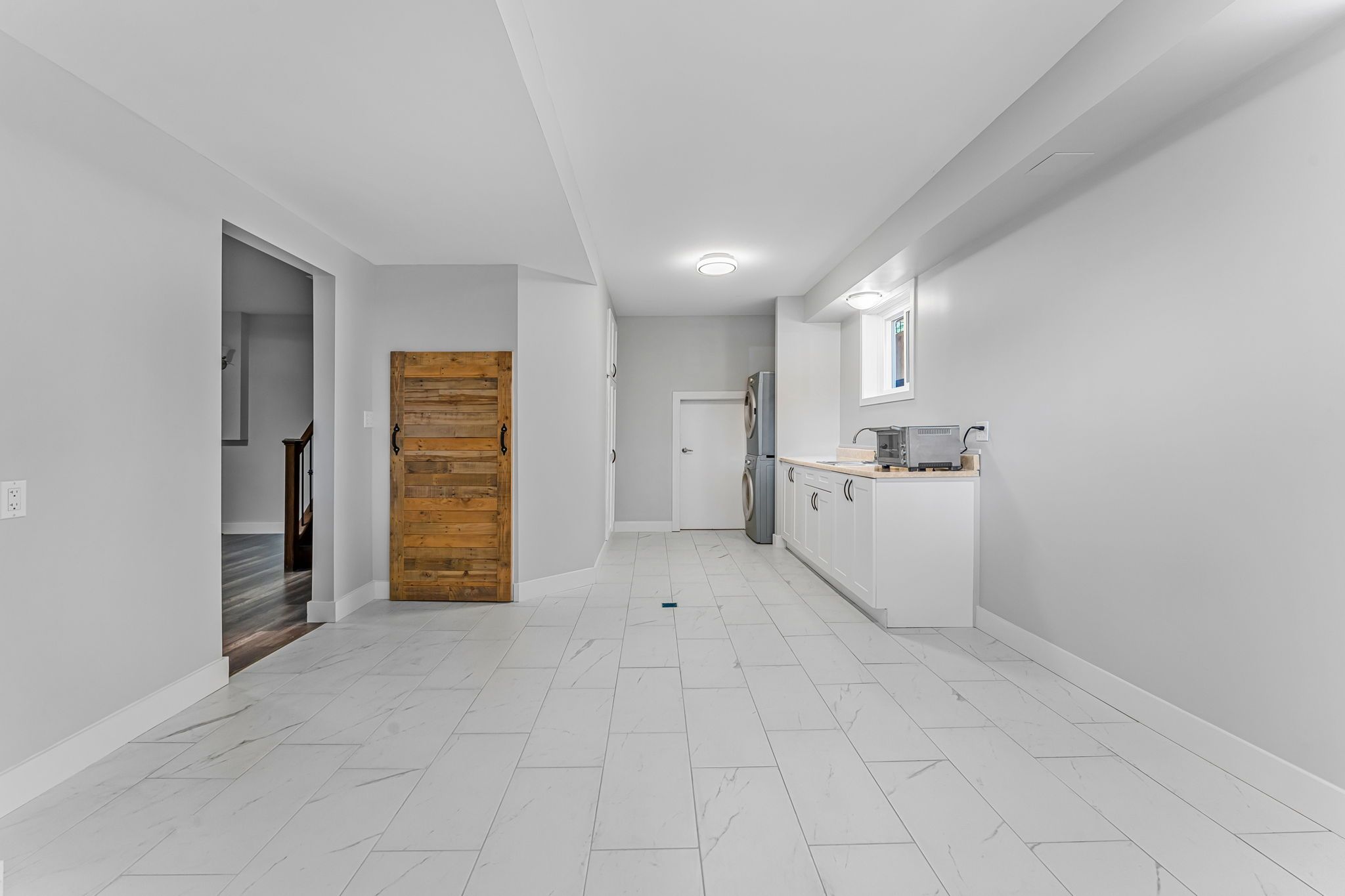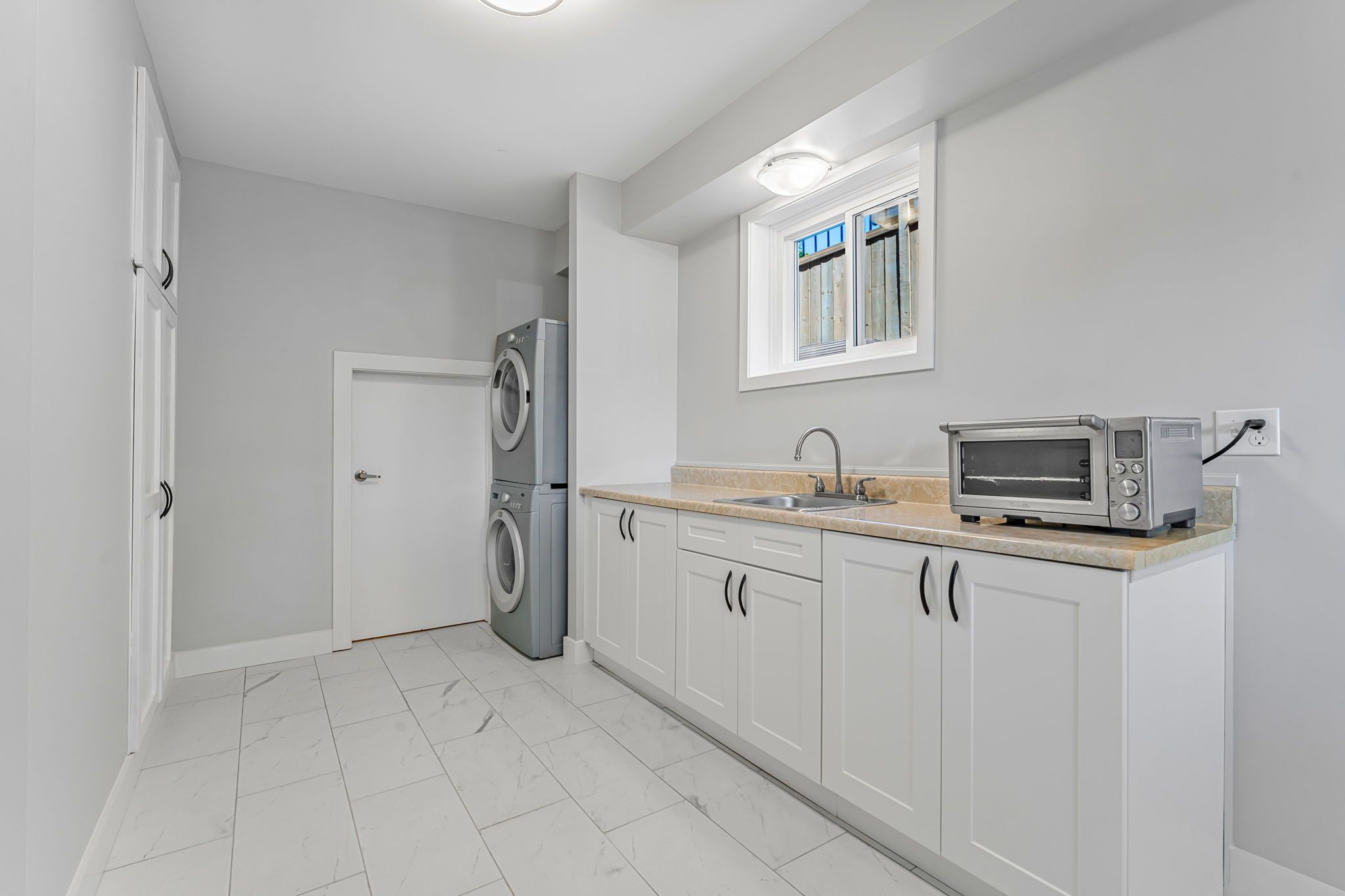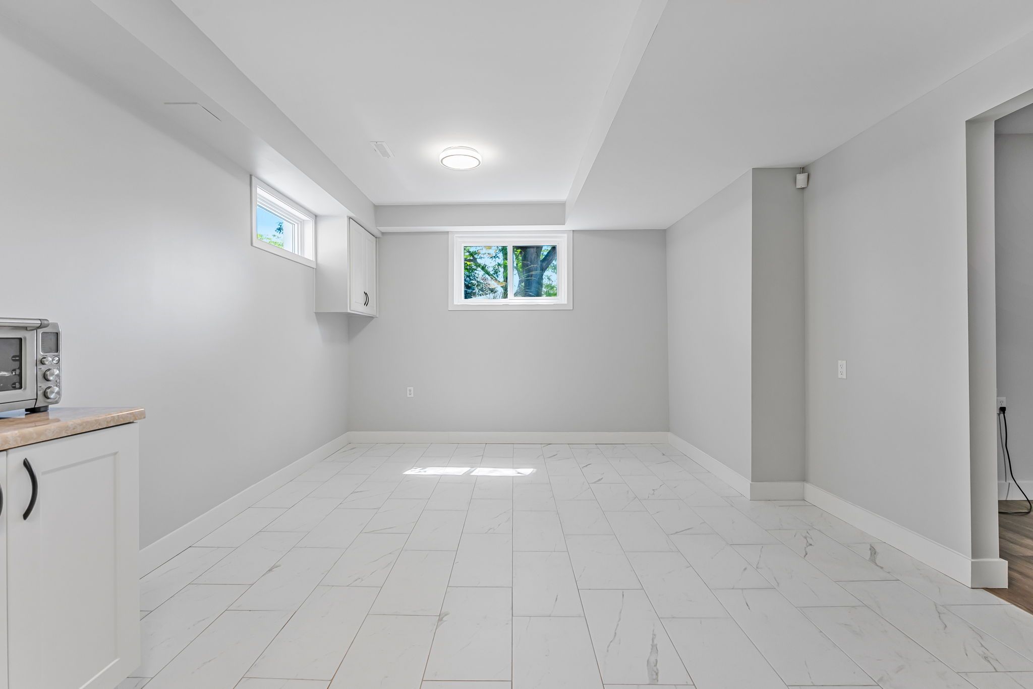• Finished basement with high ceilings, large windows, and additional storage.